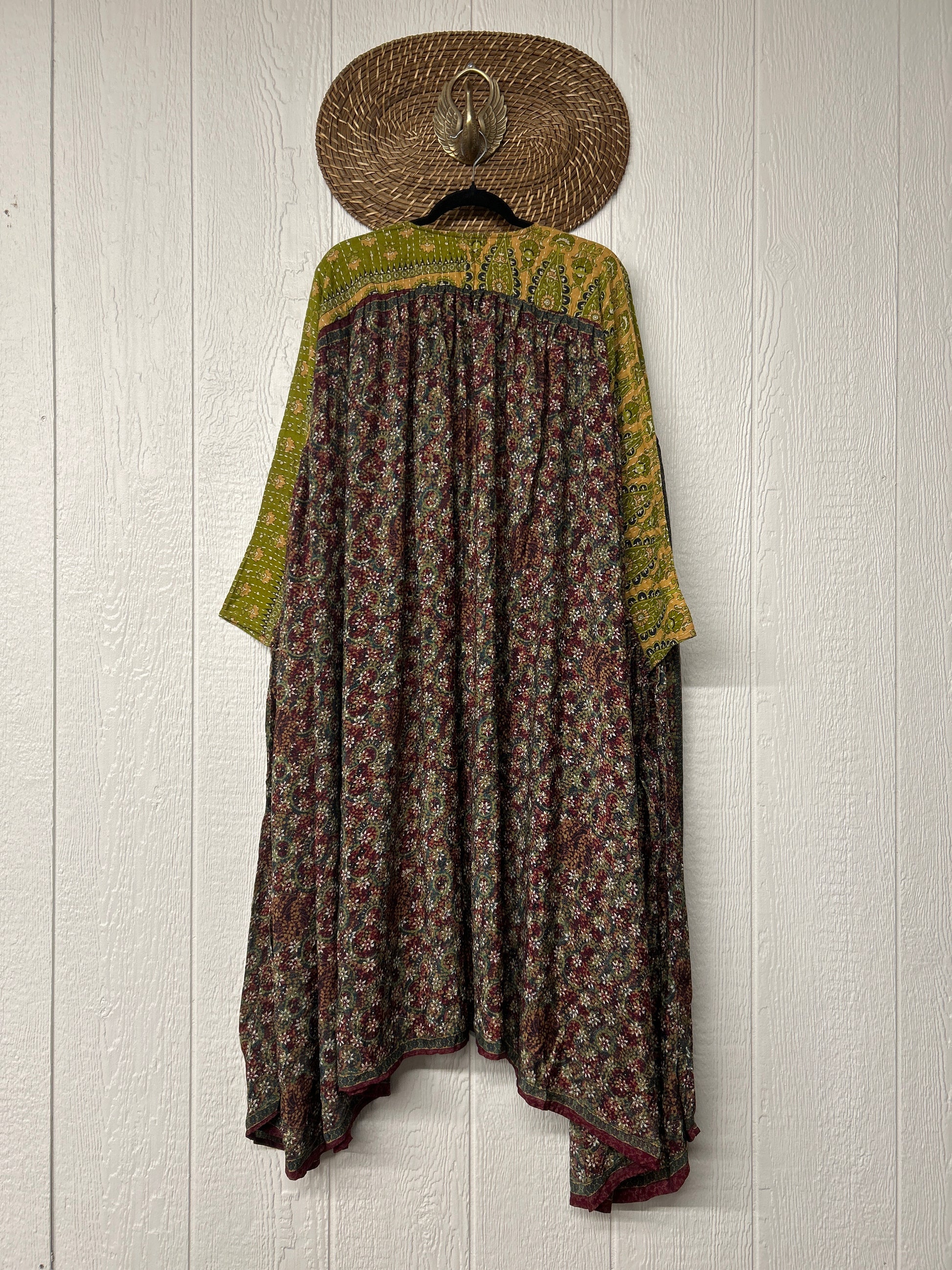 Twirl around to your heart's delight in our new Fleetwood Kimono. This floaty dream is a divine mix of our ultra lux Kantha embroidered vintage cotton and rasgulla sari. Features a tie neck closure and slouchy exterior pockets.