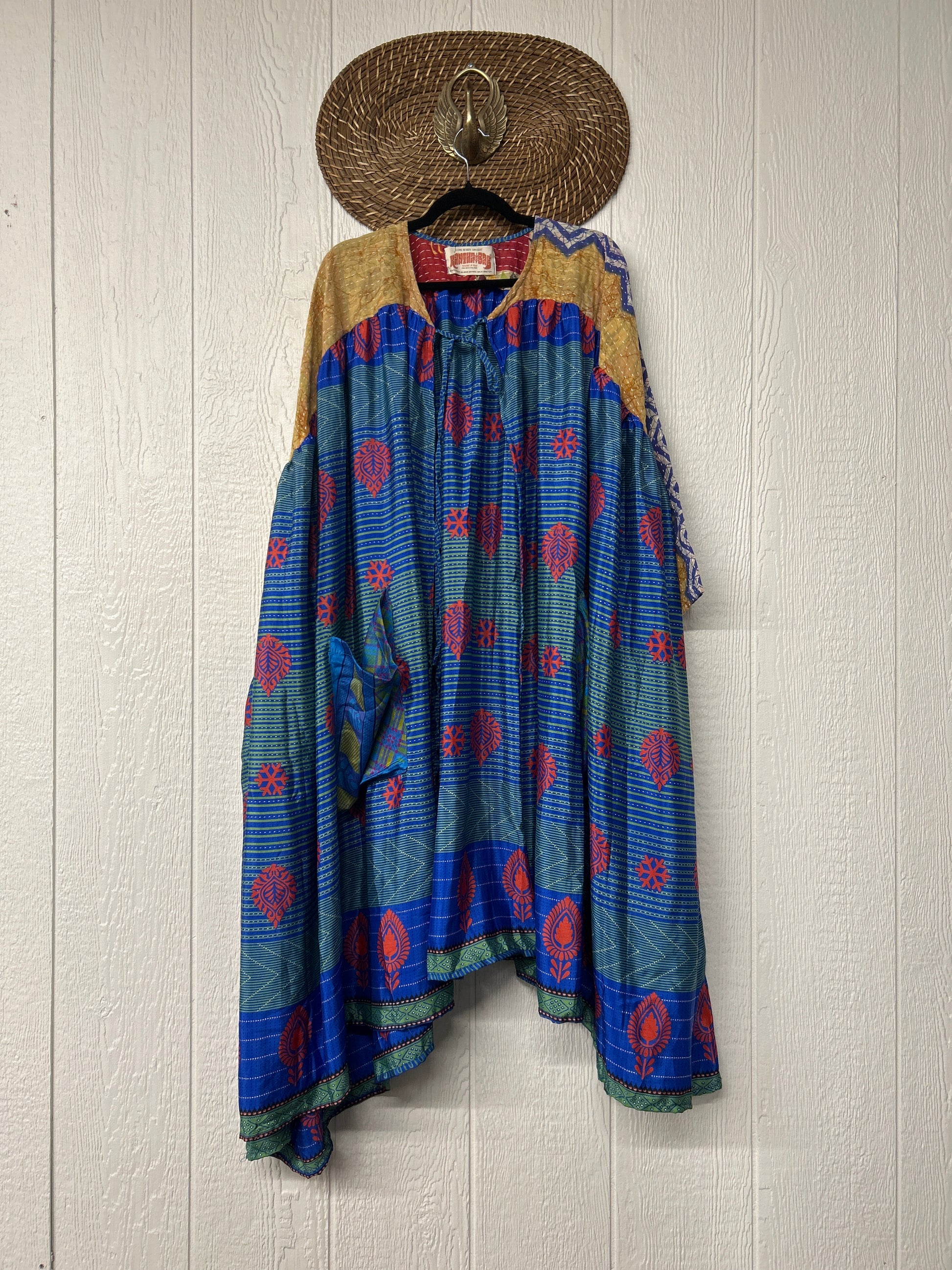 Twirl around to your heart's delight in our new Fleetwood Kimono. This floaty dream is a divine mix of our ultra lux Kantha embroidered vintage cotton and rasgulla sari. Features a tie neck closure and slouchy exterior pockets.