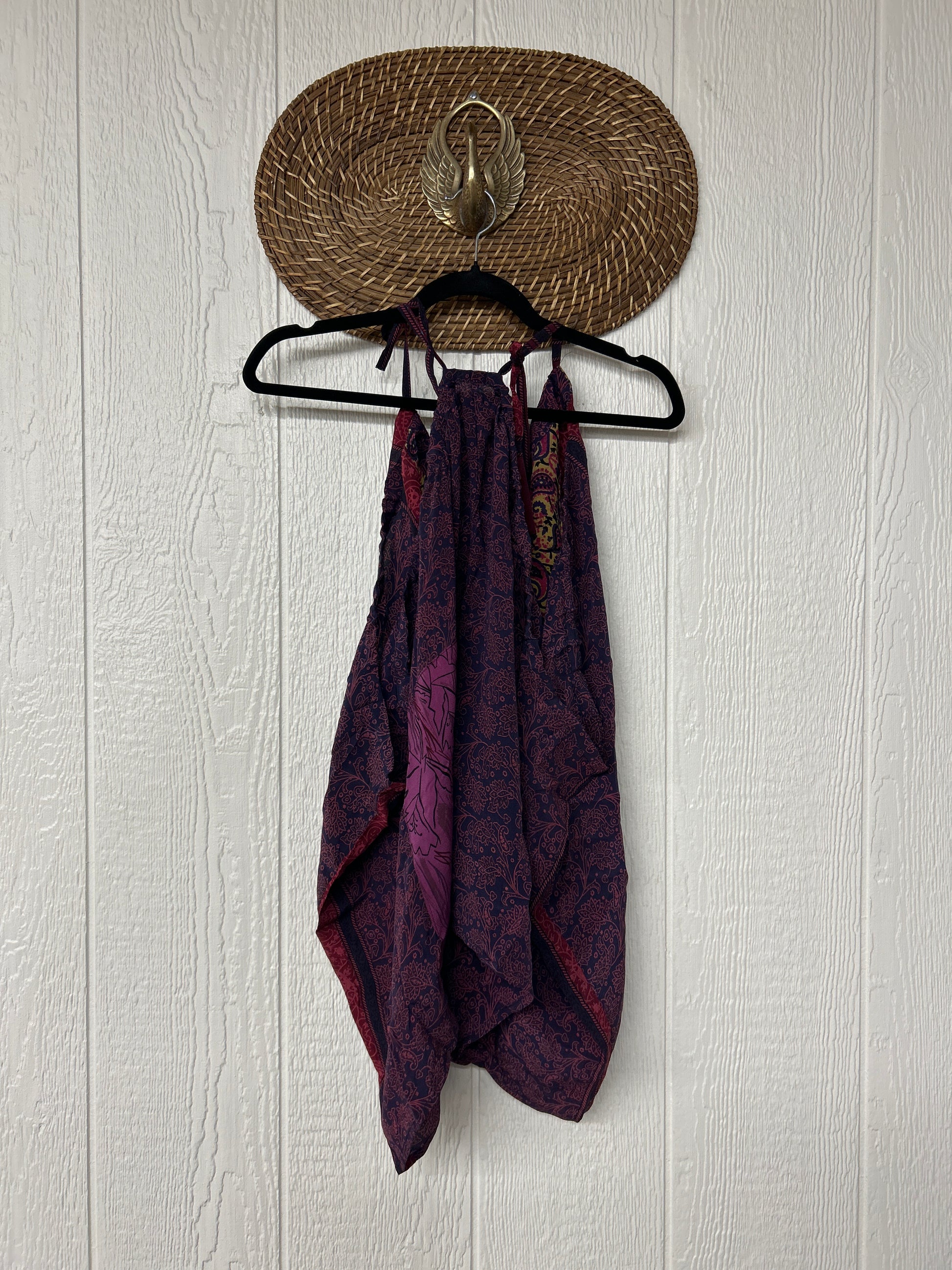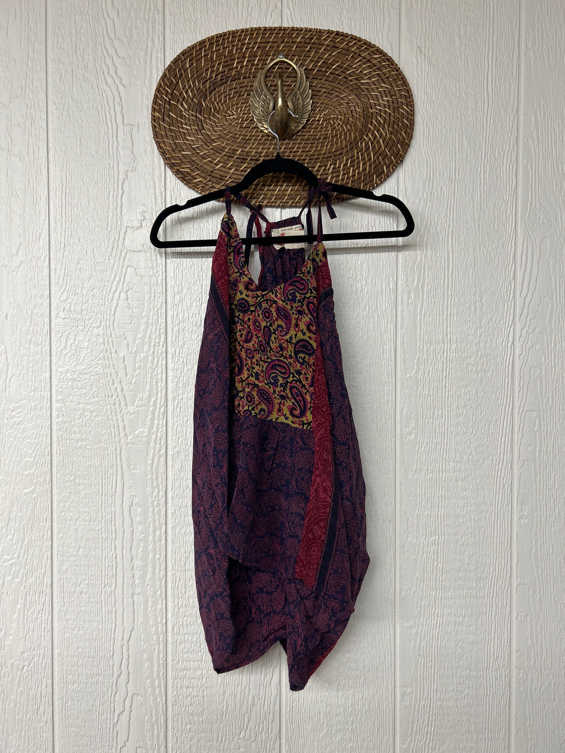 The perfect layering piece made from vintage crepe silk sari. Features tie straps that also cinch for customization.