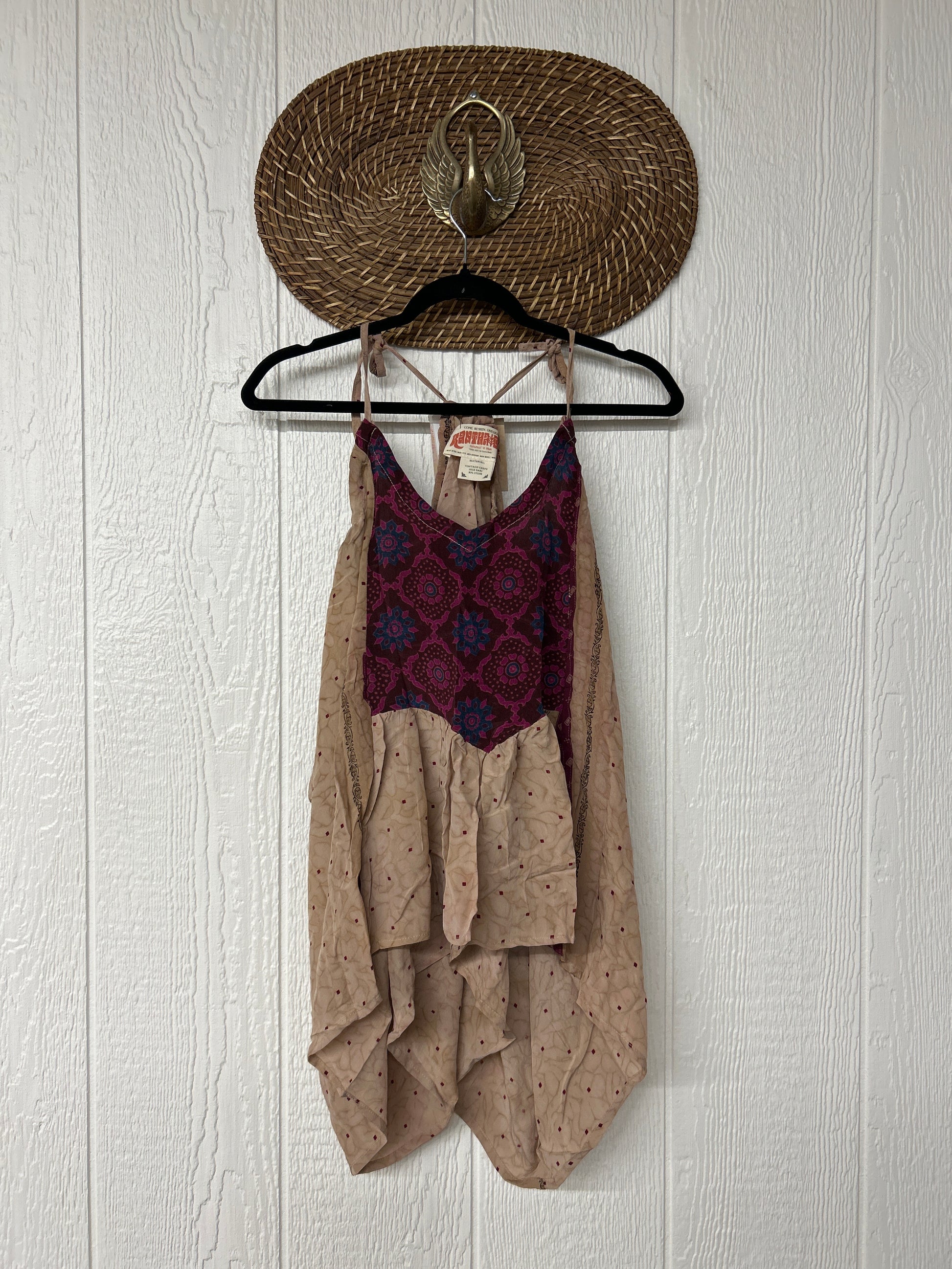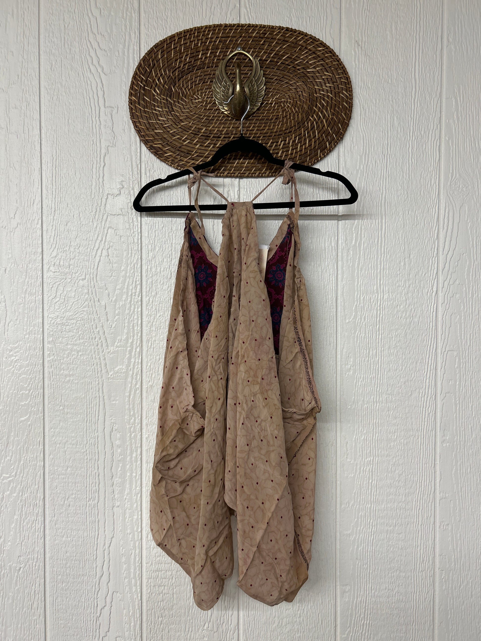 The perfect layering piece made from vintage crepe silk sari. Features tie straps that also cinch for customization.