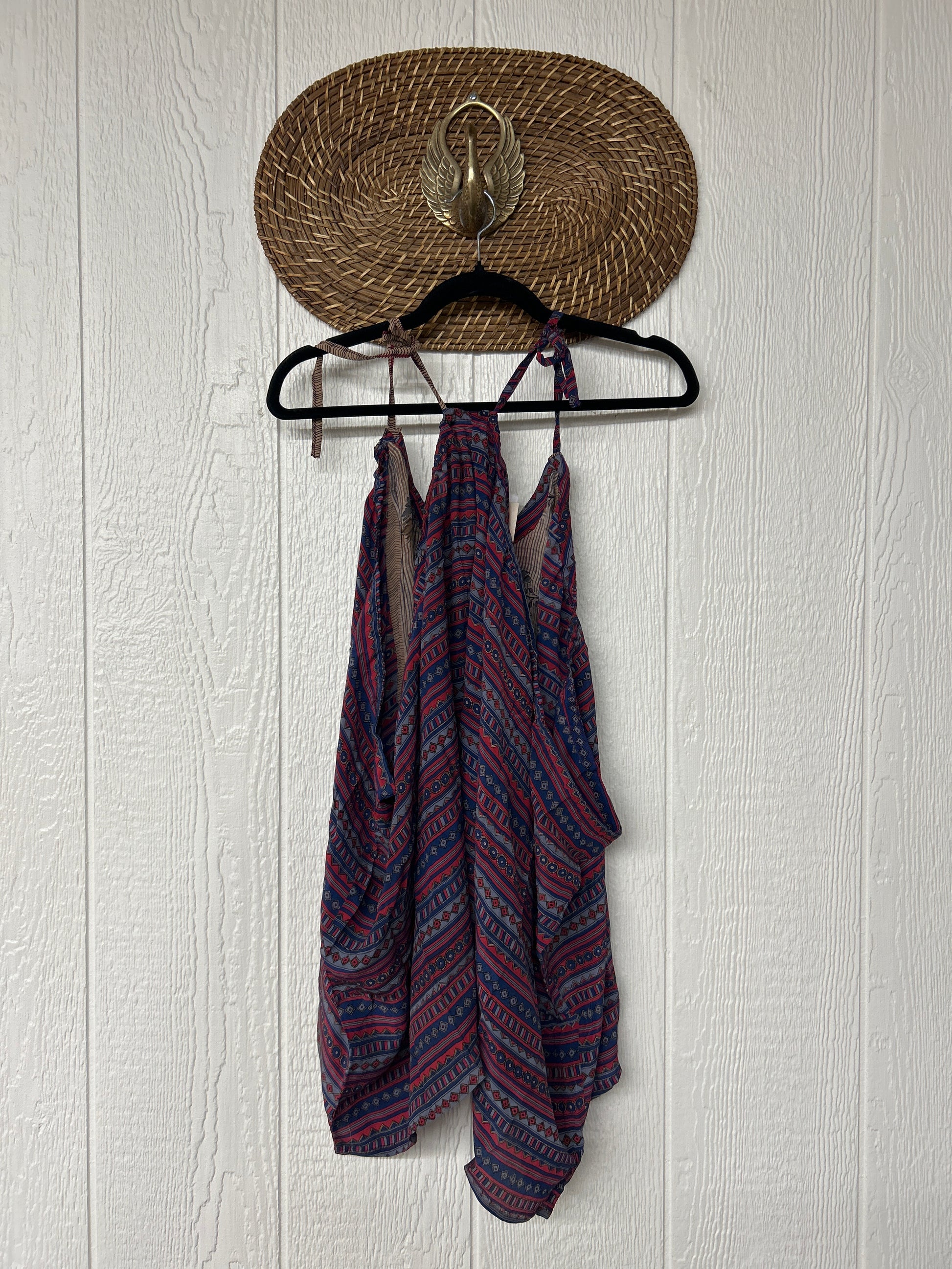 The perfect layering piece made from vintage crepe silk sari. Features tie straps that also cinch for customization.