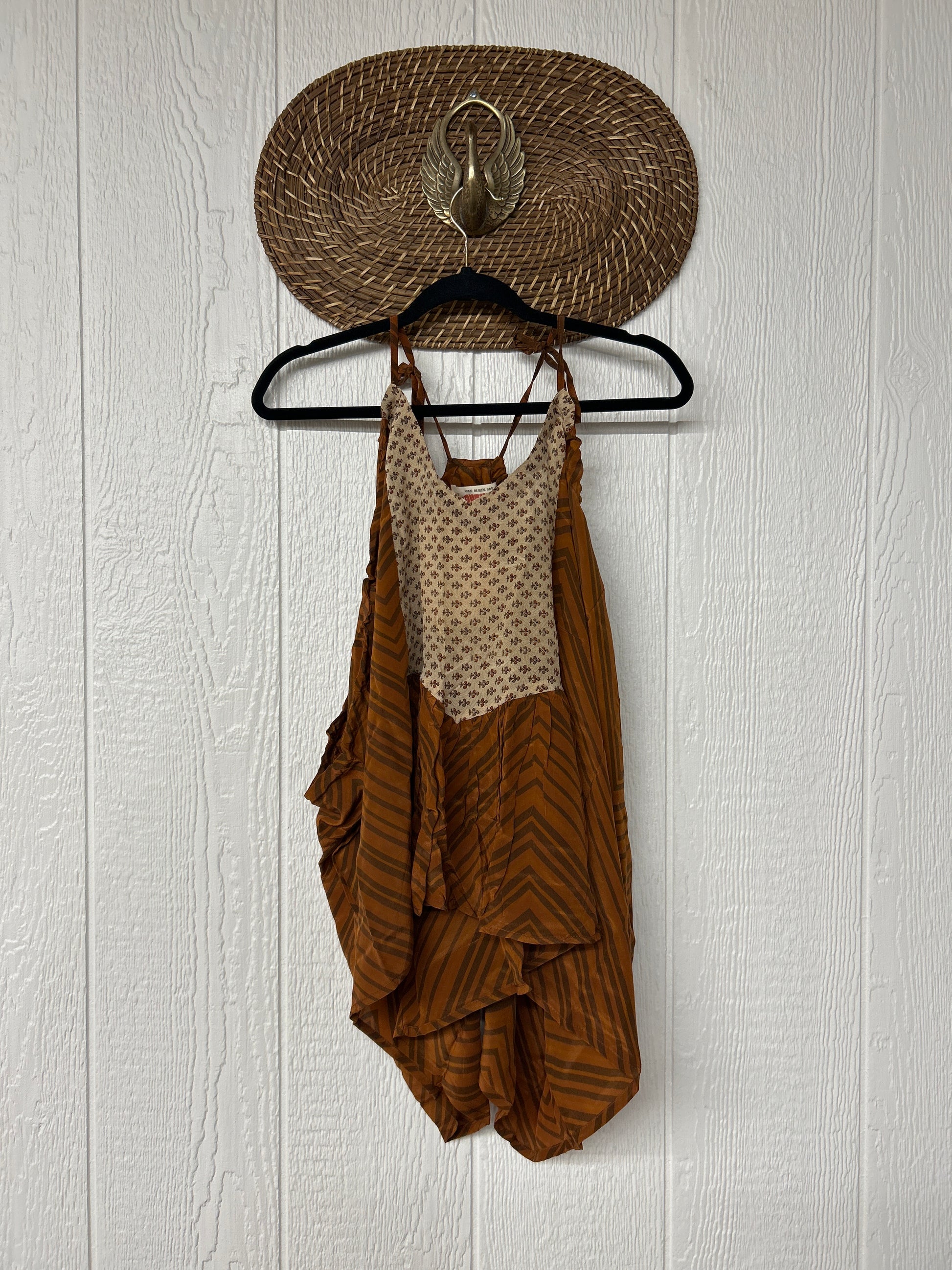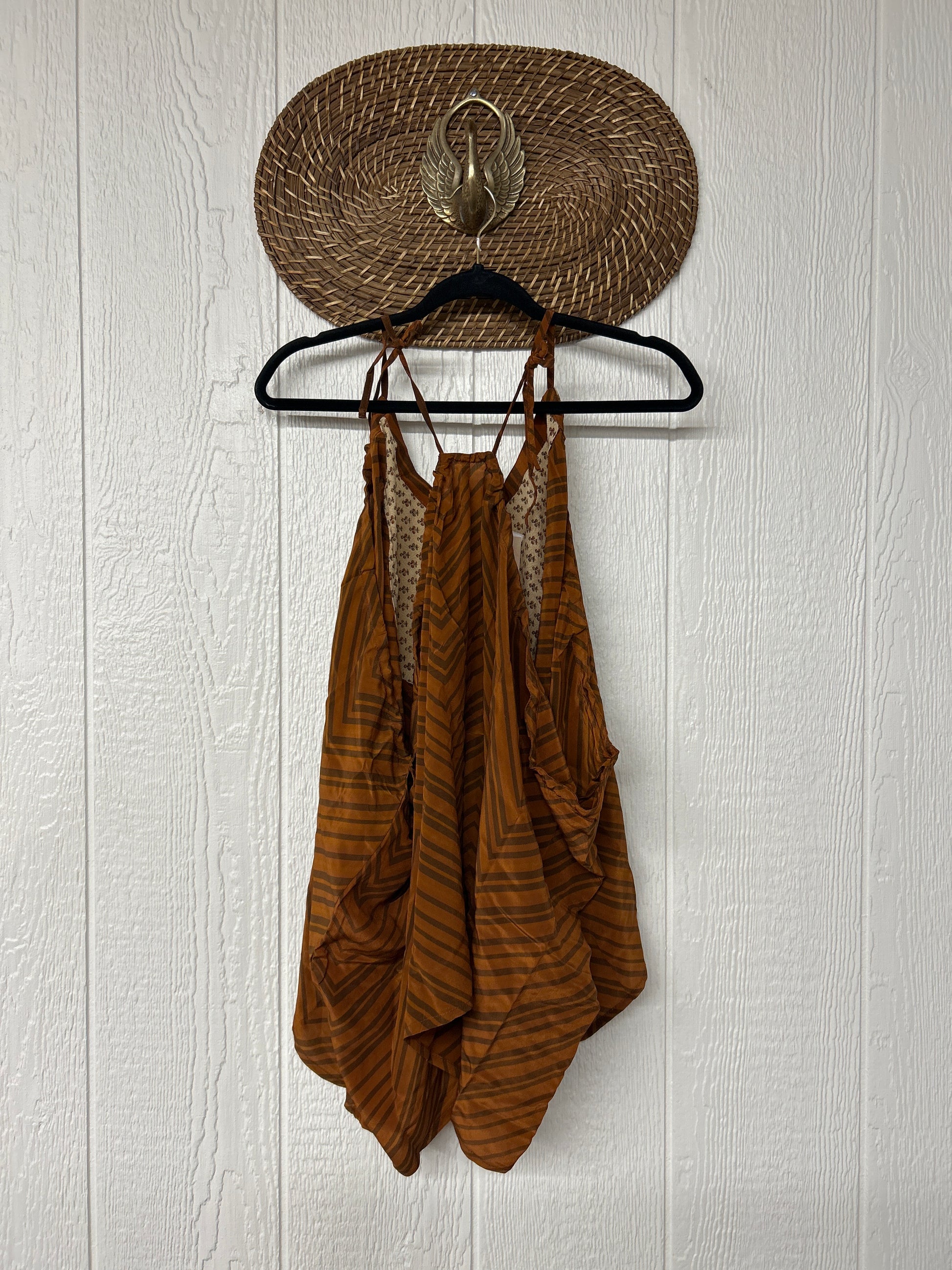 The perfect layering piece made from vintage crepe silk sari. Features tie straps that also cinch for customization.