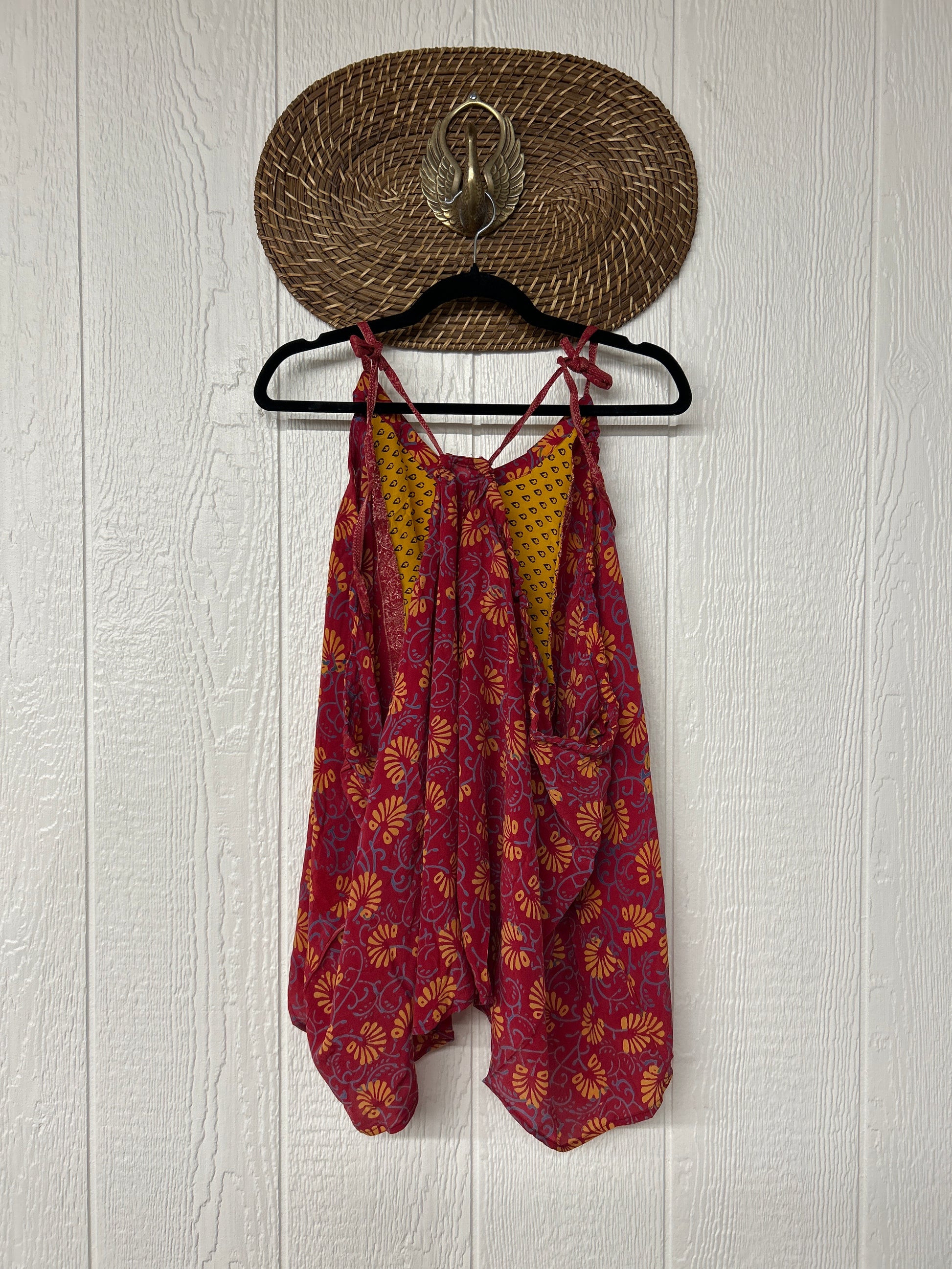 The perfect layering piece made from vintage crepe silk sari. Features tie straps that also cinch for customization.