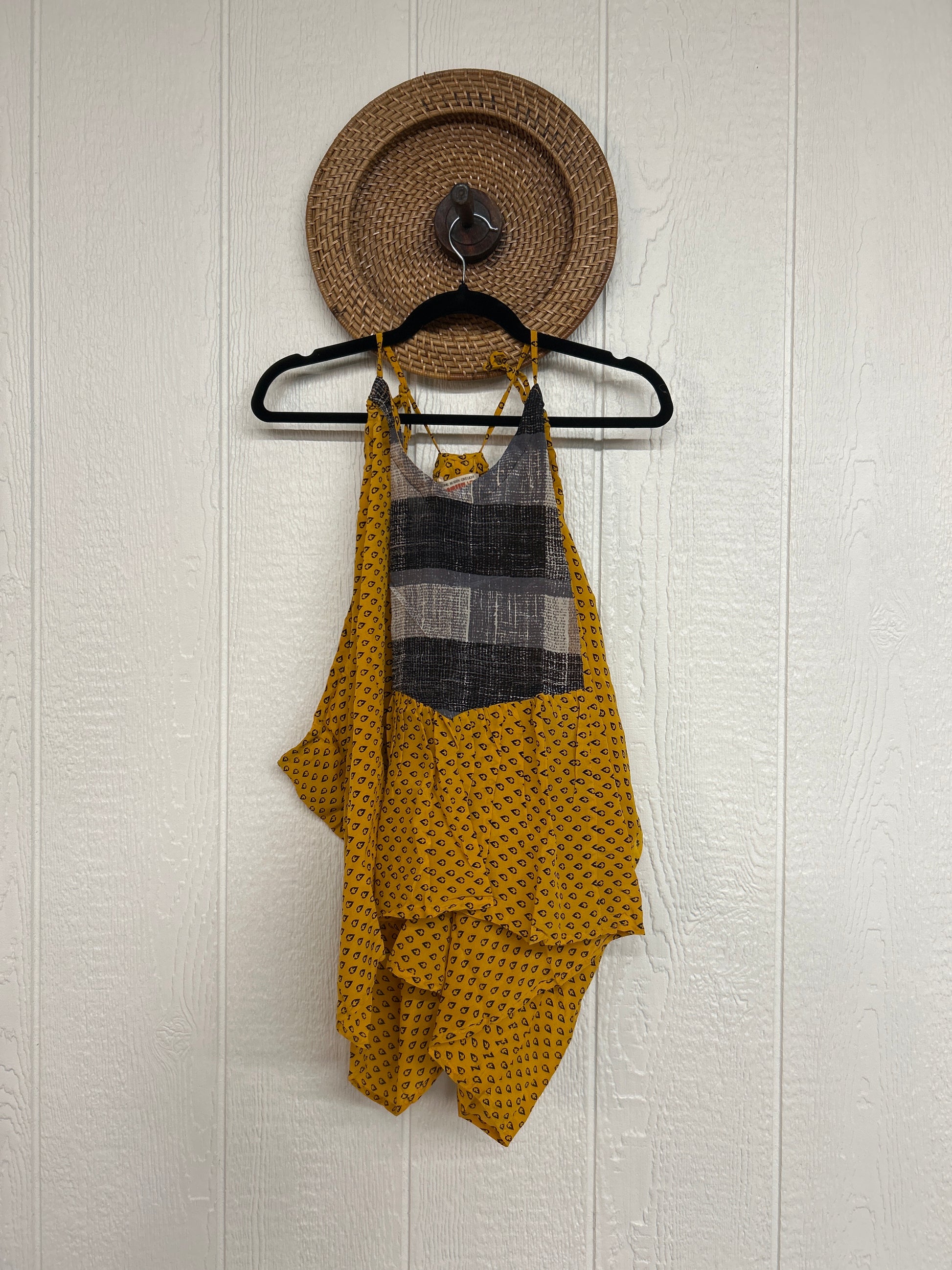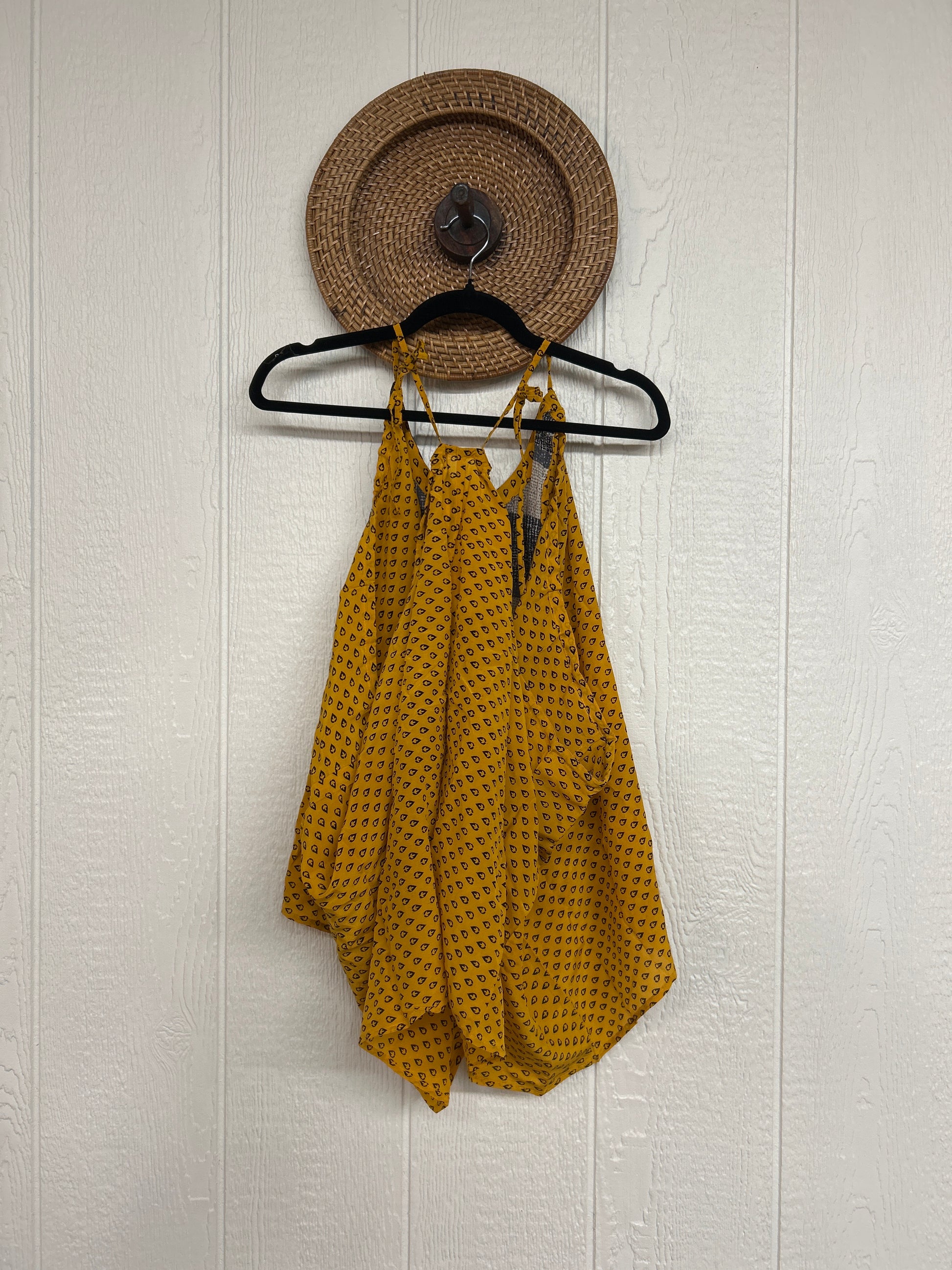The perfect layering piece made from vintage crepe silk sari. Features tie straps that also cinch for customization.