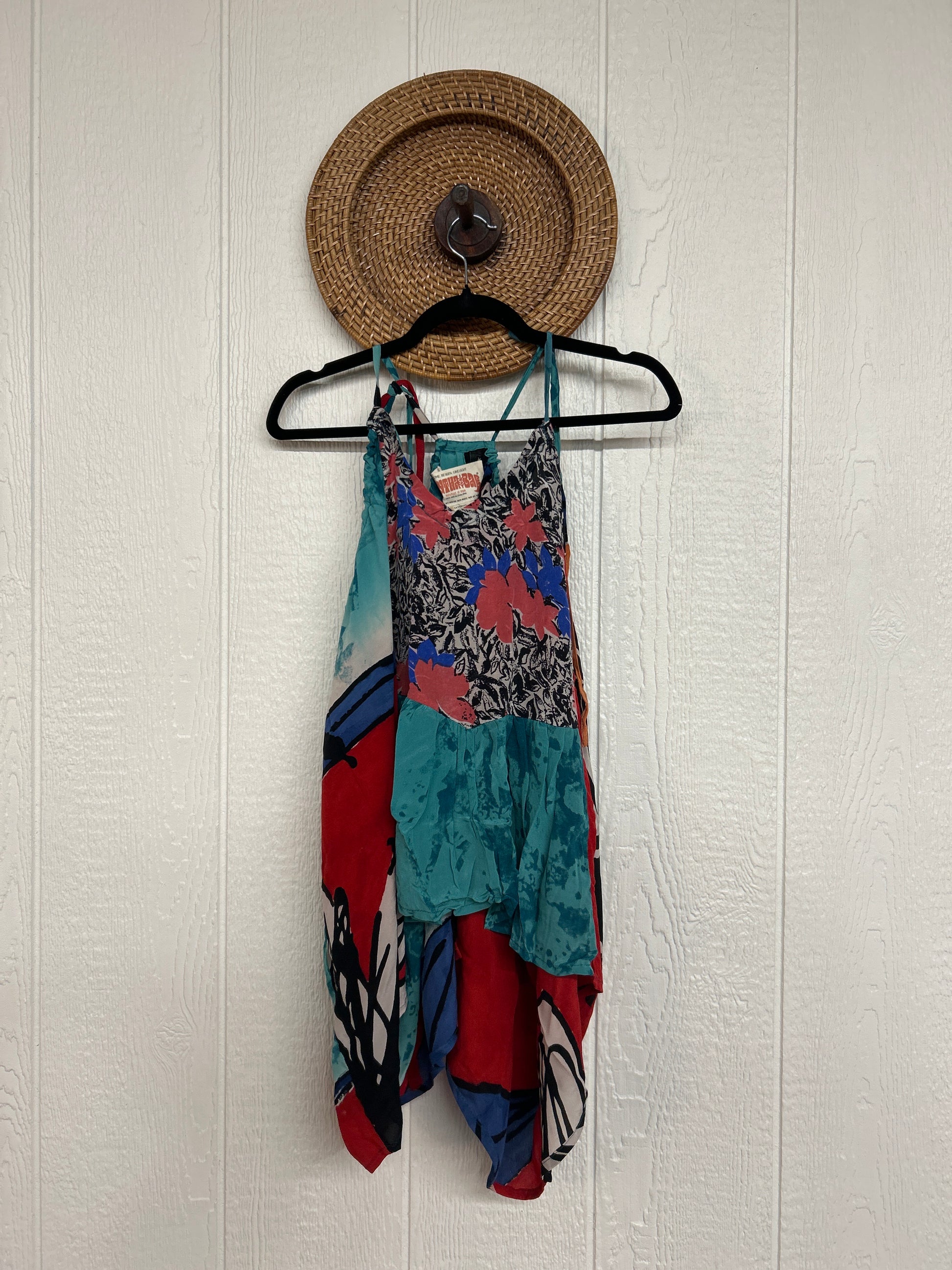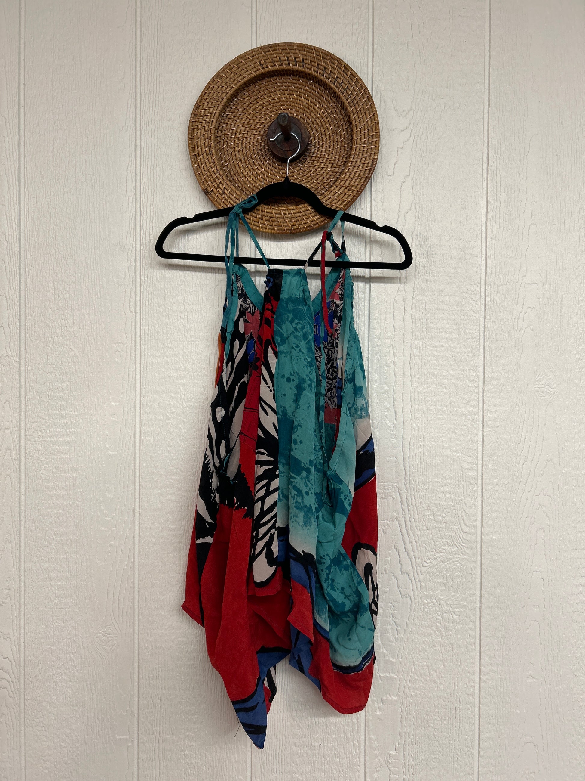 The perfect layering piece made from vintage crepe silk sari. Features tie straps that also cinch for customization.
