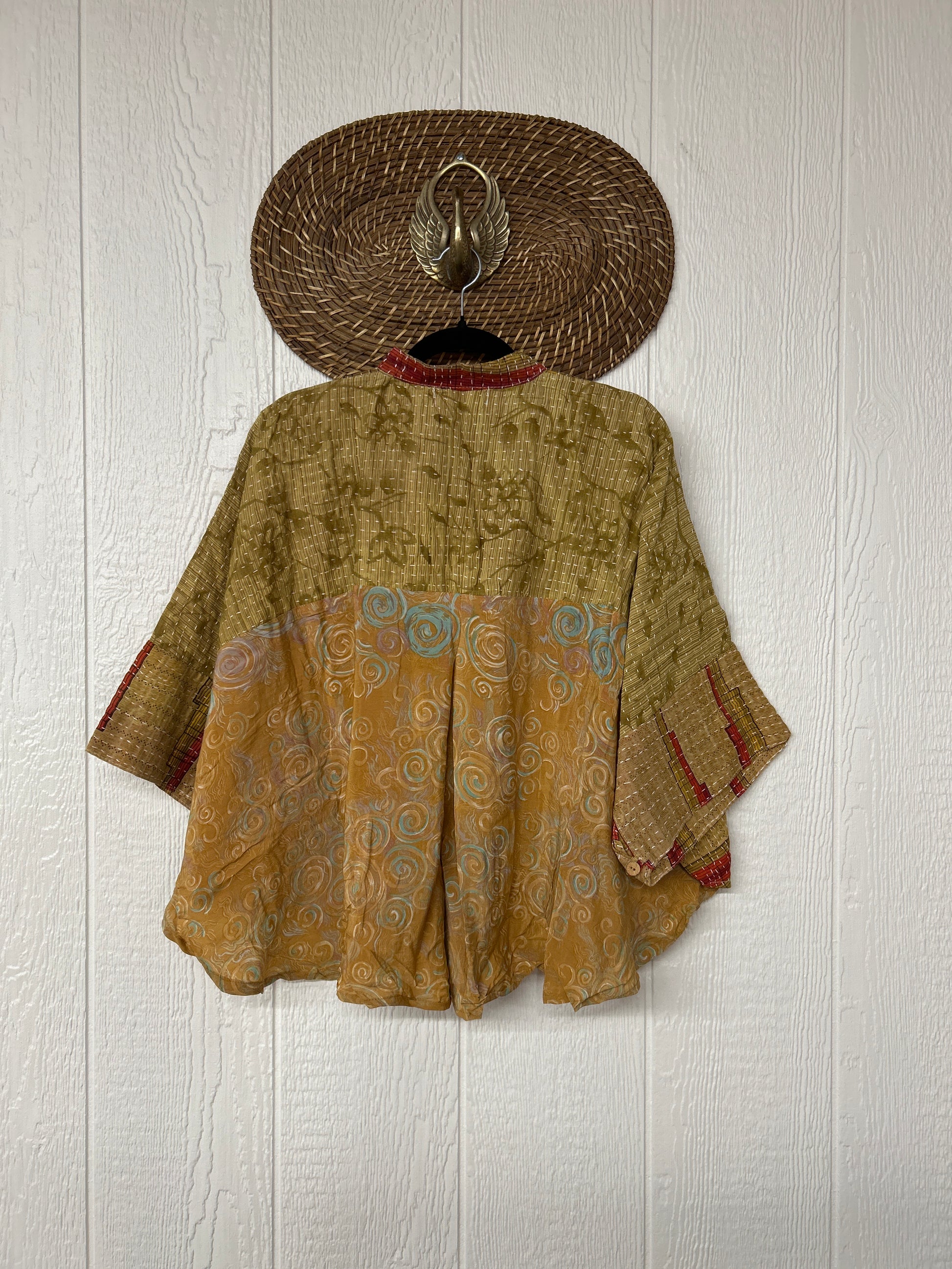 Disclosure: Our vintage styles have lived a full life before becoming the designs in our shop. Fabrics may have small threads or holes in the layers. Color inconsistency or small stains may be present. The saris are sewn together and extend the life of each design. Imperfections should be celebrated