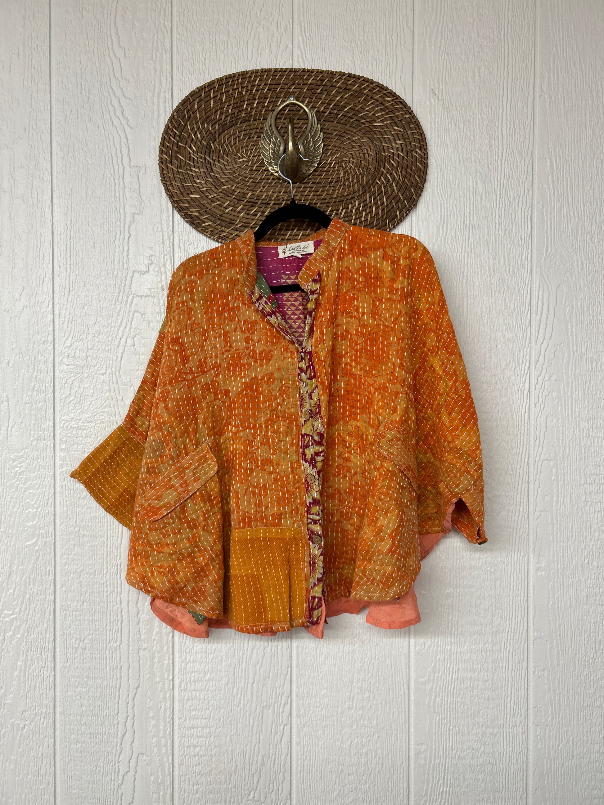 Disclosure: Our vintage styles have lived a full life before becoming the designs in our shop. Fabrics may have small threads or holes in the layers. Color inconsistency or small stains may be present. The saris are sewn together and extend the life of each design. Imperfections should be celebrated