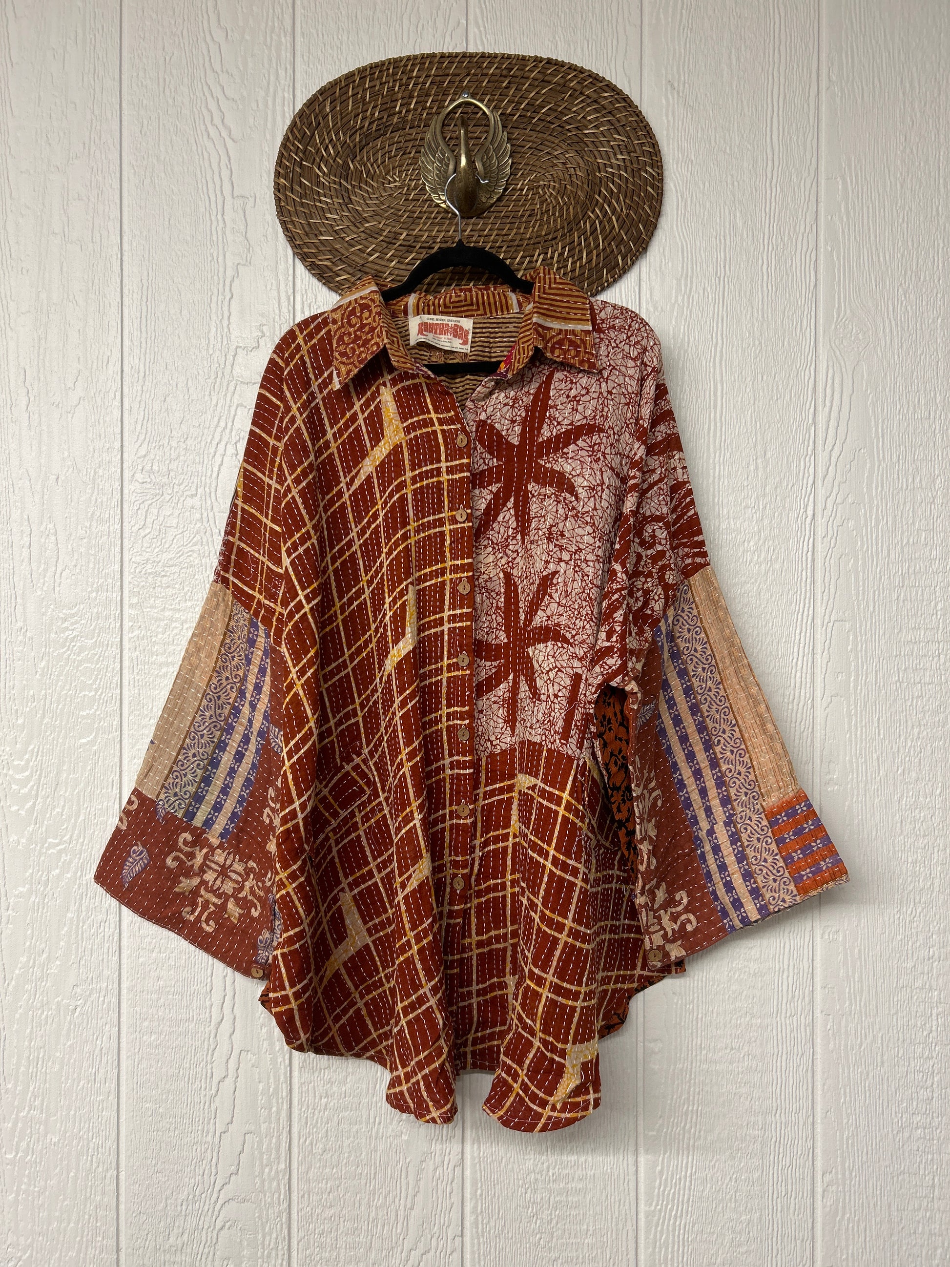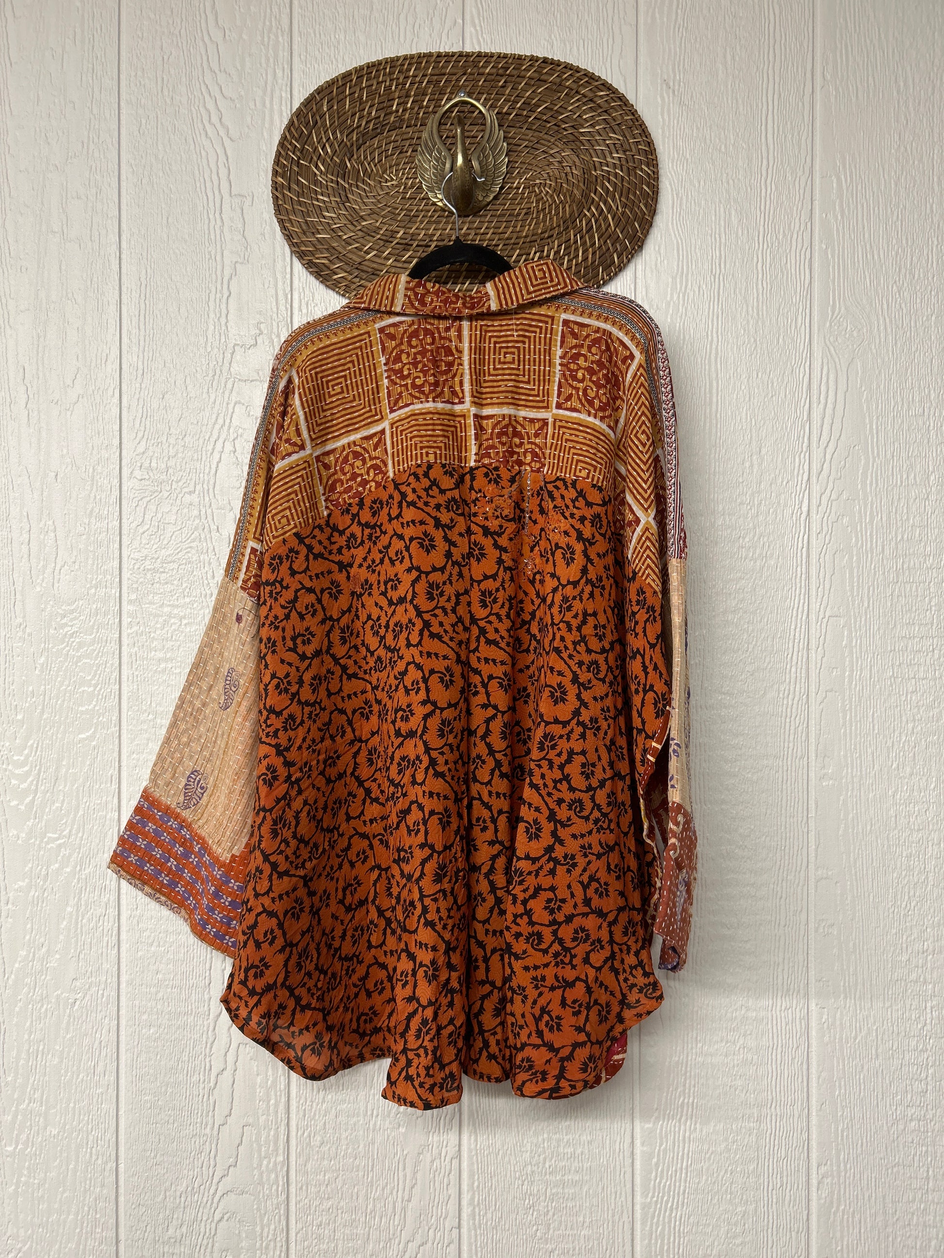 Made from our vintage cotton embroidered sari this billowy dream features a crepe panel in the back, functional buttons, two deep pockets in the front and a curved bottom.