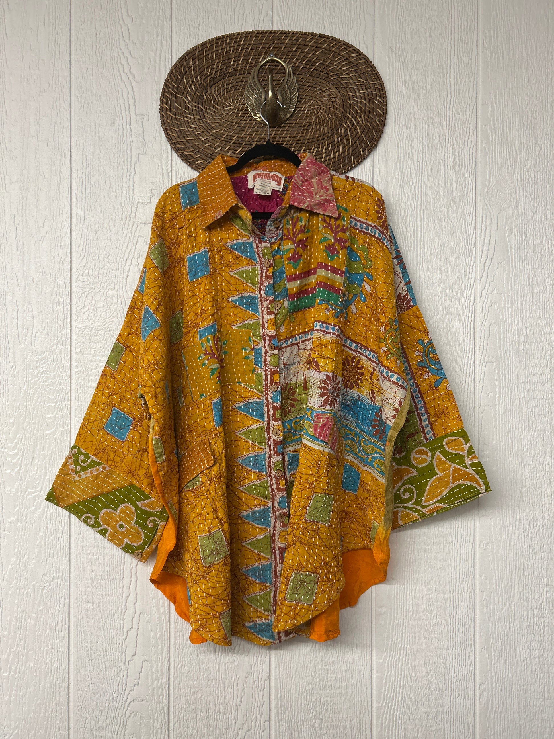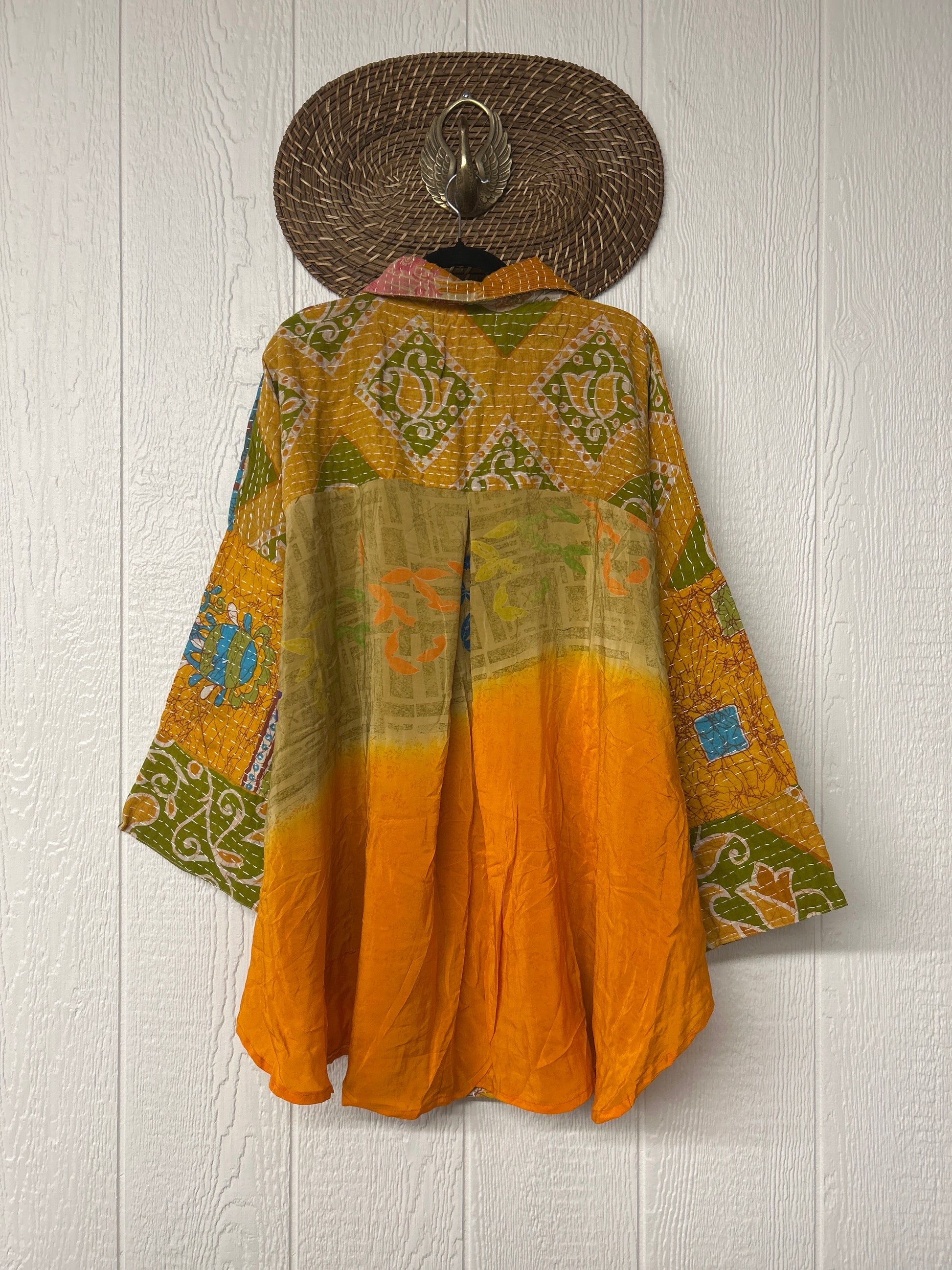 Made from our vintage cotton embroidered sari this billowy dream features a crepe panel in the back, functional buttons, two deep pockets in the front and a curved bottom.