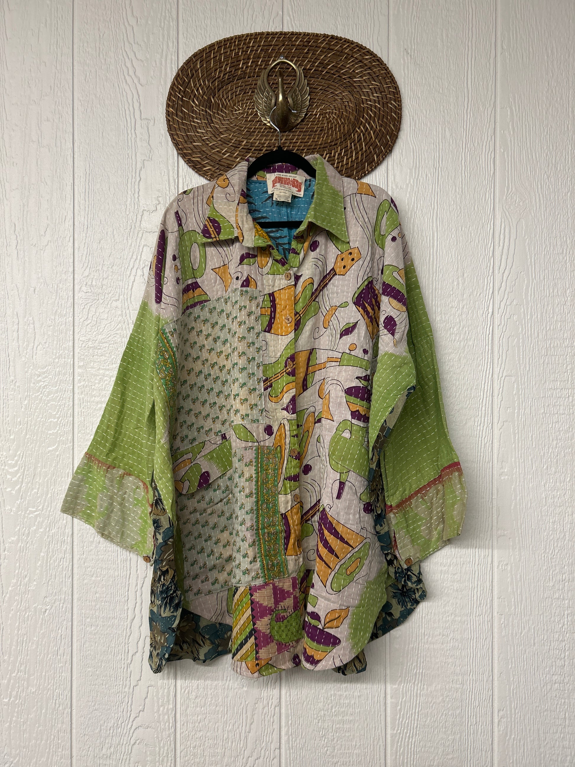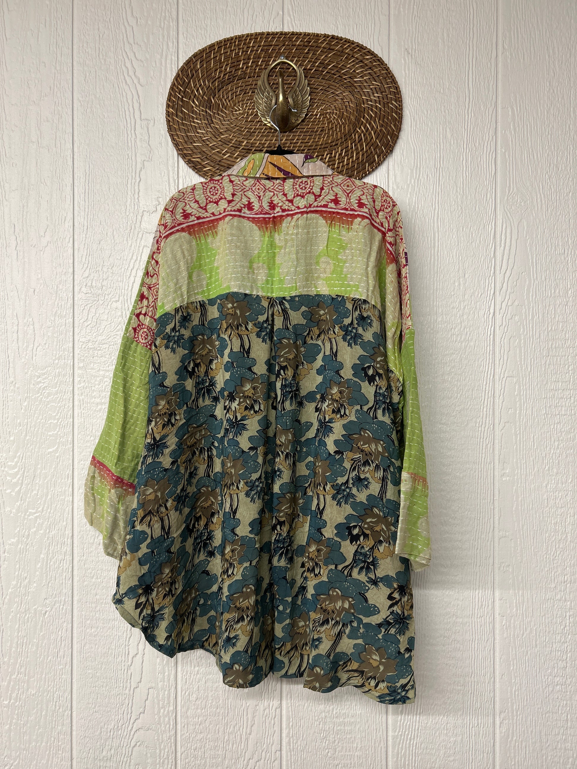 Made from our vintage cotton embroidered sari this billowy dream features a crepe panel in the back, functional buttons, two deep pockets in the front and a curved bottom.