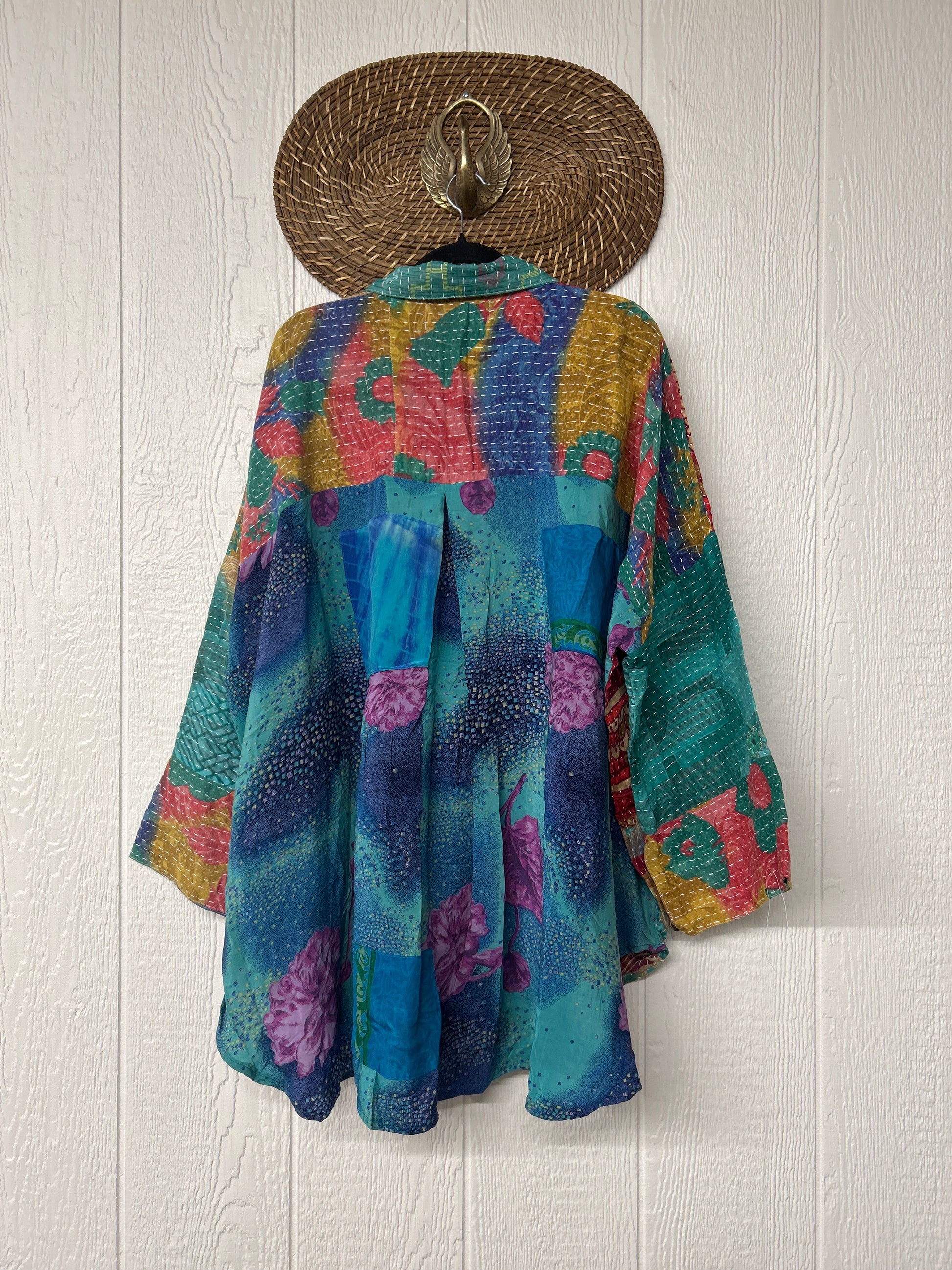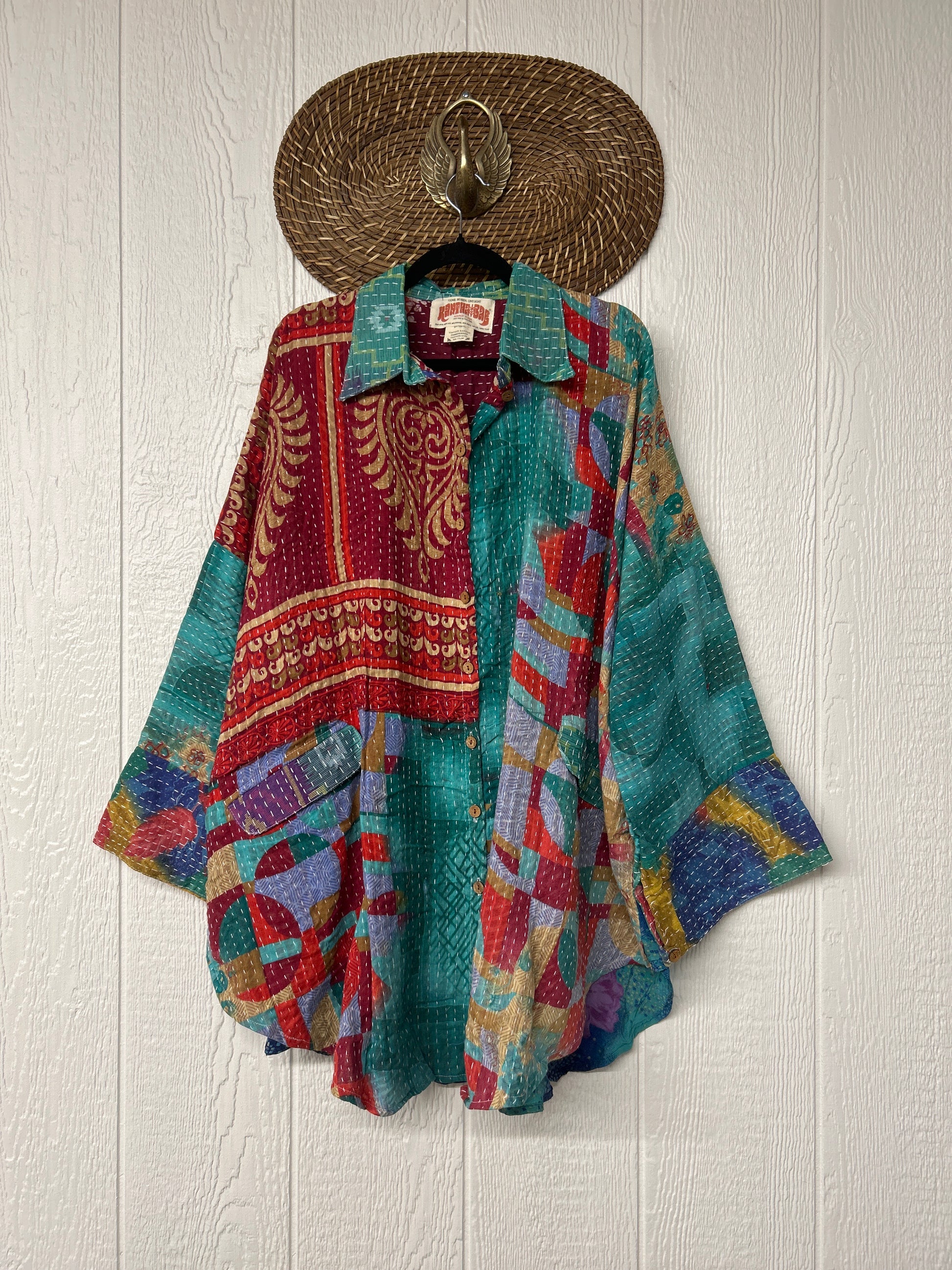 Made from our vintage cotton embroidered sari this billowy dream features a crepe panel in the back, functional buttons, two deep pockets in the front and a curved bottom.