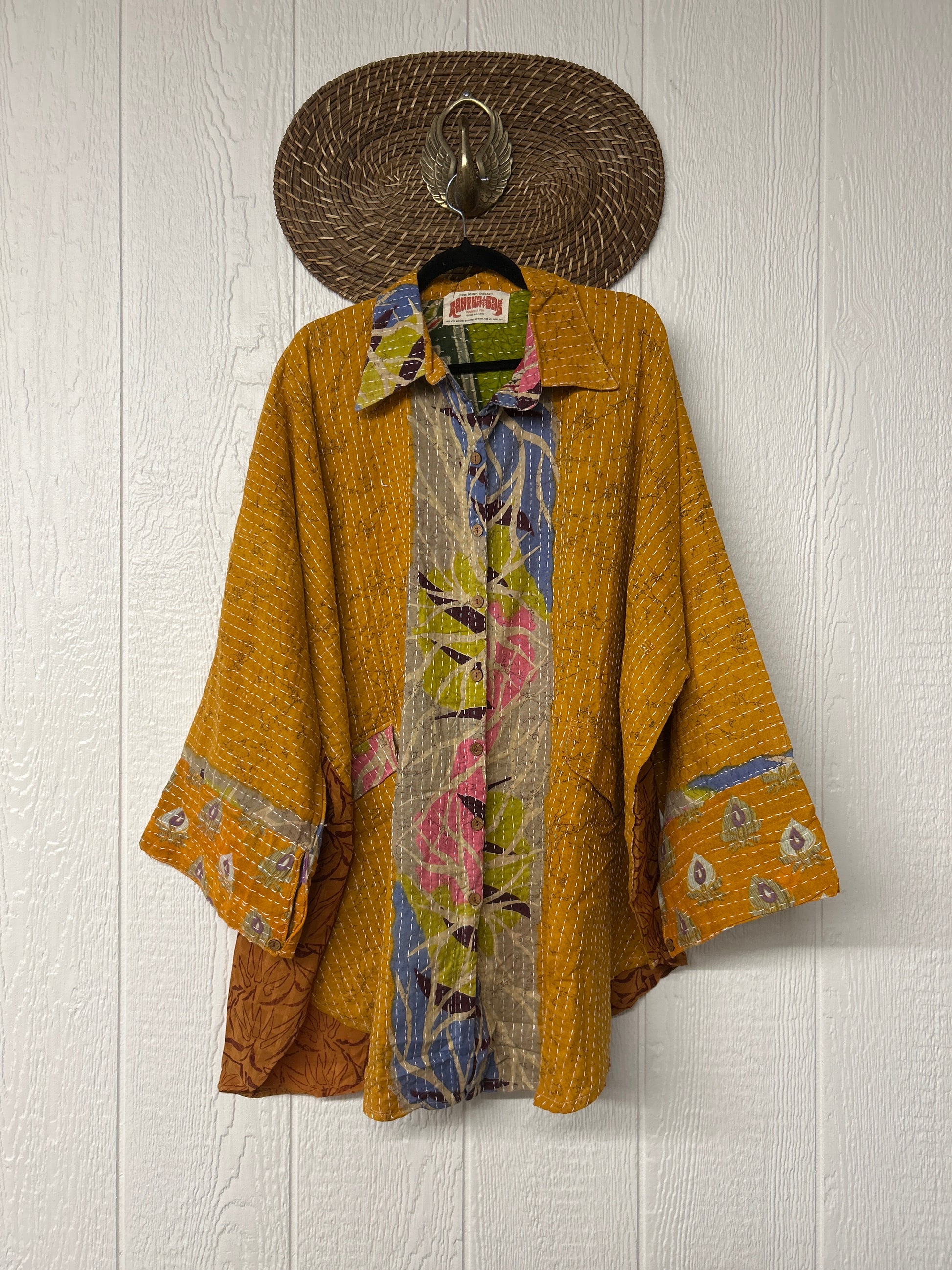 Made from our vintage cotton embroidered sari this billowy dream features a crepe panel in the back, functional buttons, two deep pockets in the front and a curved bottom.
