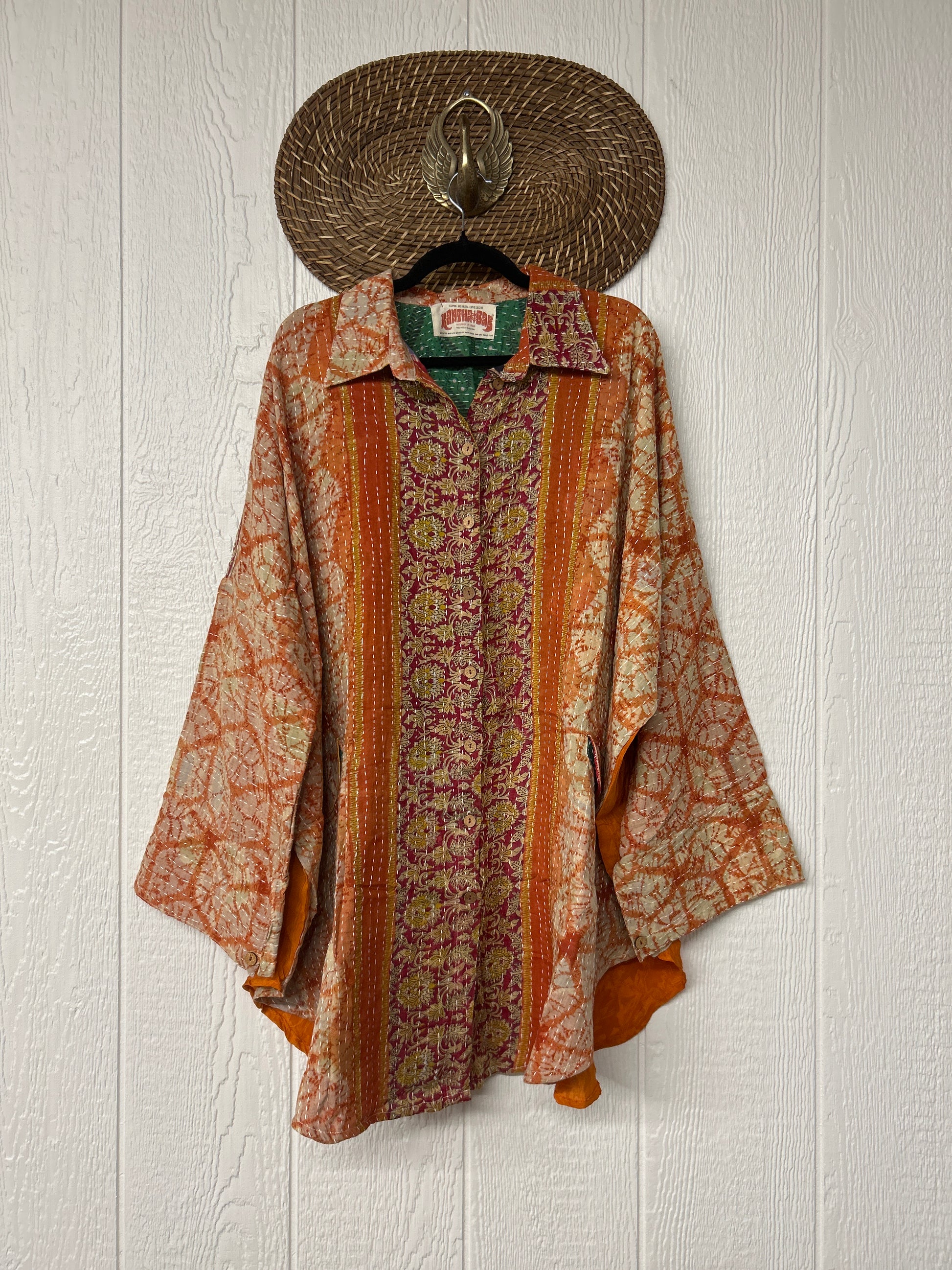 Disclosure: Our vintage styles have lived a full life before becoming the designs in our shop. Fabrics may have small threads or holes in the layers. Color inconsistency or small stains may be present.