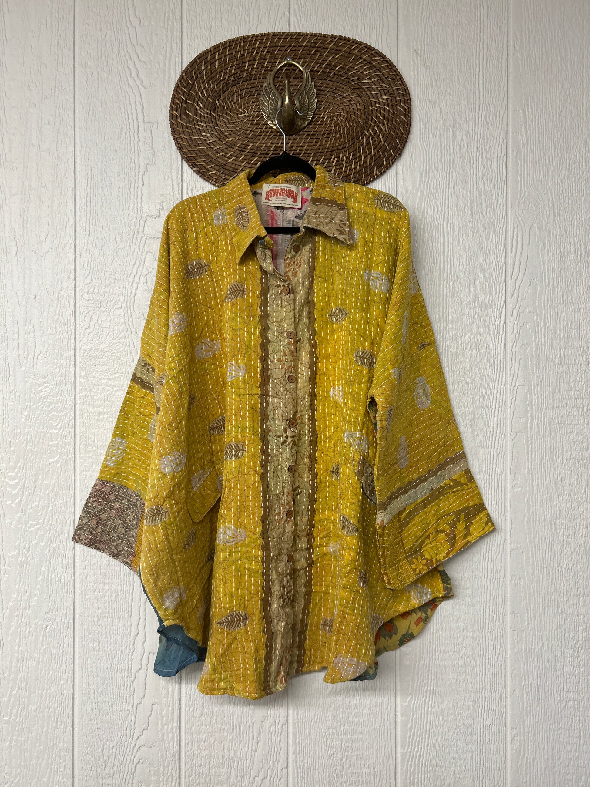 Disclosure: Our vintage styles have lived a full life before becoming the designs in our shop. Fabrics may have small threads or holes in the layers. Color inconsistency or small stains may be present.