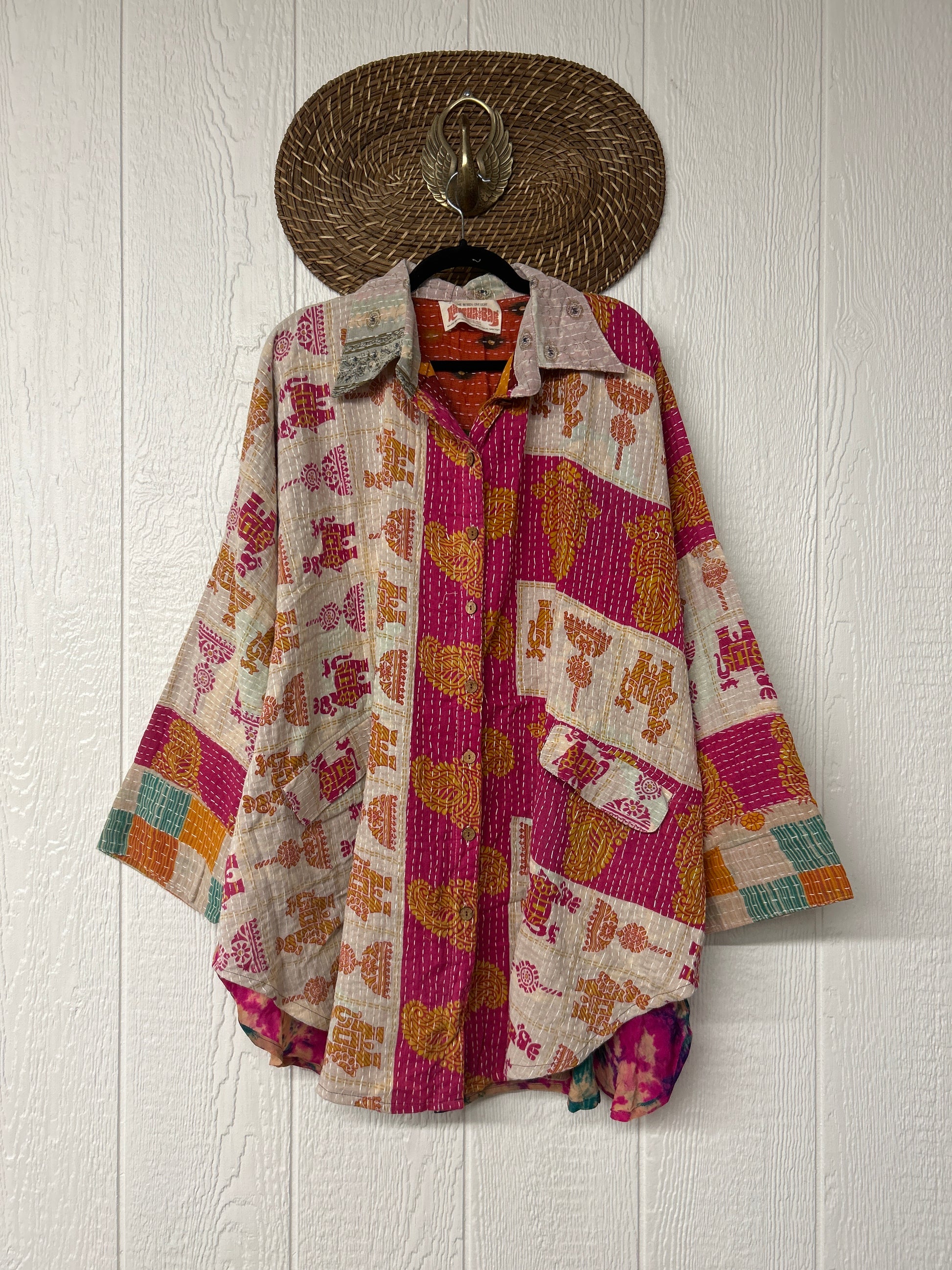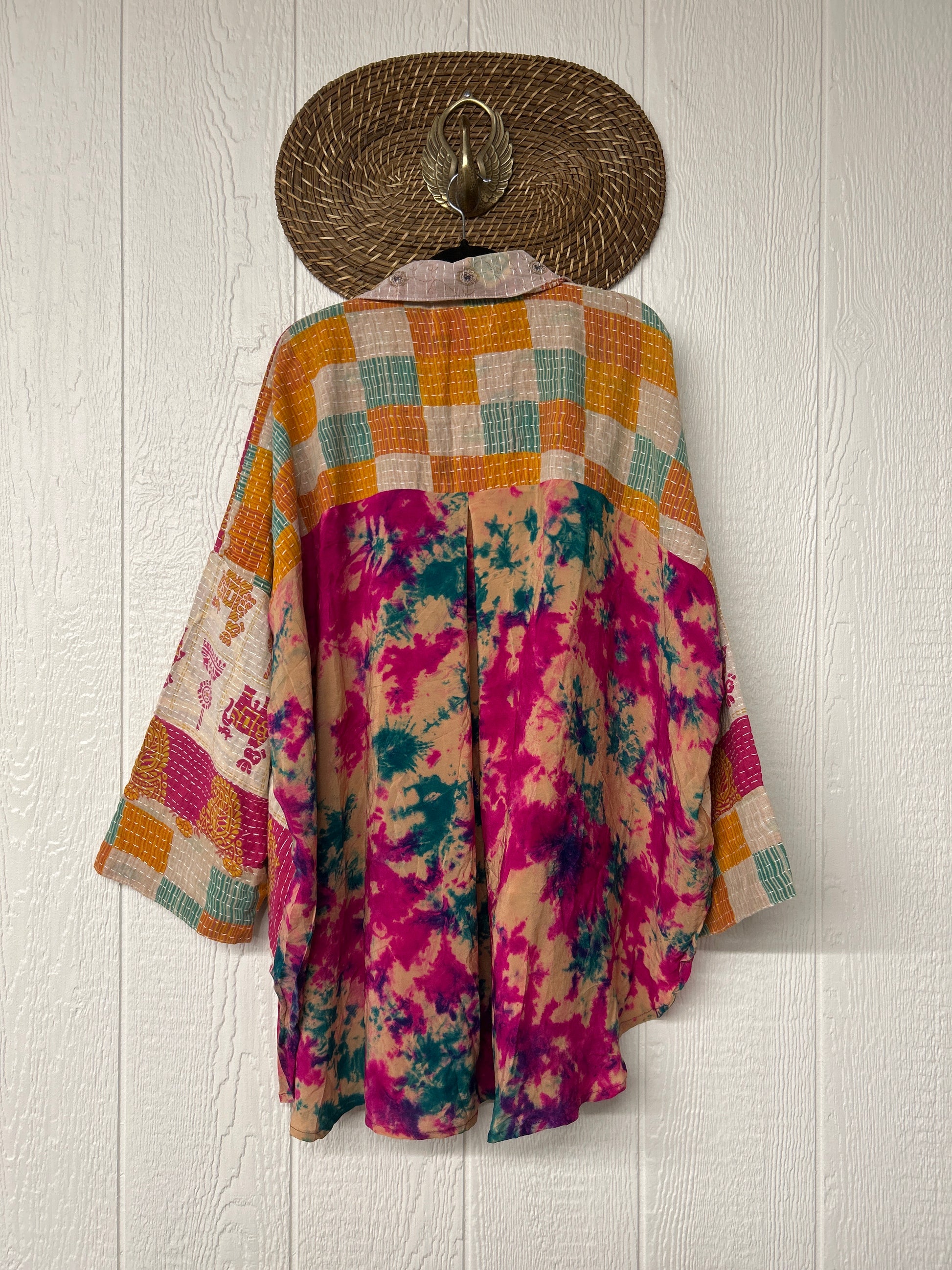 Made from our vintage cotton embroidered sari this billowy dream features a crepe panel in the back, functional buttons, two deep pockets in the front and a curved bottom.