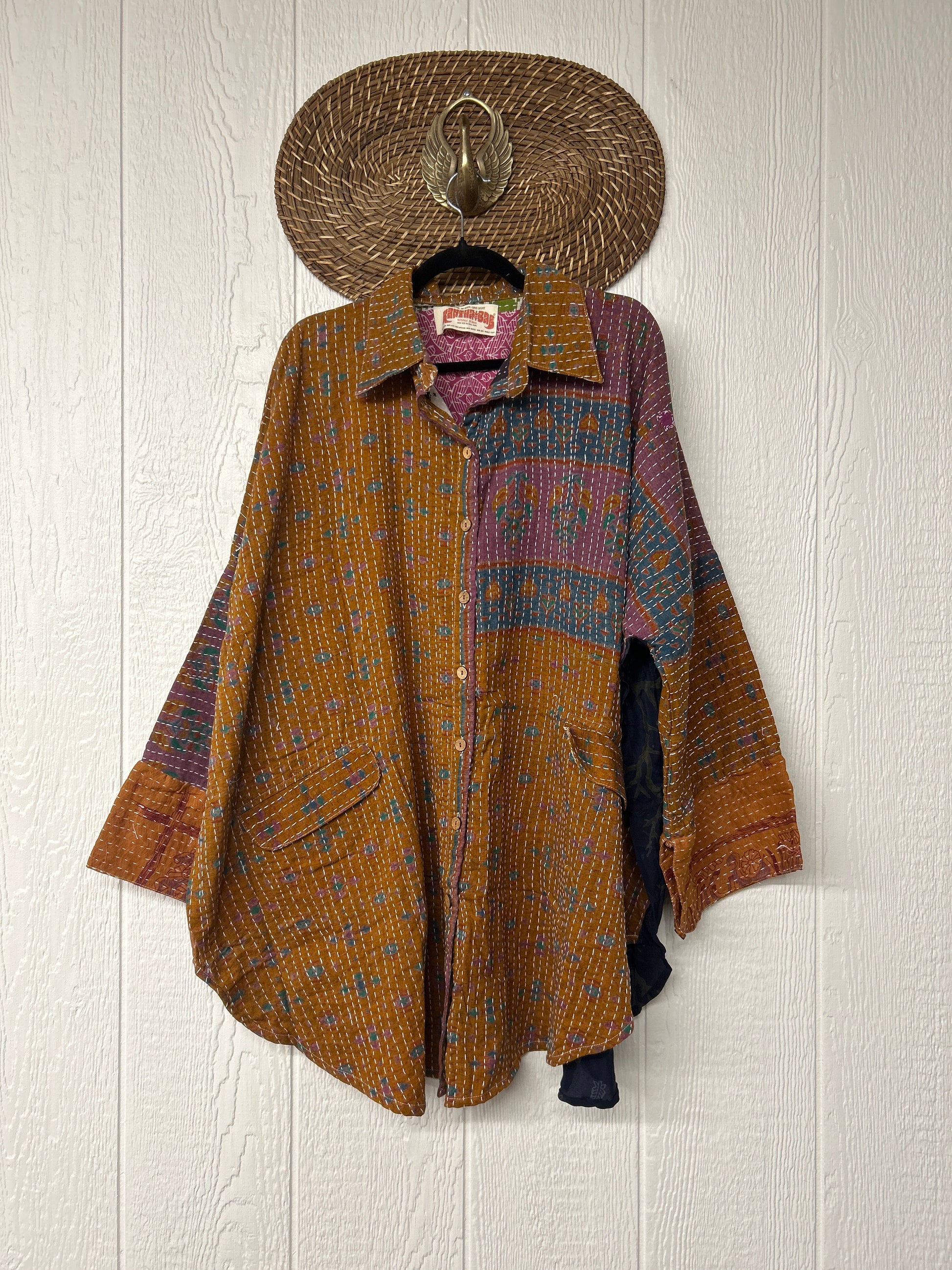 Made from our vintage cotton embroidered sari this billowy dream features a crepe panel in the back, functional buttons, two deep pockets in the front and a curved bottom.