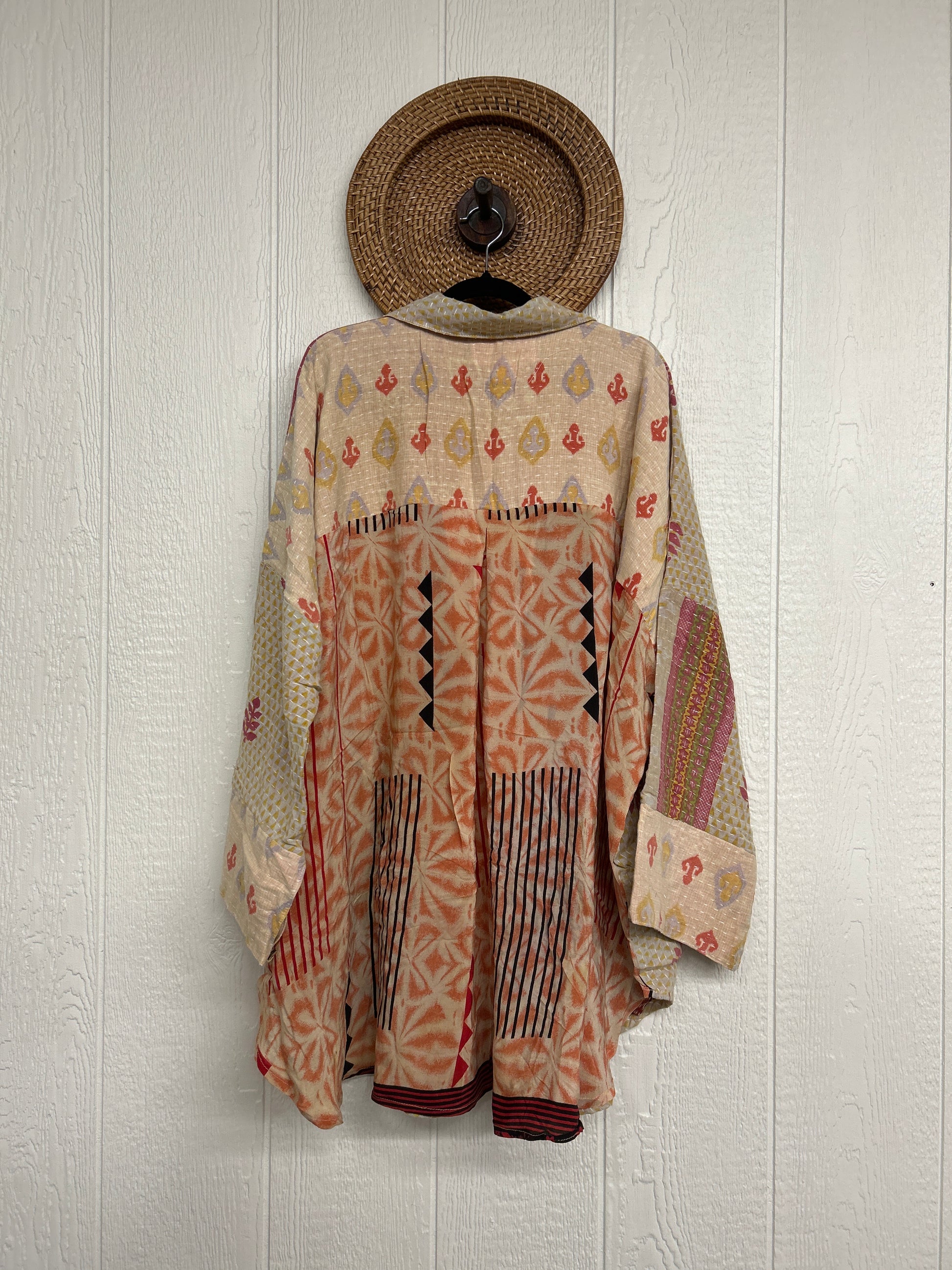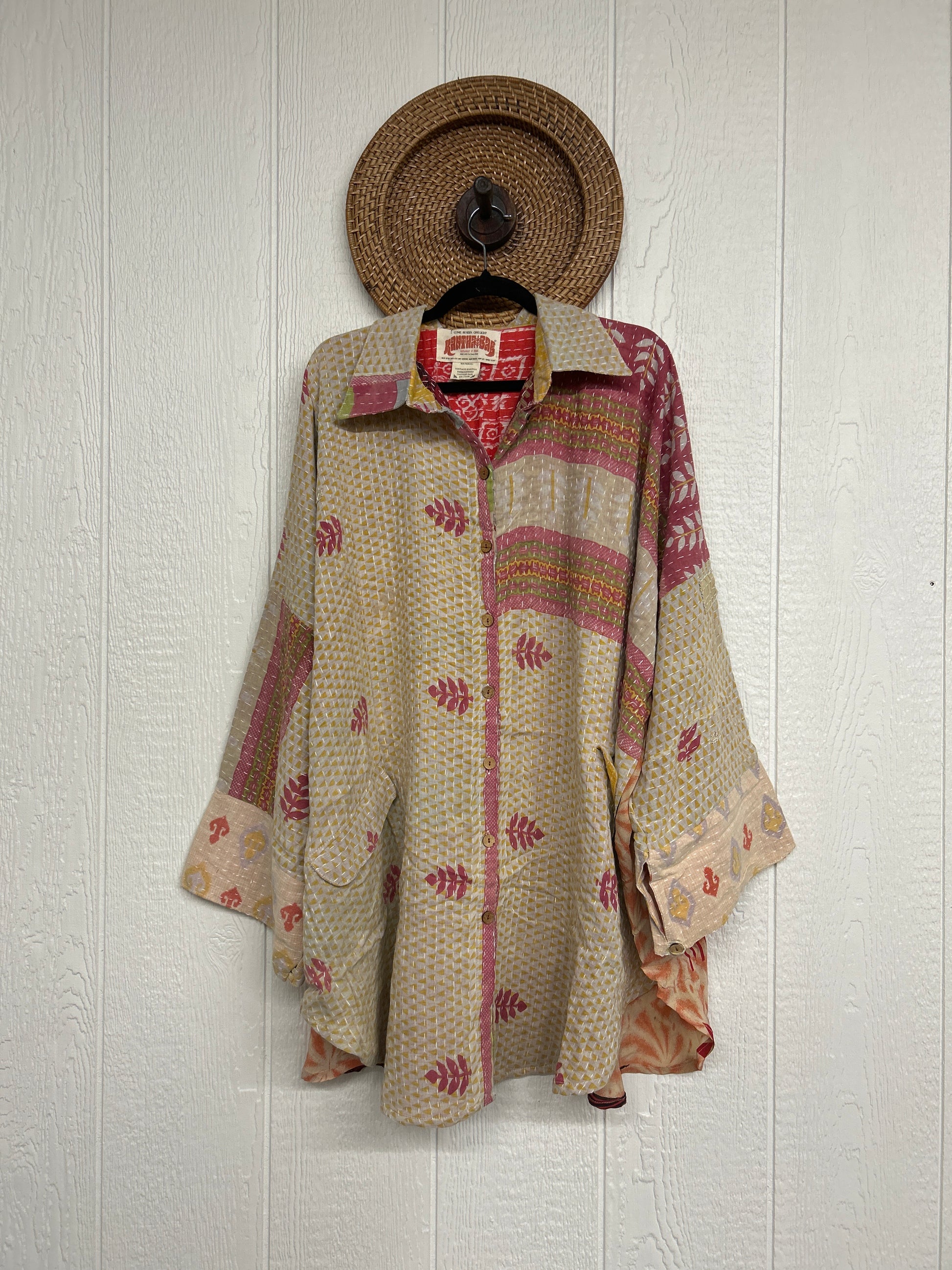 Made from our vintage cotton embroidered sari this billowy dream features a crepe panel in the back, functional buttons, two deep pockets in the front and a curved bottom.
