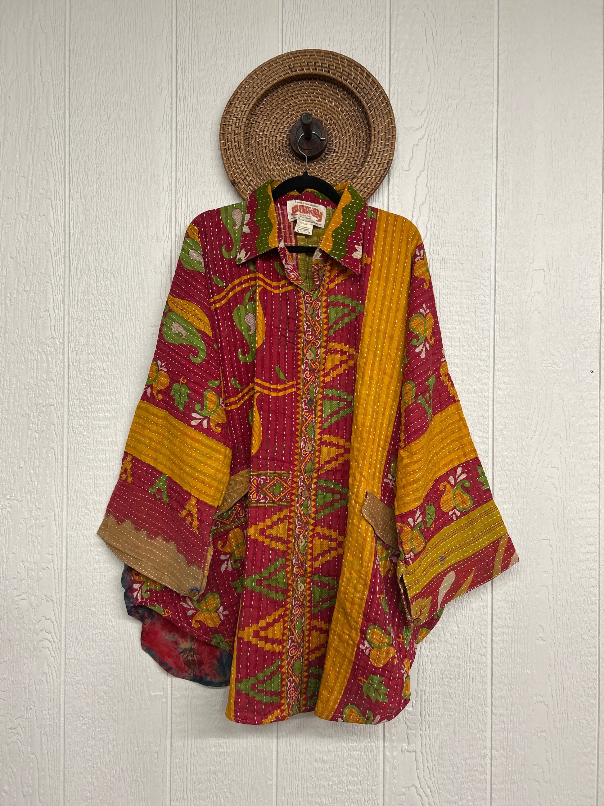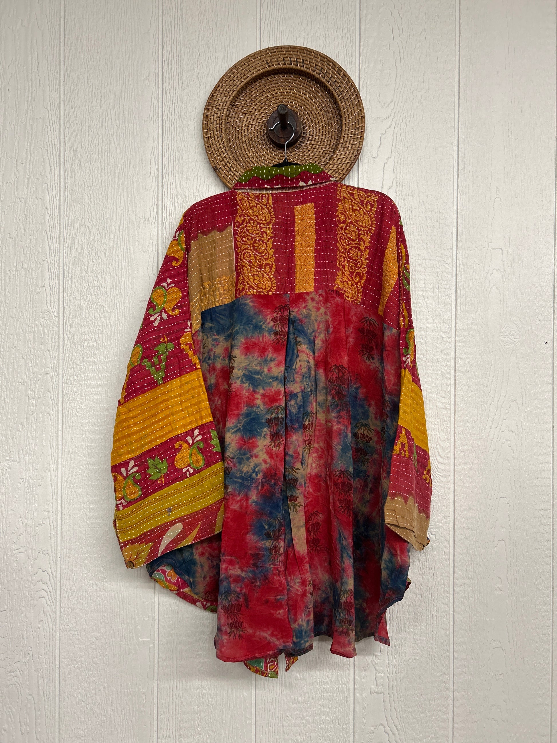 Made from our vintage cotton embroidered sari this billowy dream features a crepe panel in the back, functional buttons, two deep pockets in the front and a curved bottom.