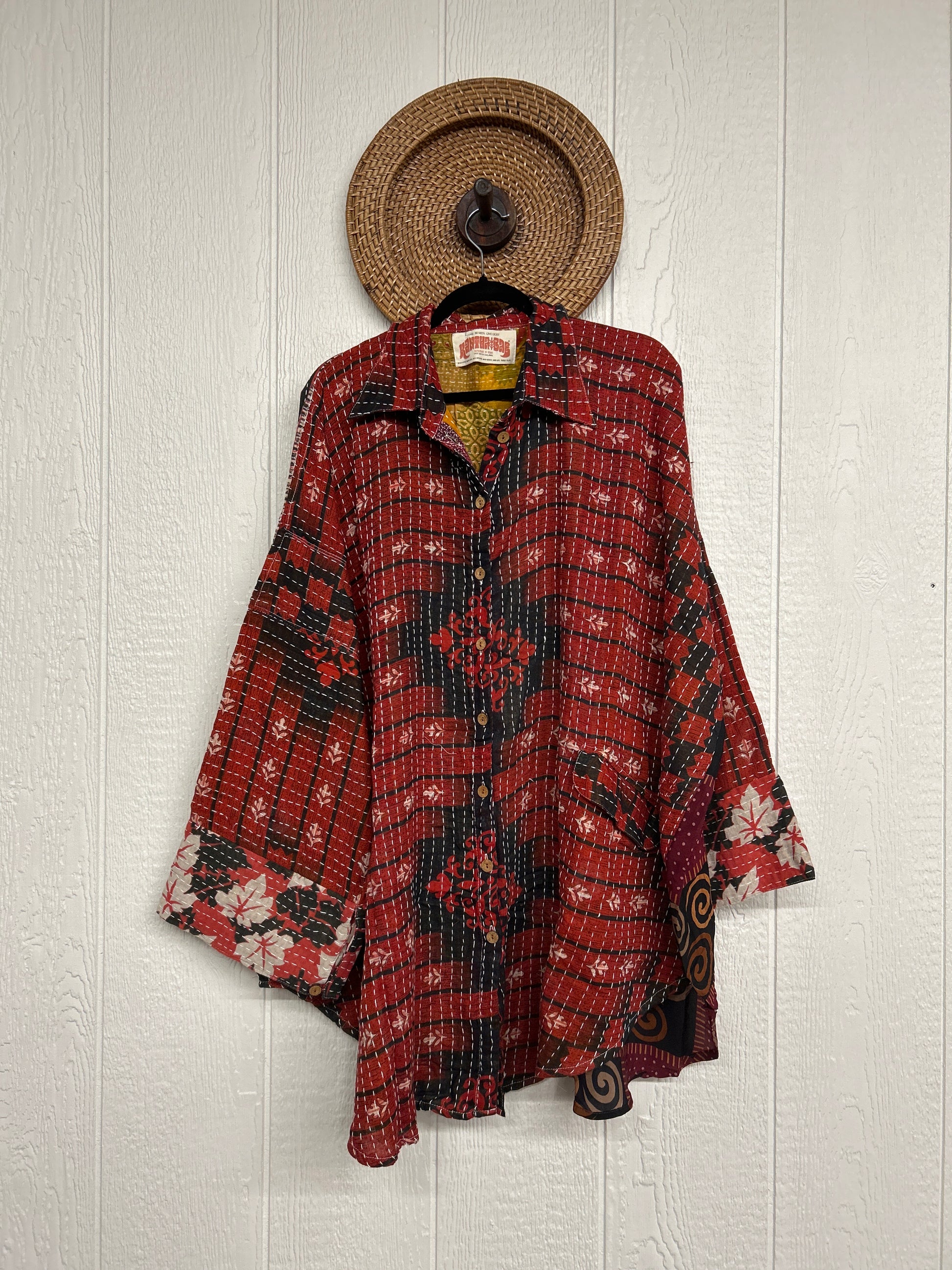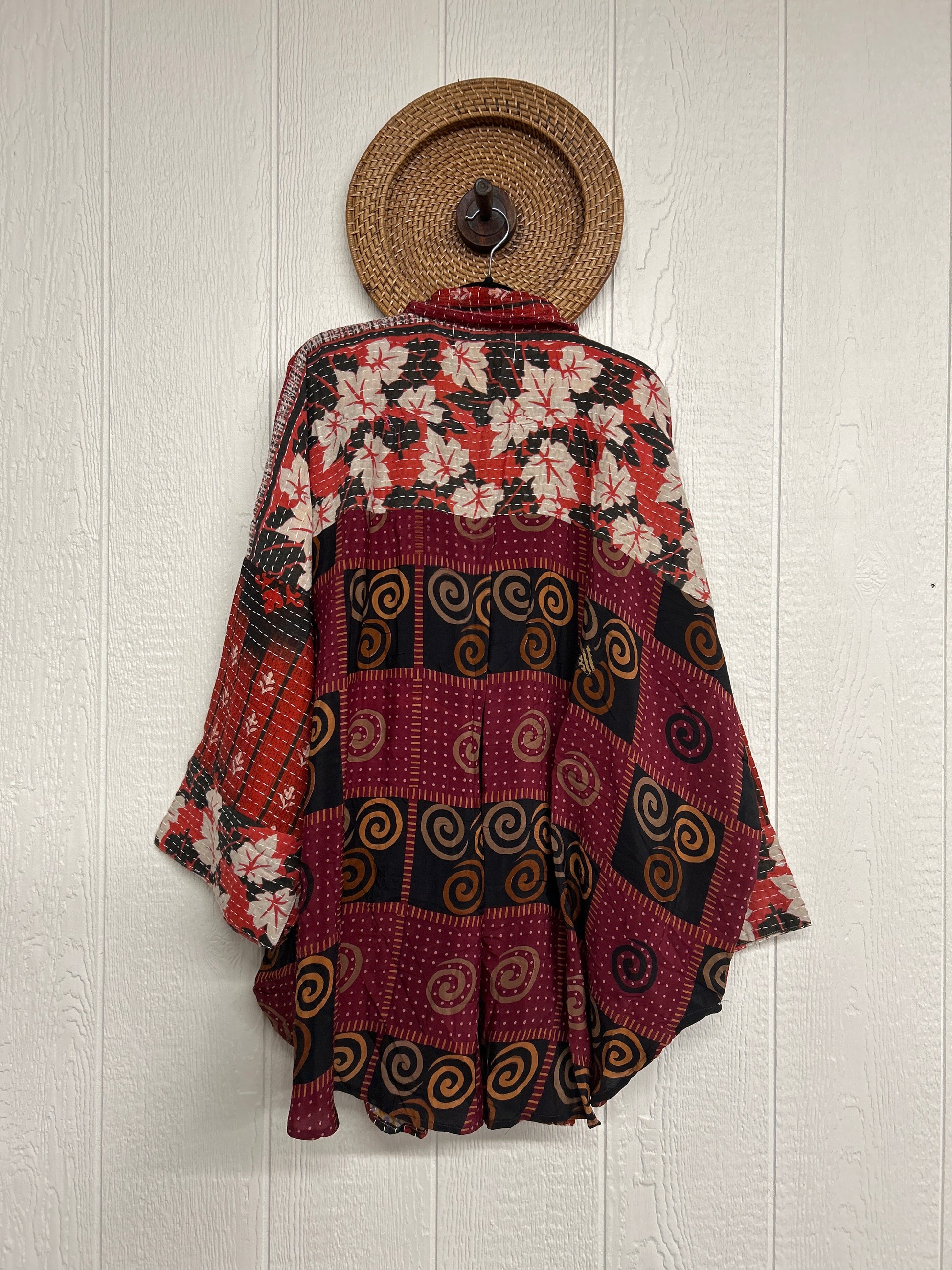 Made from our vintage cotton embroidered sari this billowy dream features a crepe panel in the back, functional buttons, two deep pockets in the front and a curved bottom.