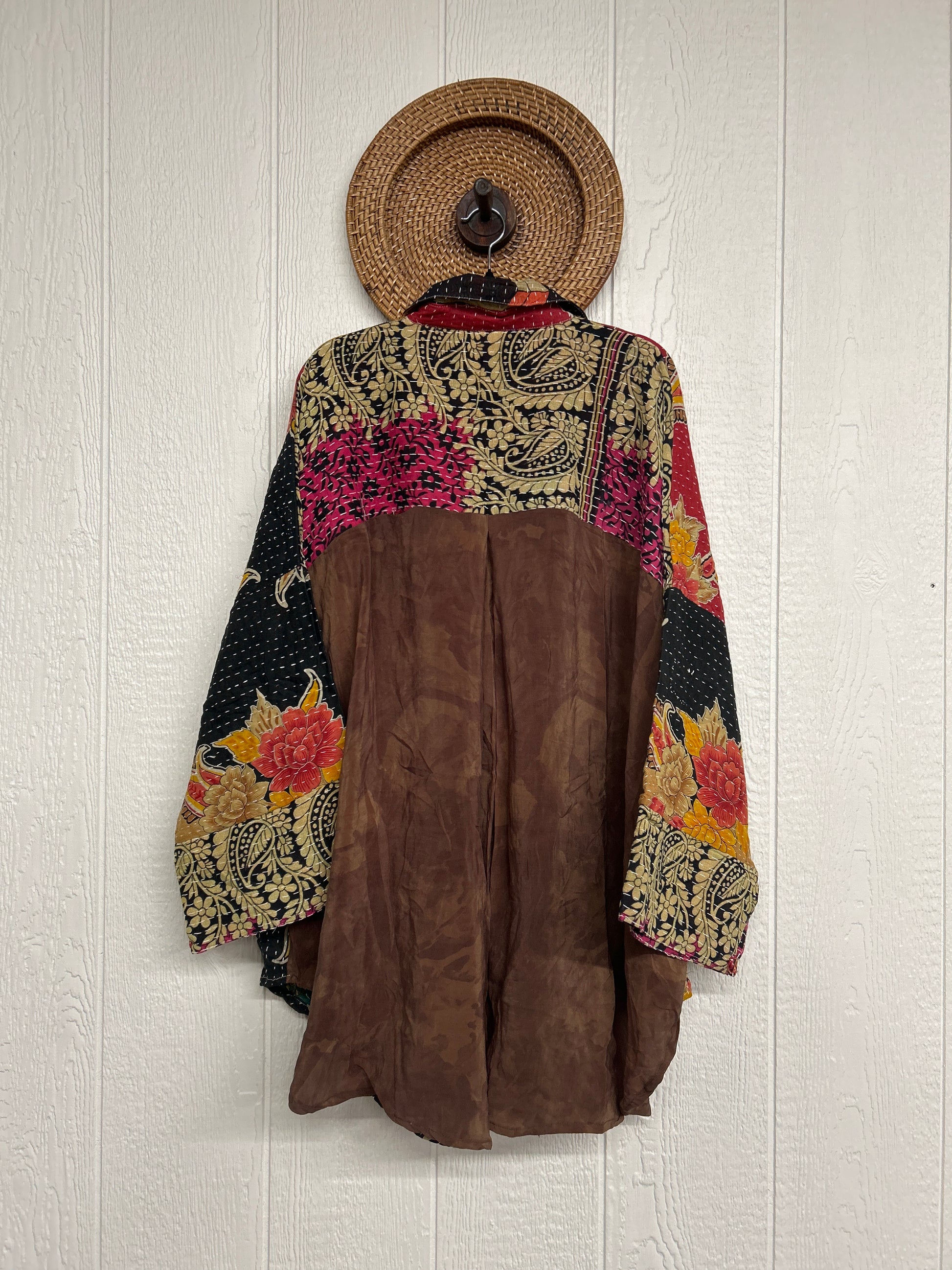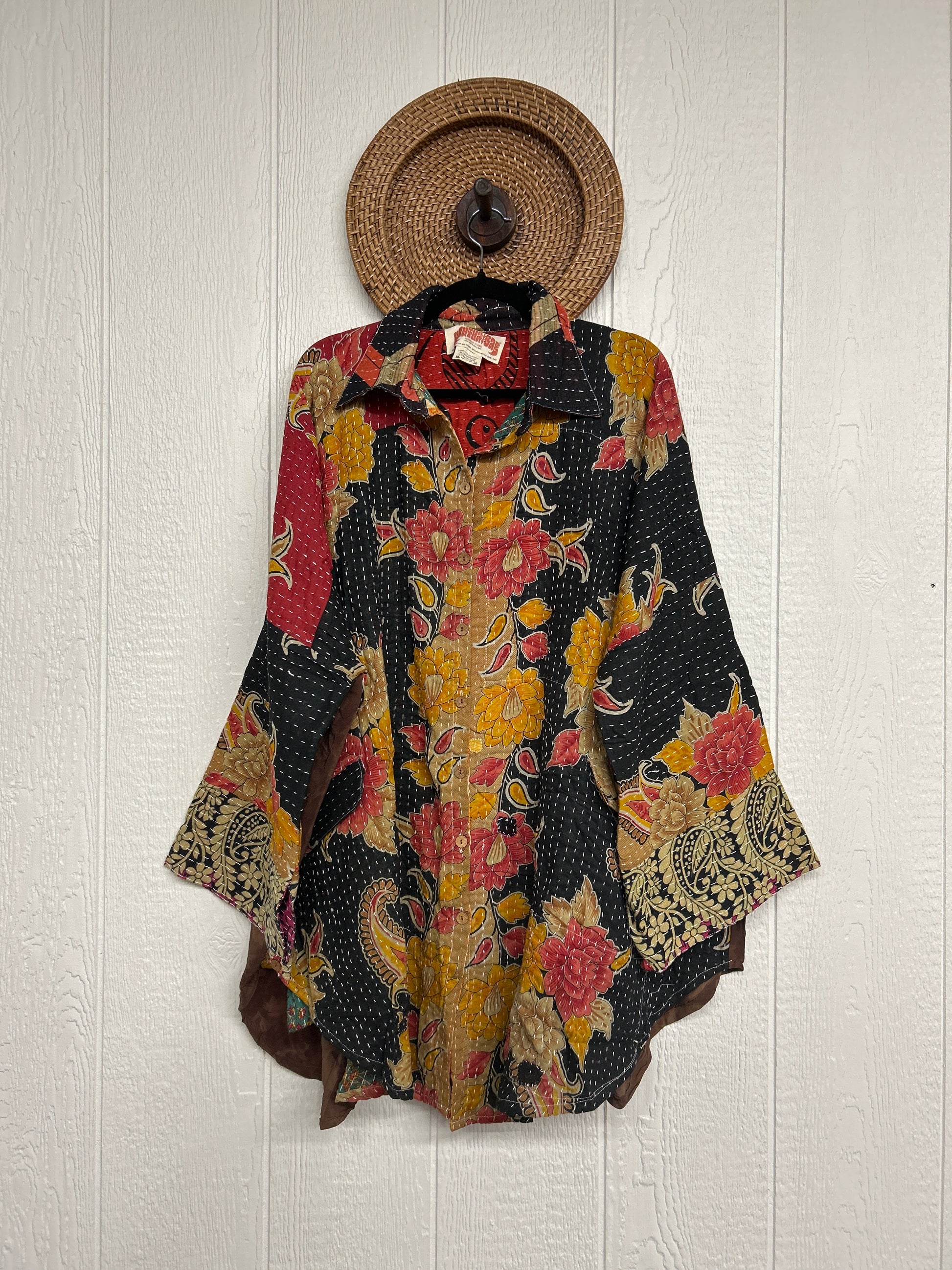 Made from our vintage cotton embroidered sari this billowy dream features a crepe panel in the back, functional buttons, two deep pockets in the front and a curved bottom.
