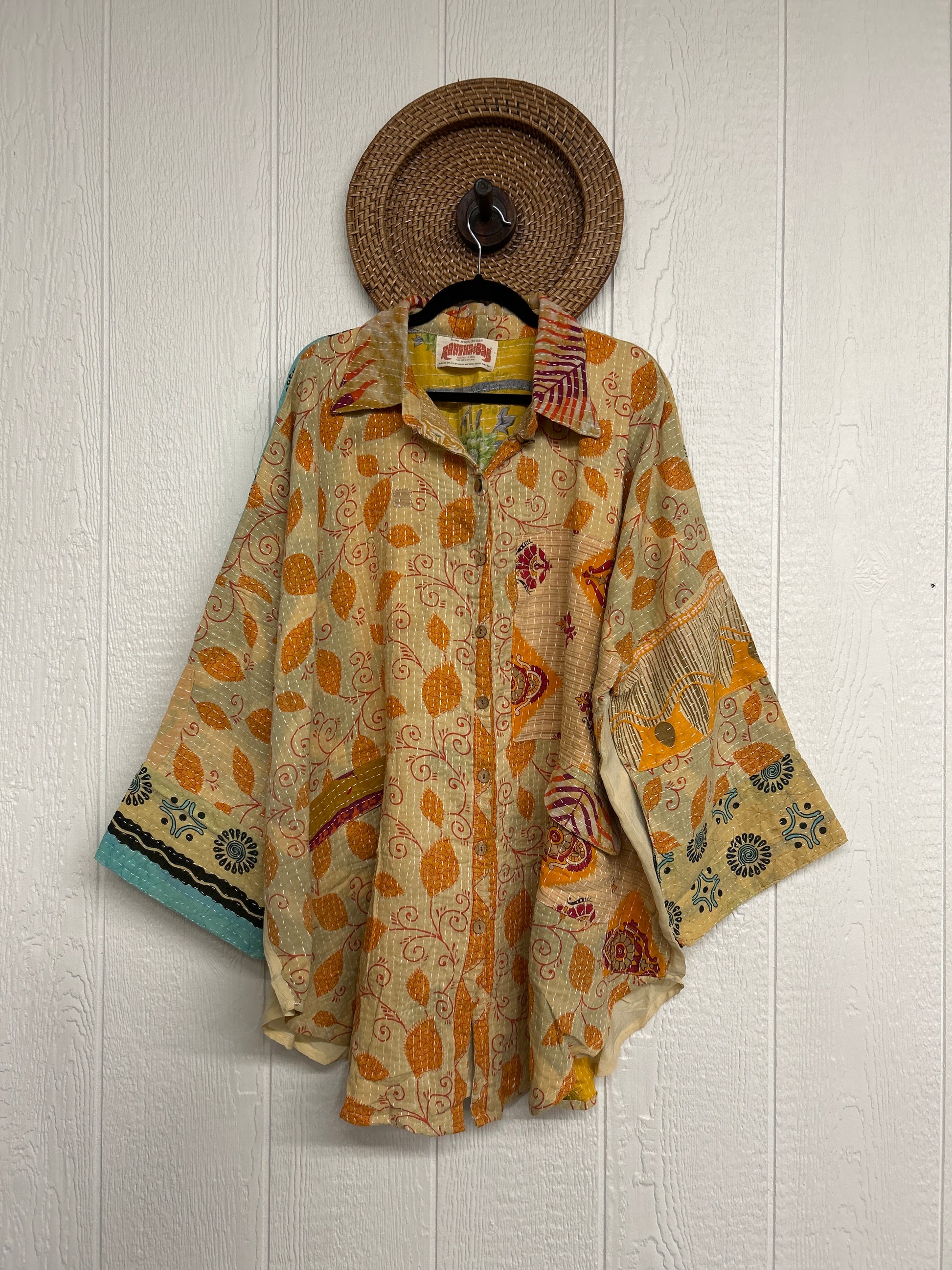 Disclosure: Our vintage styles have lived a full life before becoming the designs in our shop. Fabrics may have small threads or holes in the layers. Color inconsistency or small stains may be present.