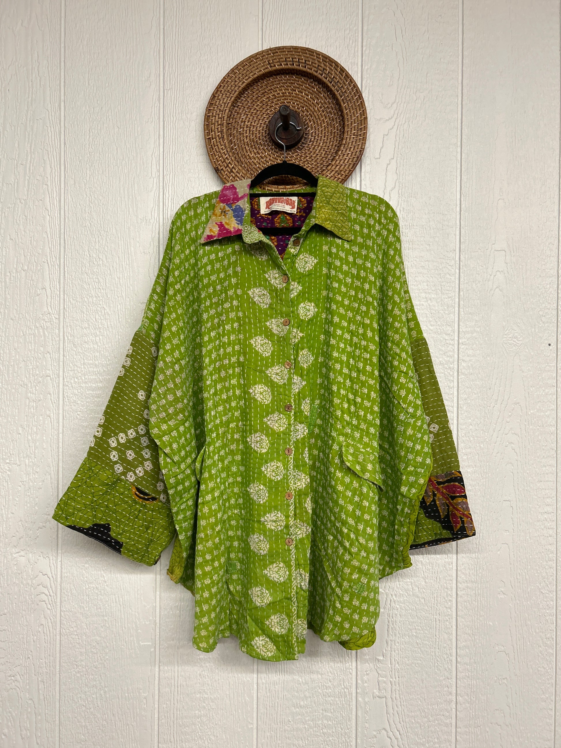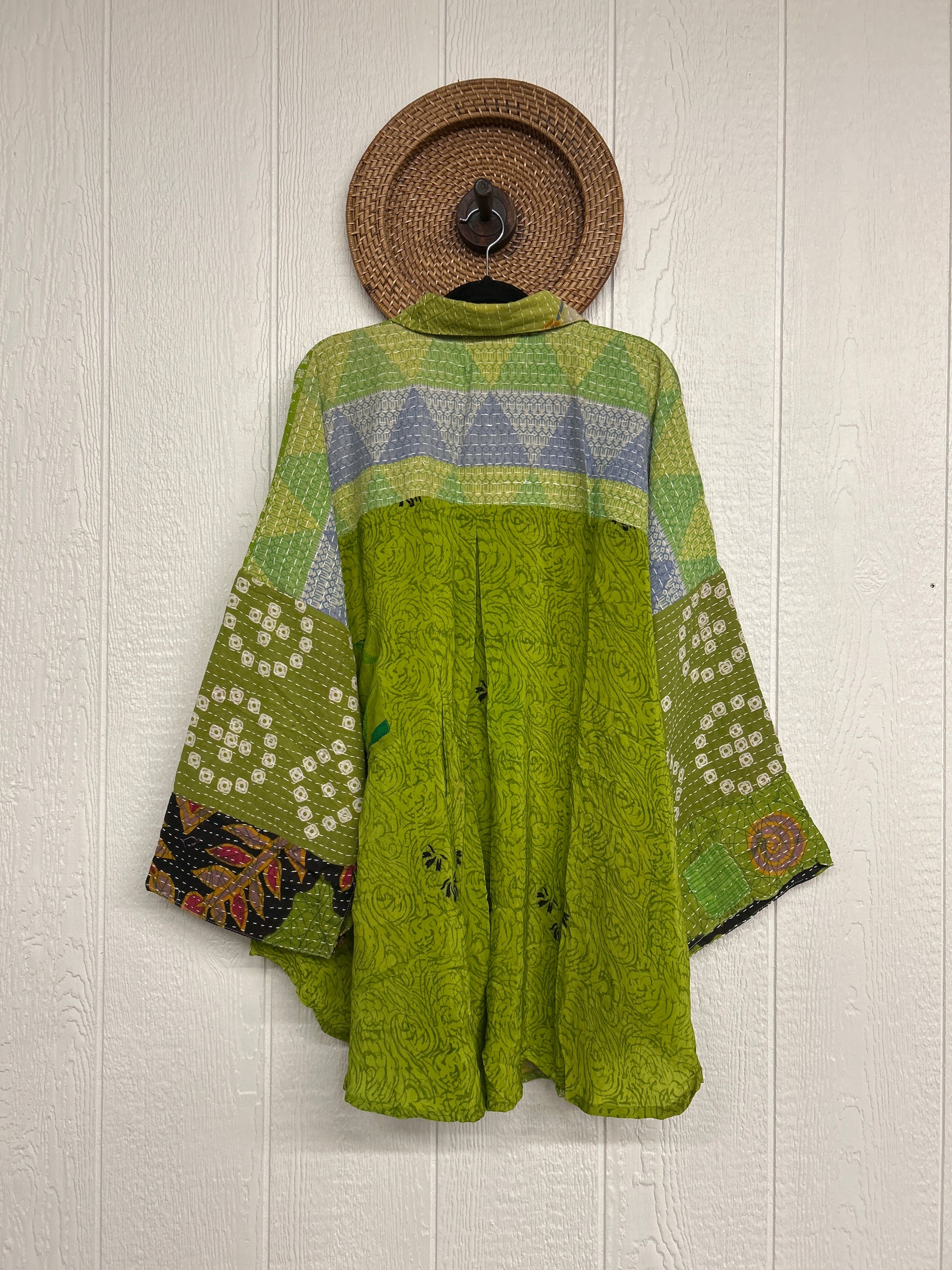 Made from our vintage cotton embroidered sari this billowy dream features a crepe panel in the back, functional buttons, two deep pockets in the front and a curved bottom.