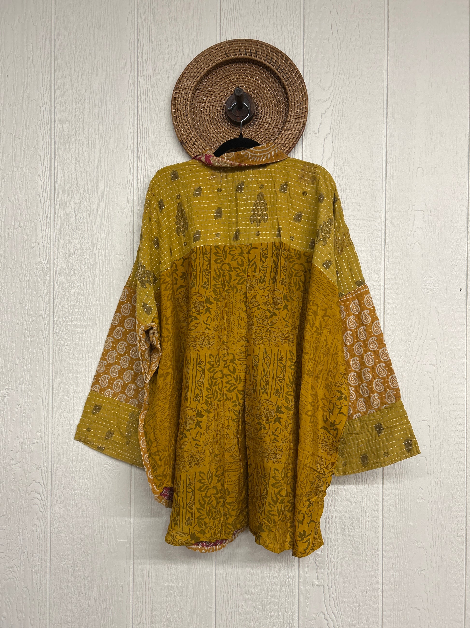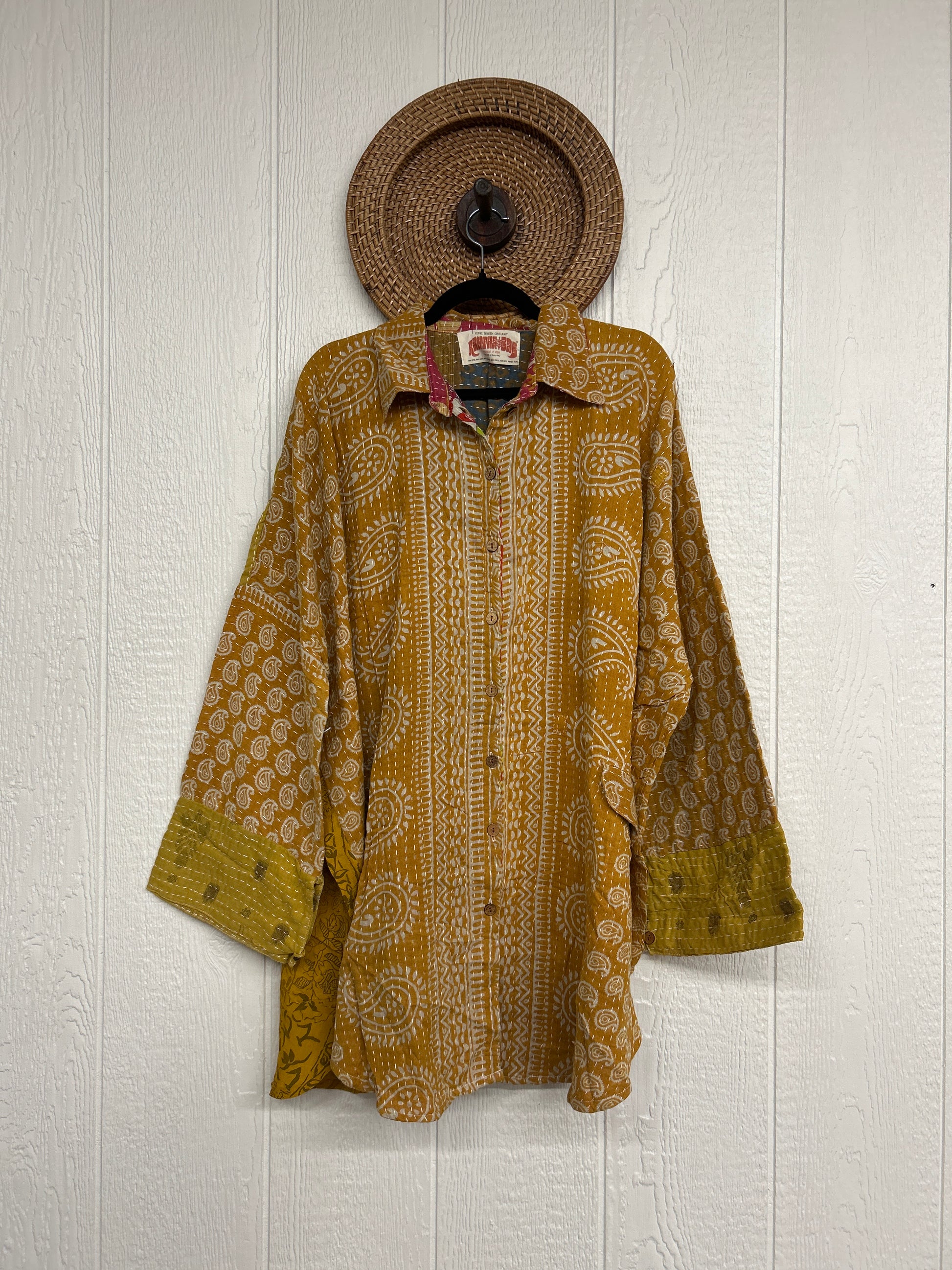 Disclosure: Our vintage styles have lived a full life before becoming the designs in our shop. Fabrics may have small threads or holes in the layers. Color inconsistency or small stains may be present.
