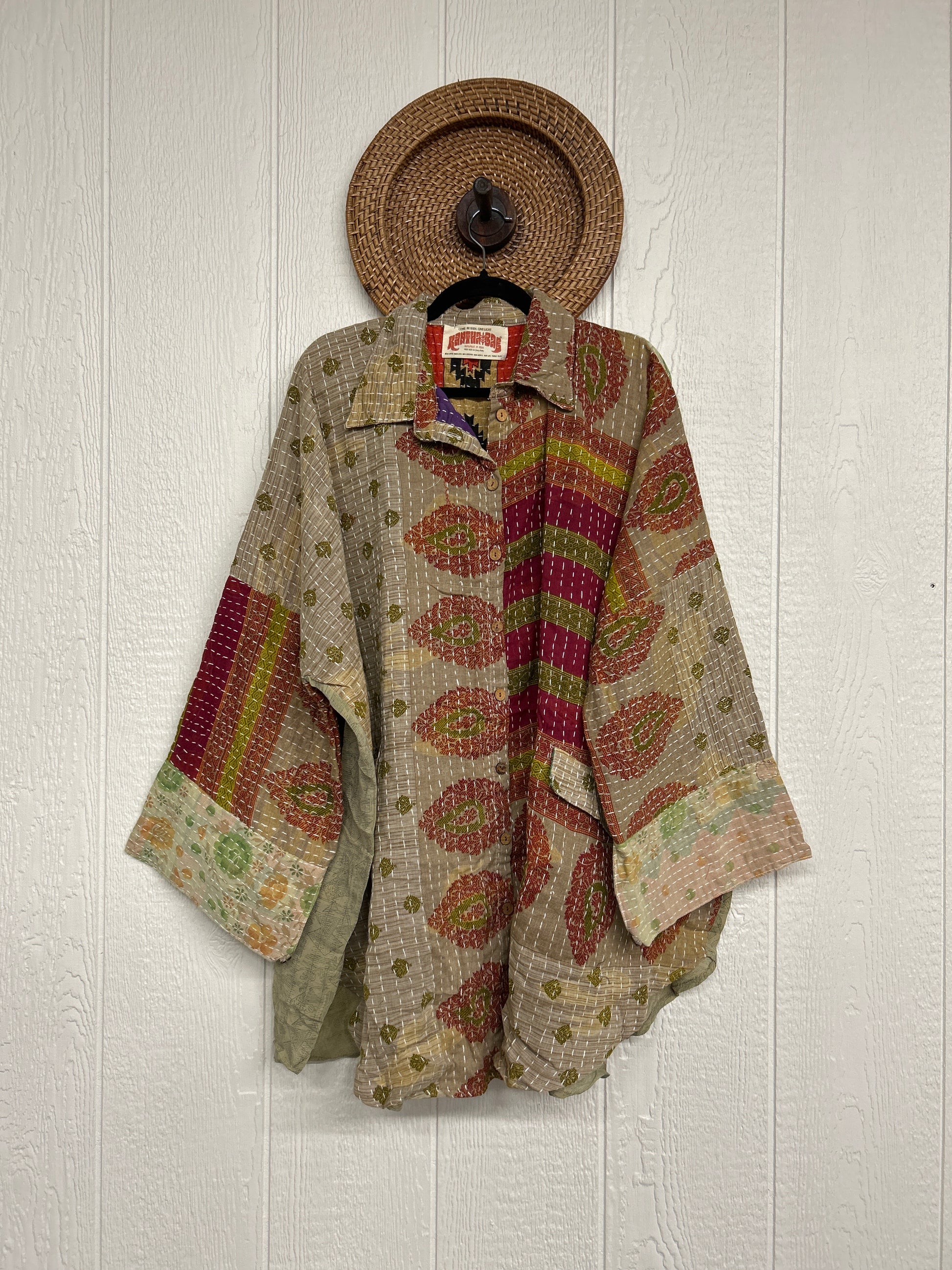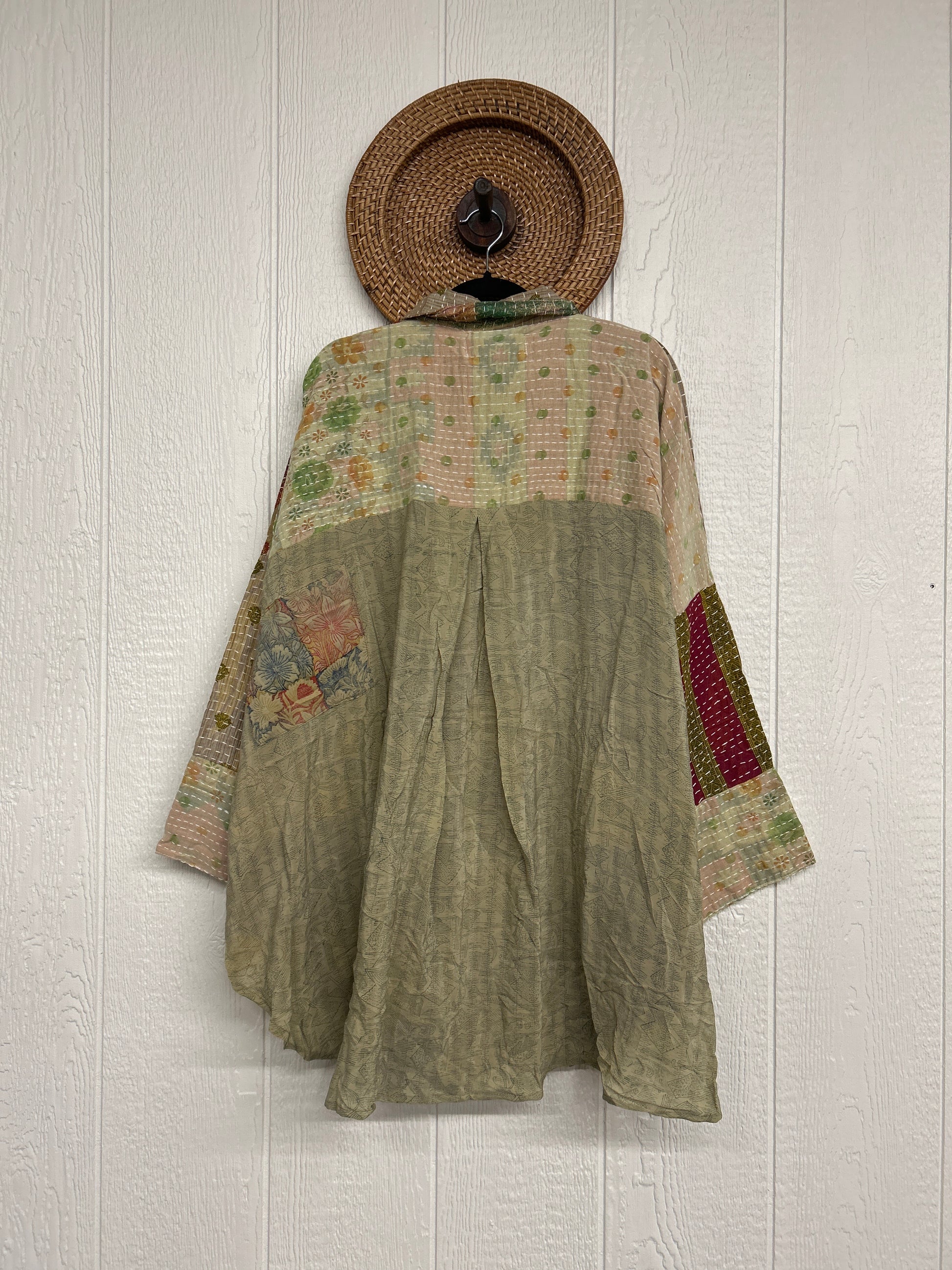 Made from our vintage cotton embroidered sari this billowy dream features a crepe panel in the back, functional buttons, two deep pockets in the front and a curved bottom.