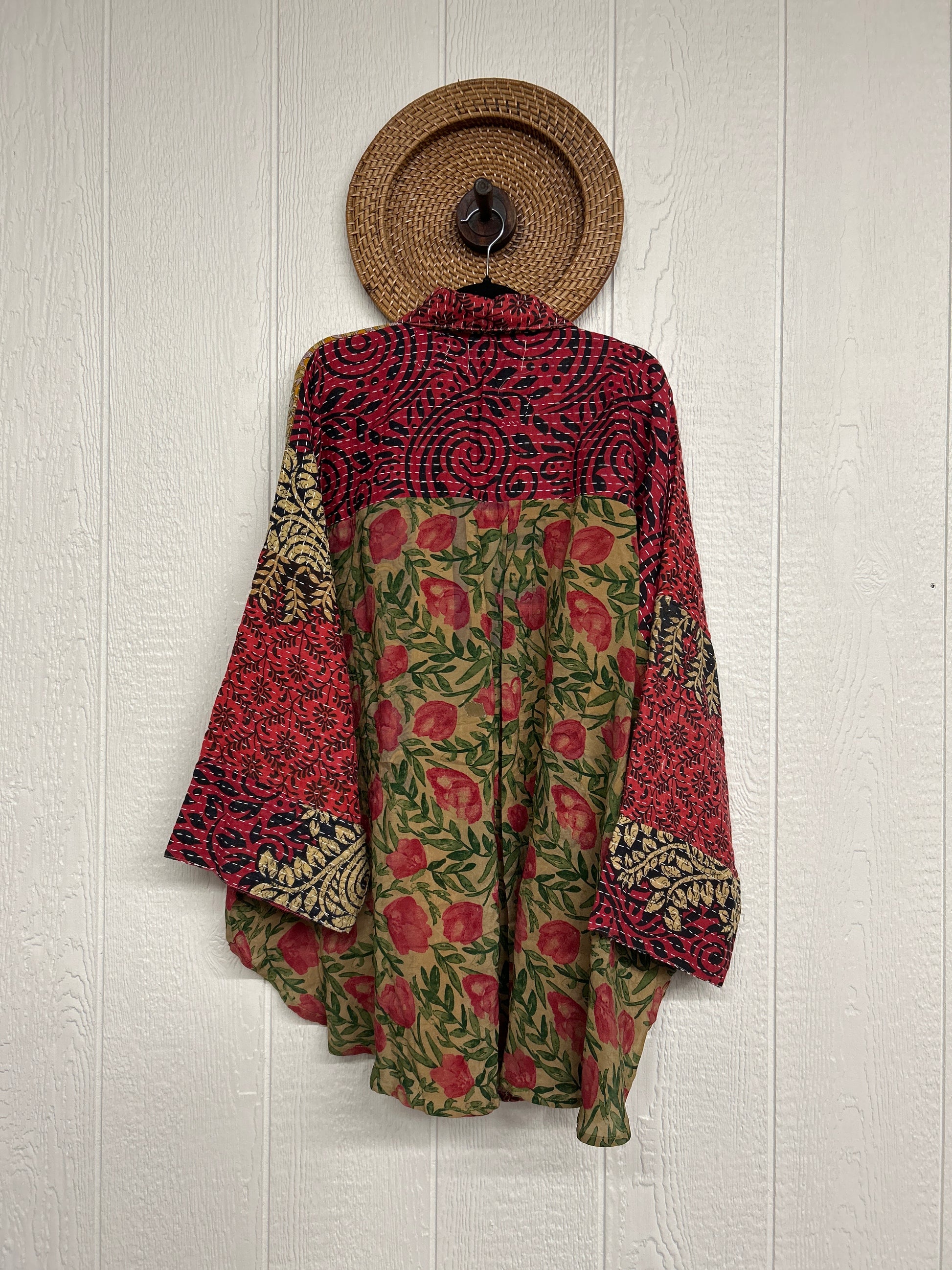 Made from our vintage cotton embroidered sari this billowy dream features a crepe panel in the back, functional buttons, two deep pockets in the front and a curved bottom.
