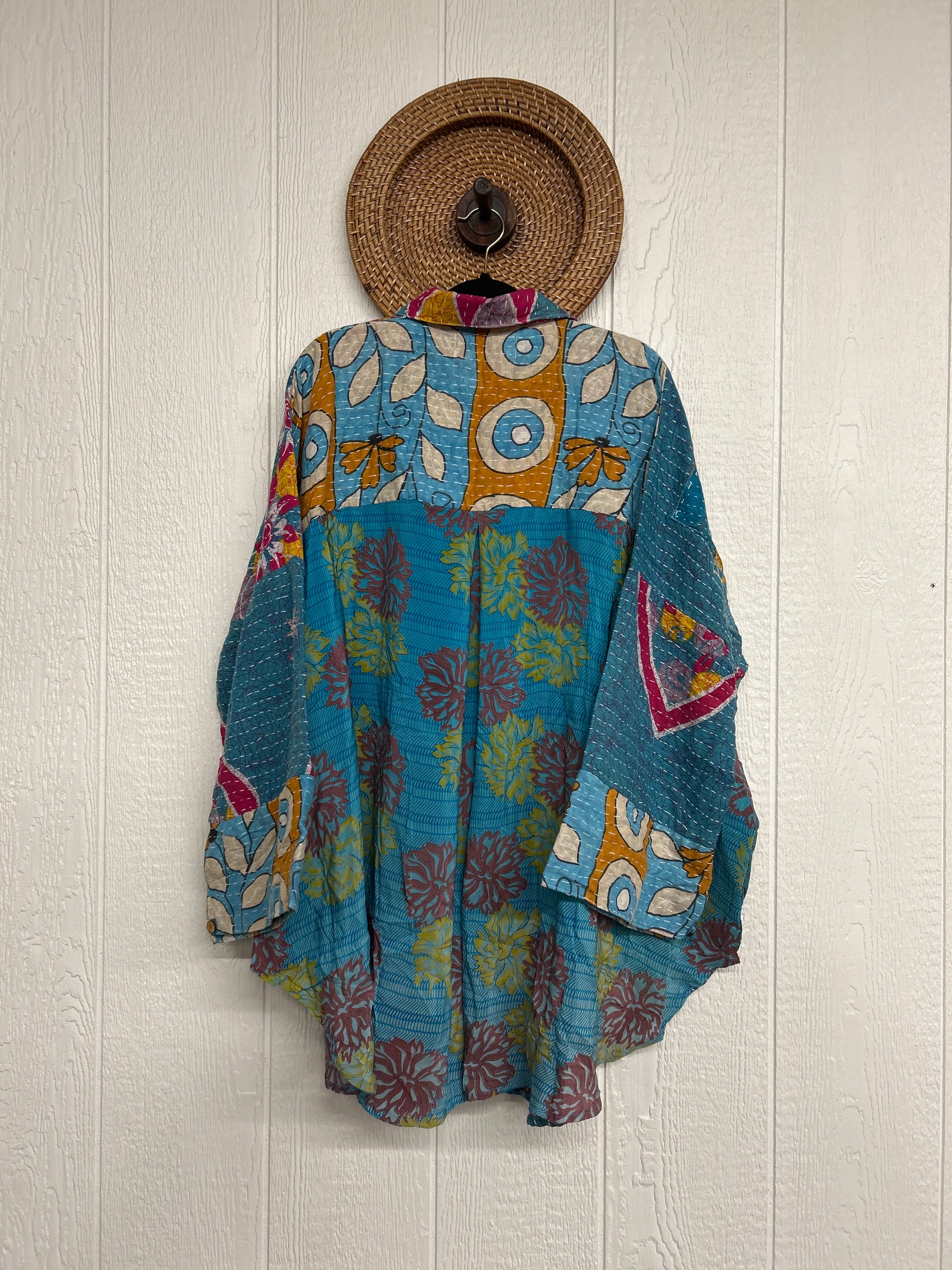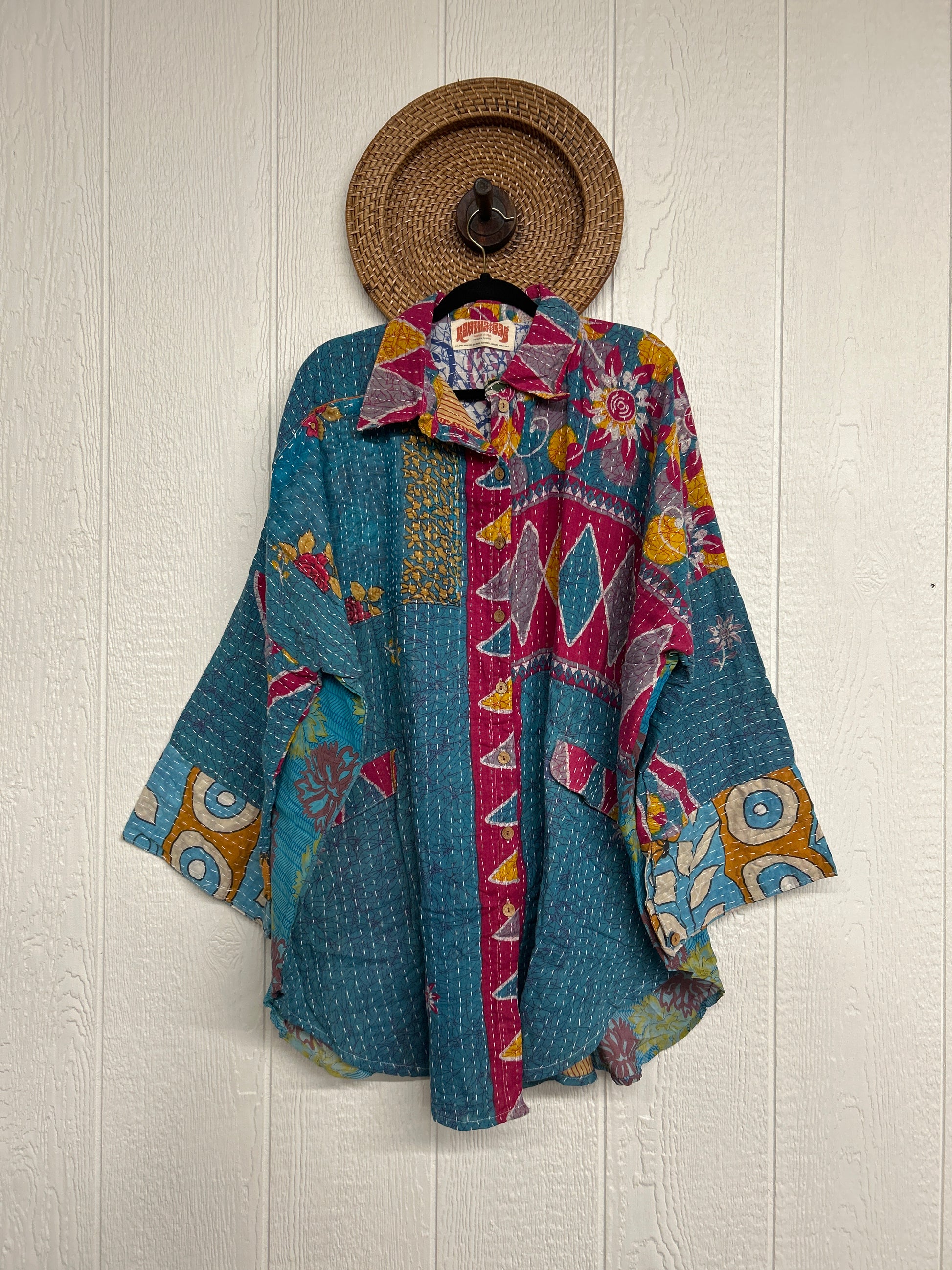 Made from our vintage cotton embroidered sari this billowy dream features a crepe panel in the back, functional buttons, two deep pockets in the front and a curved bottom.