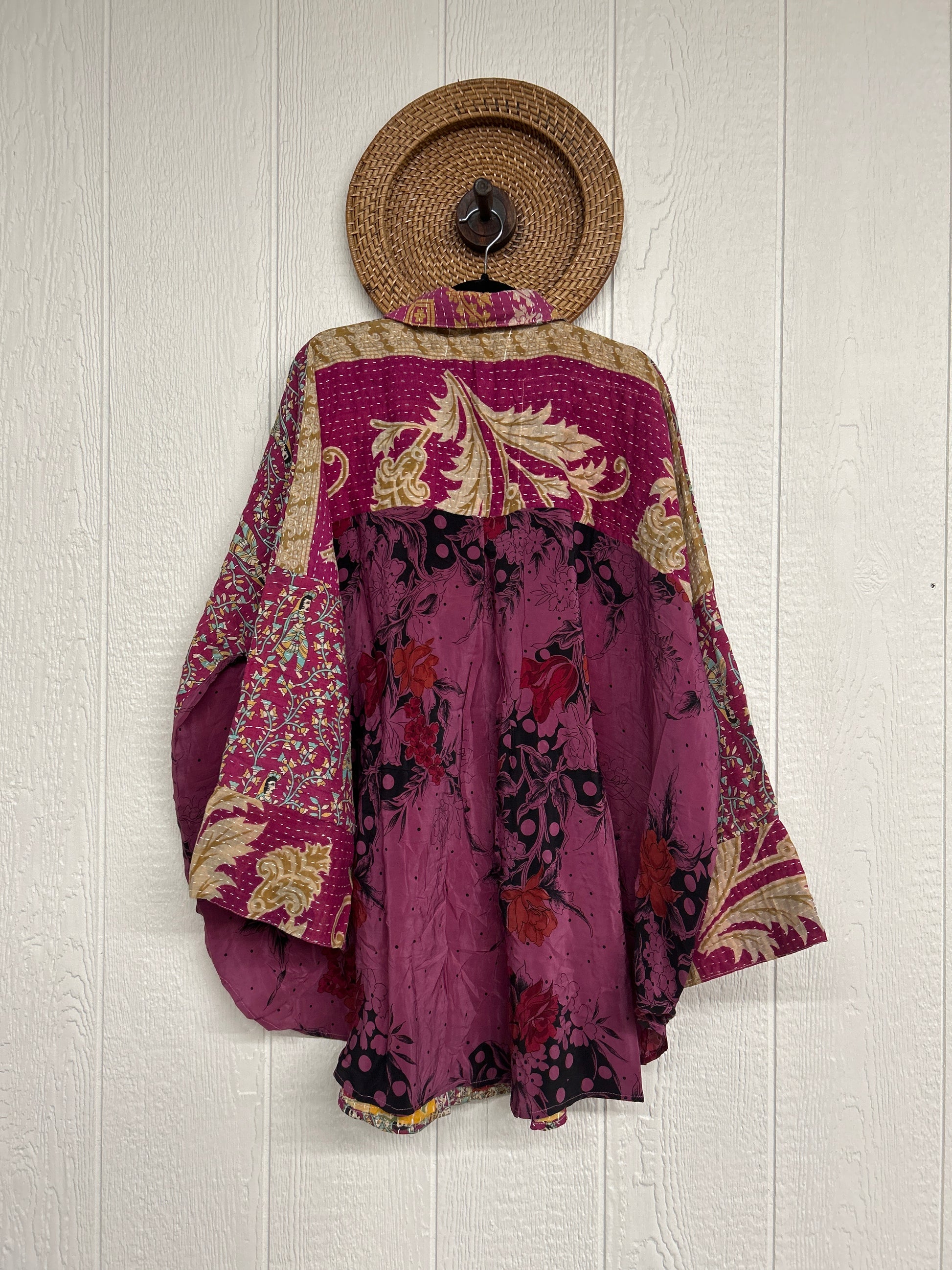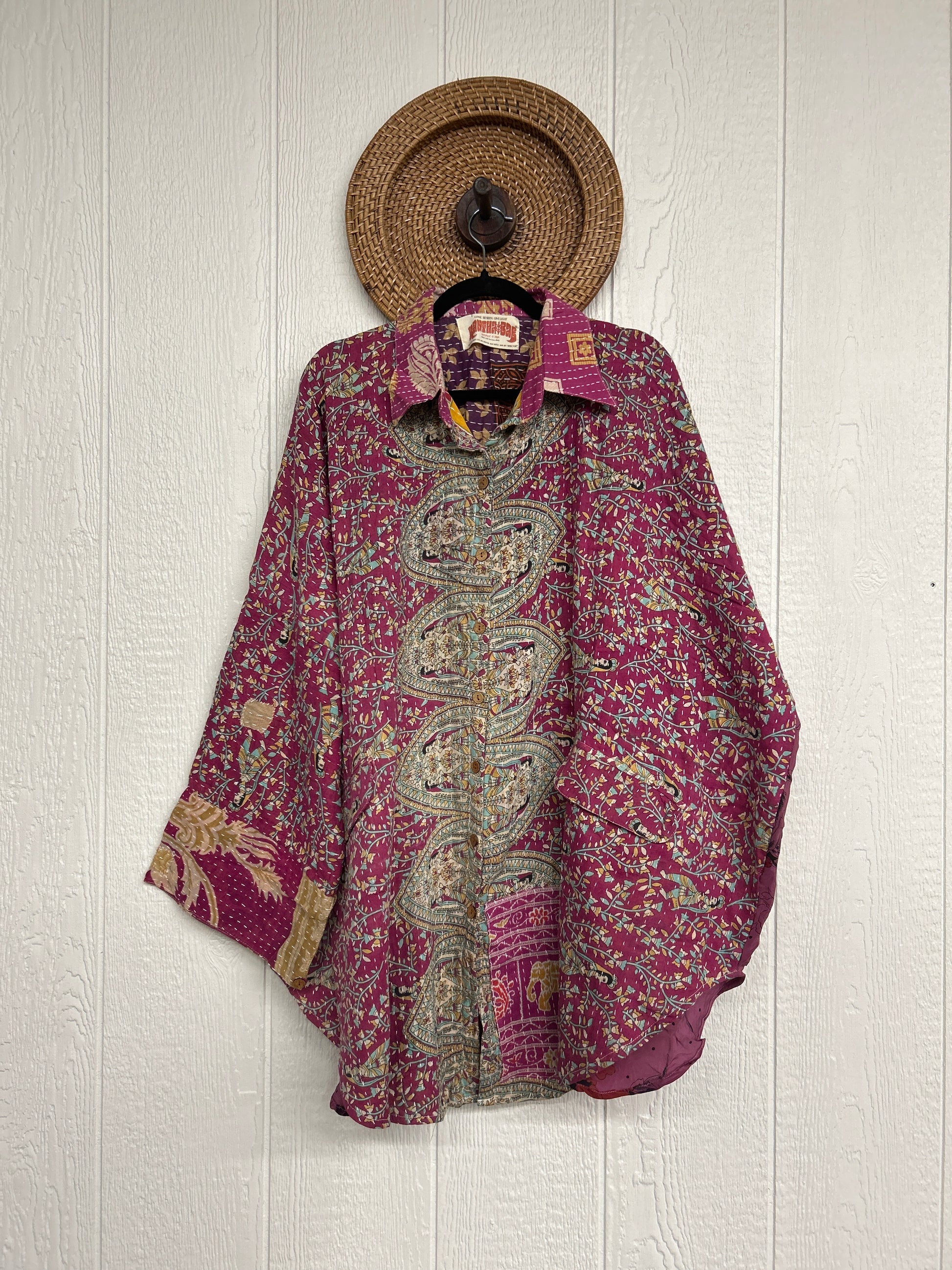 Made from our vintage cotton embroidered sari this billowy dream features a crepe panel in the back, functional buttons, two deep pockets in the front and a curved bottom.