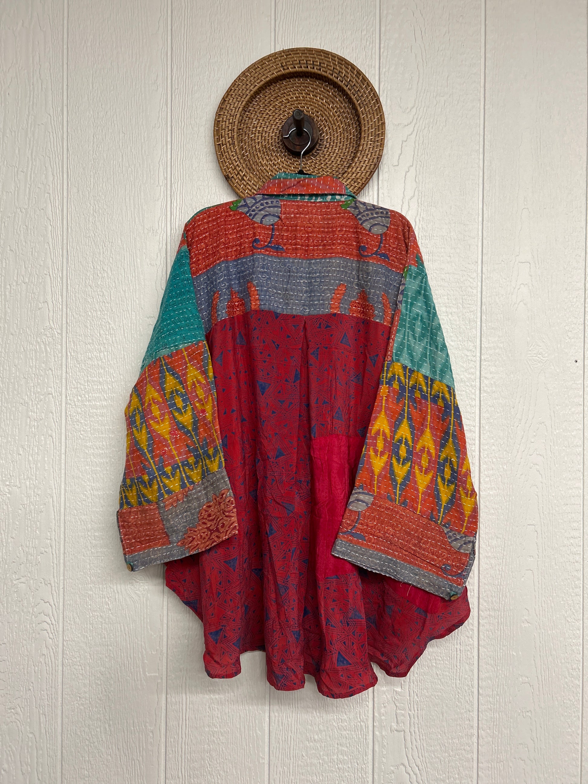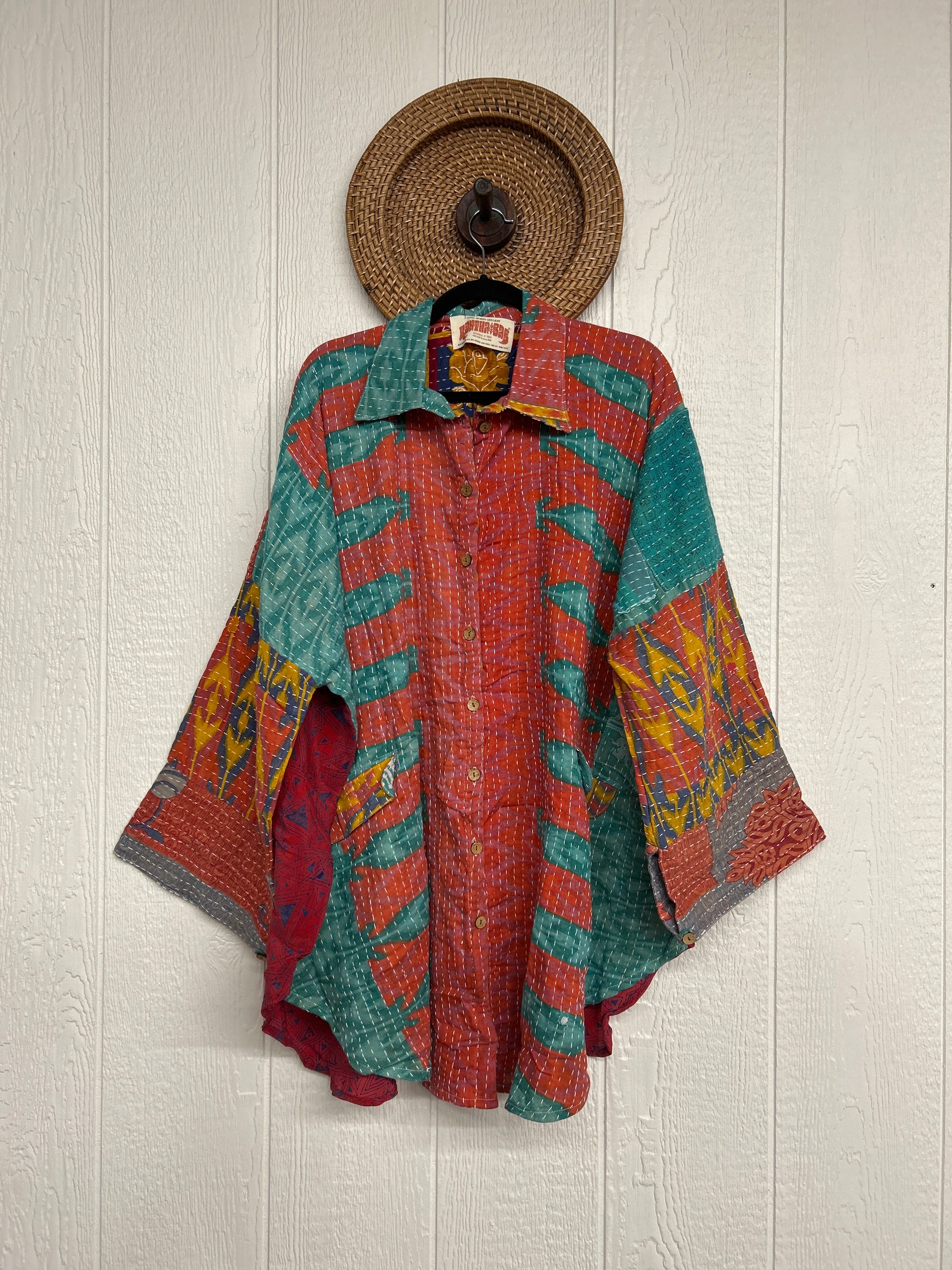 Made from our vintage cotton embroidered sari this billowy dream features a crepe panel in the back, functional buttons, two deep pockets in the front and a curved bottom.
