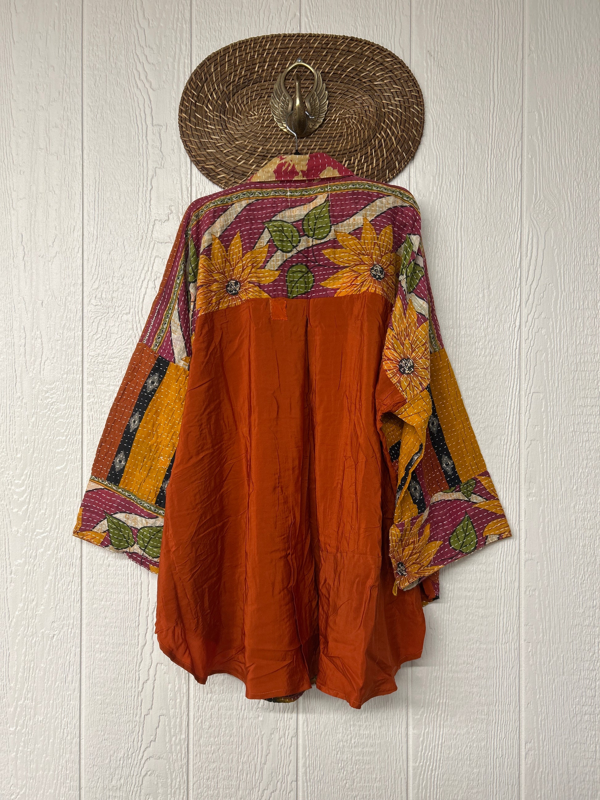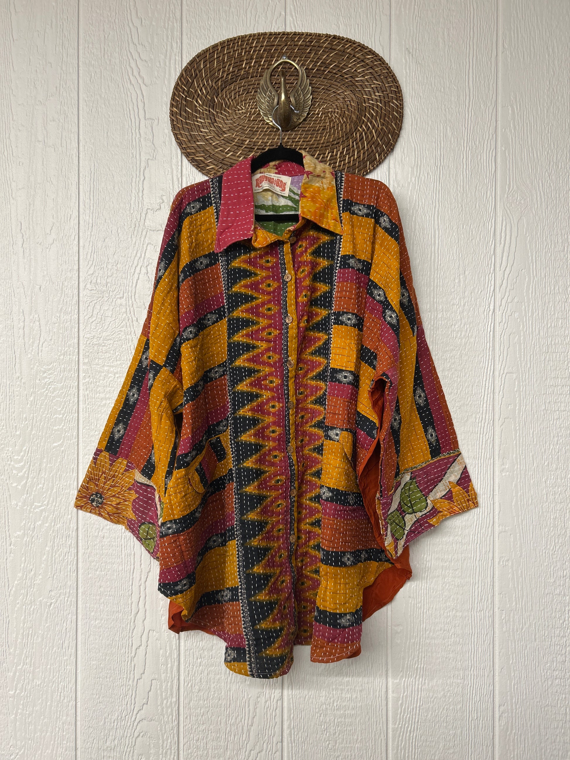 Disclosure: Our vintage styles have lived a full life before becoming the designs in our shop. Fabrics may have small threads or holes in the layers. Color inconsistency or small stains may be present.