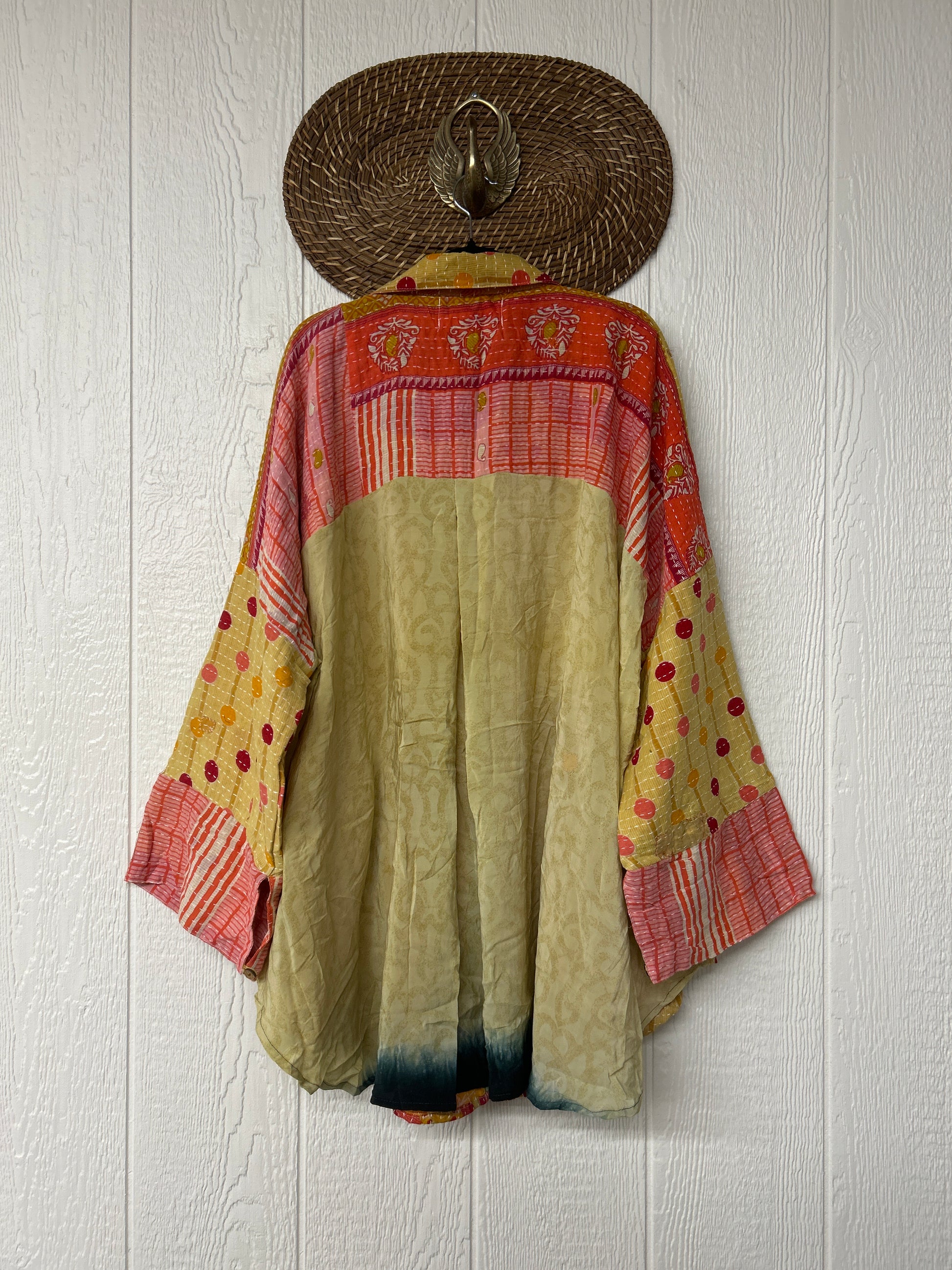 Made from our vintage cotton embroidered sari this billowy dream features a crepe panel in the back, functional buttons, two deep pockets in the front and a curved bottom.