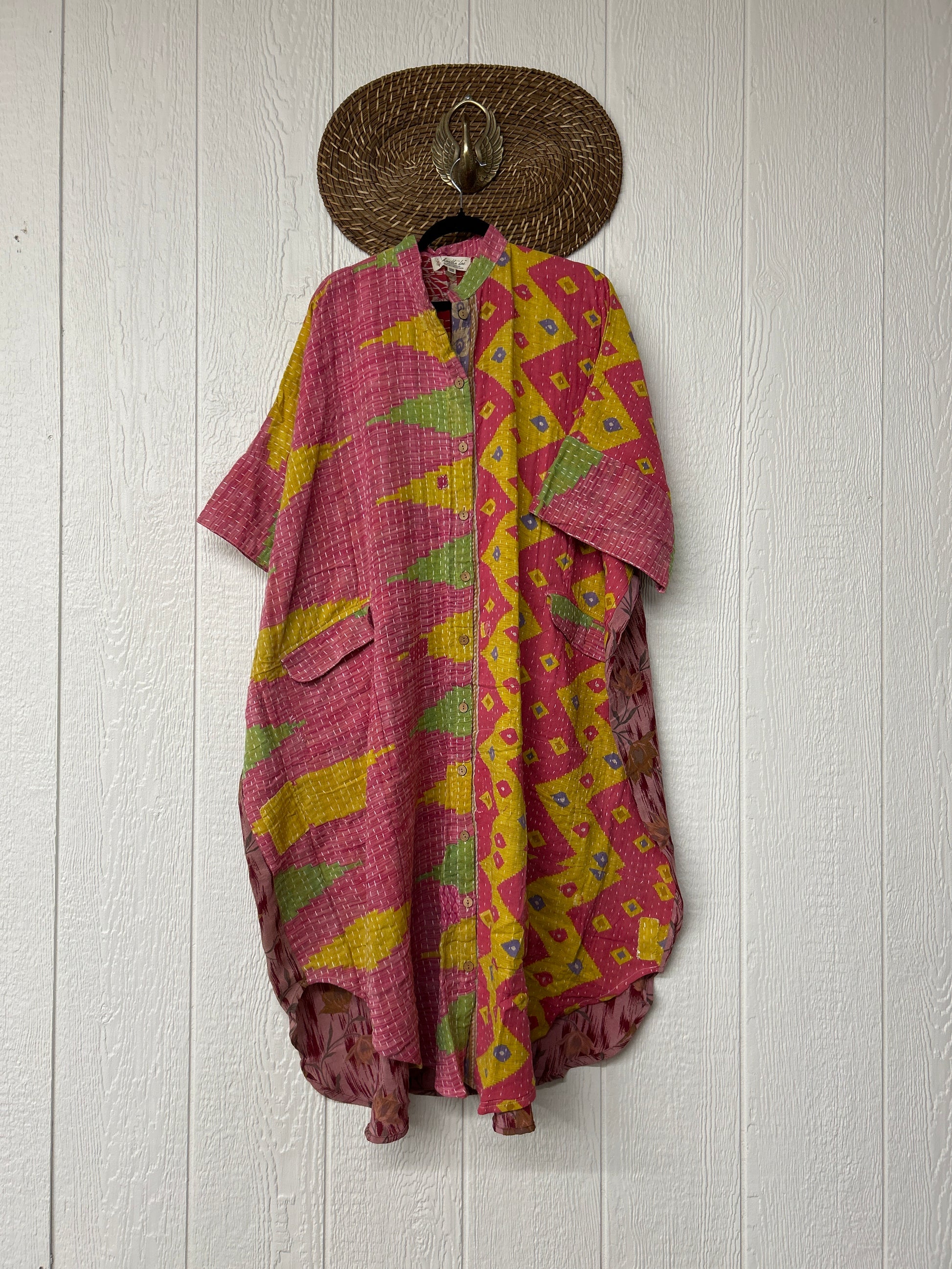 Made from our vintage cotton embroidered sari this billowy dream features a crepe panel in the back, functional buttons, two deep pockets in the front and a curved bottom.