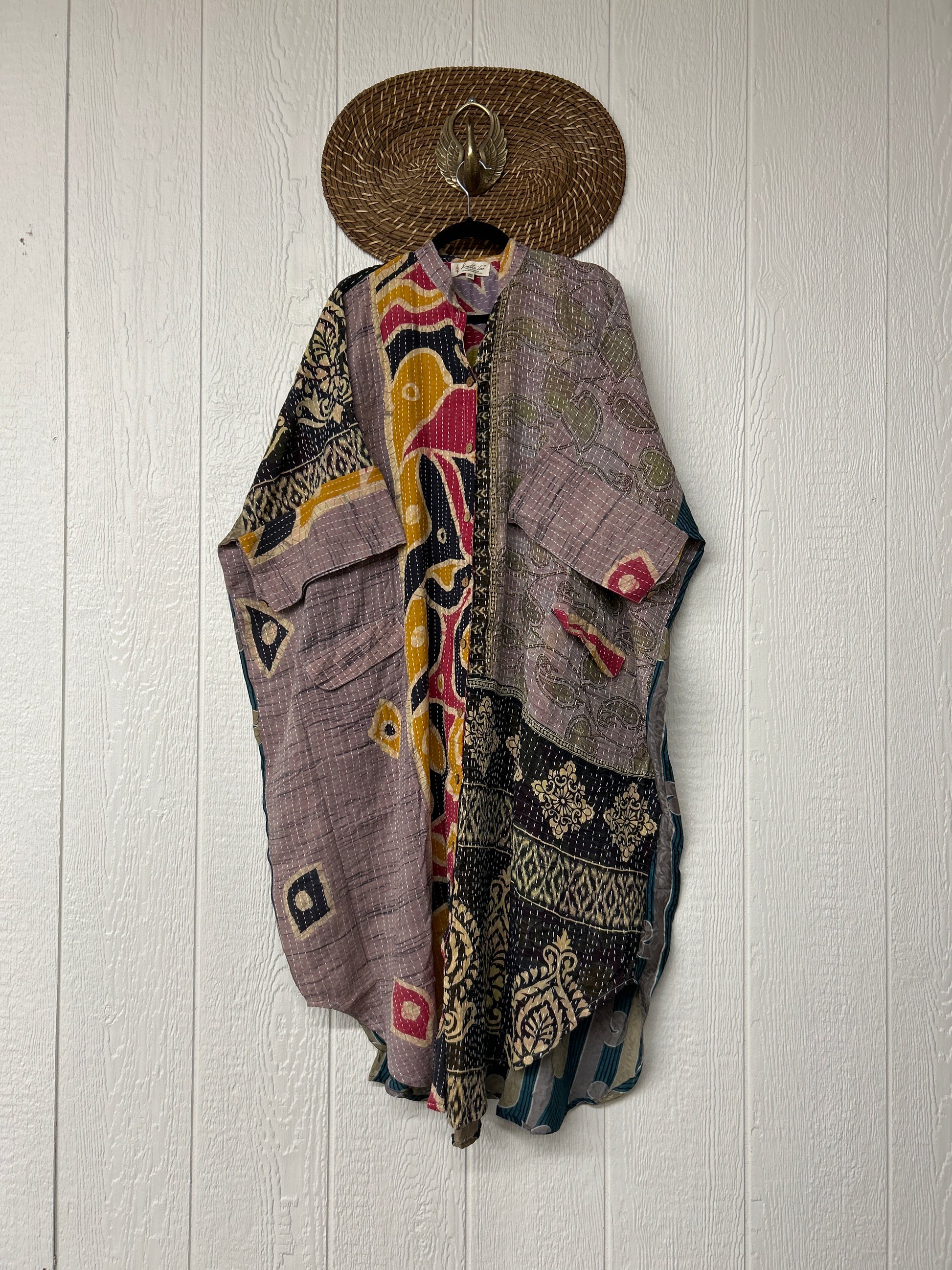 Made from our vintage cotton embroidered sari this billowy dream features a crepe panel in the back, functional buttons, two deep pockets in the front and a curved bottom.