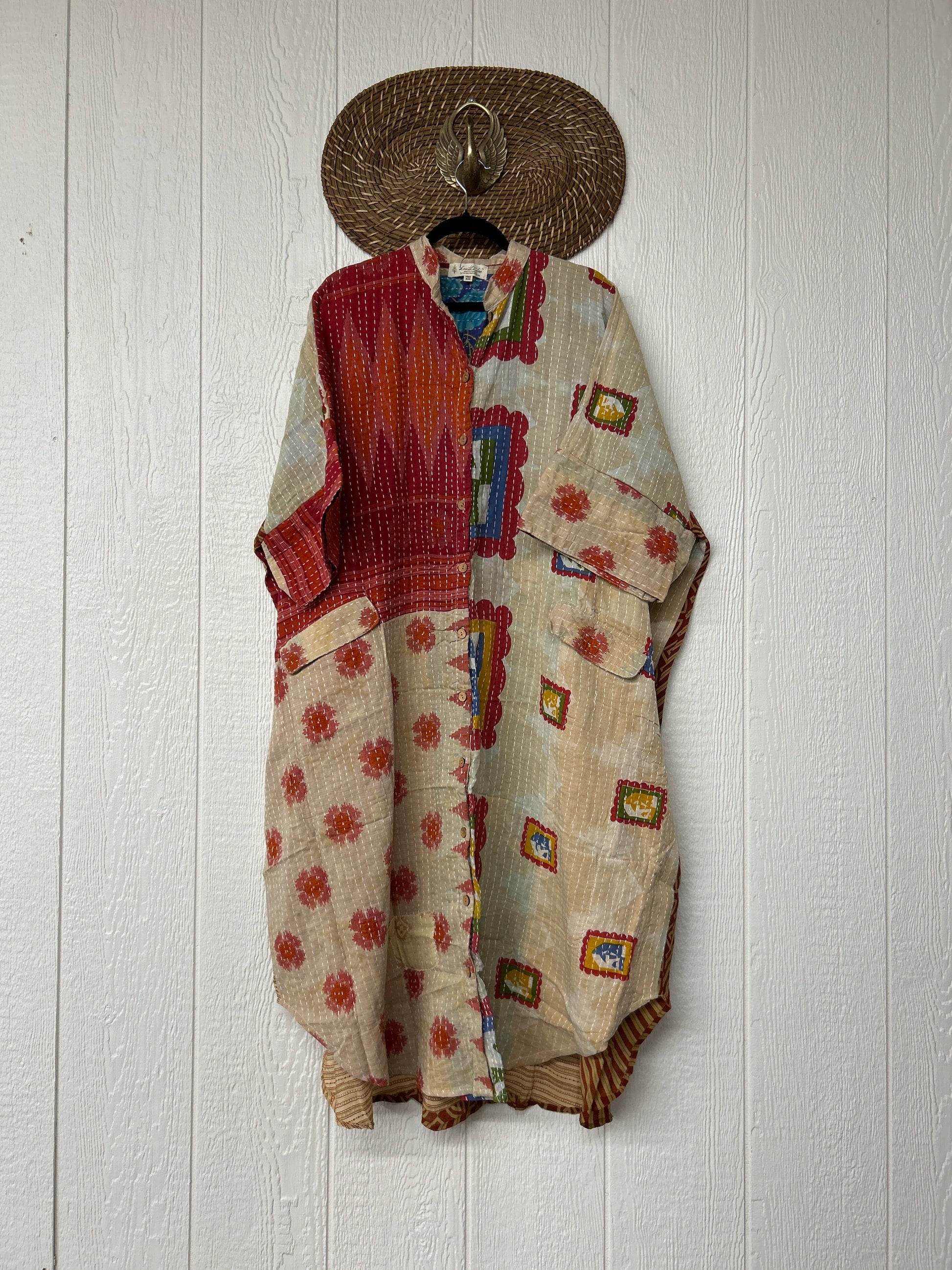 Made from our vintage cotton embroidered sari this billowy dream features a crepe panel in the back, functional buttons, two deep pockets in the front and a curved bottom.