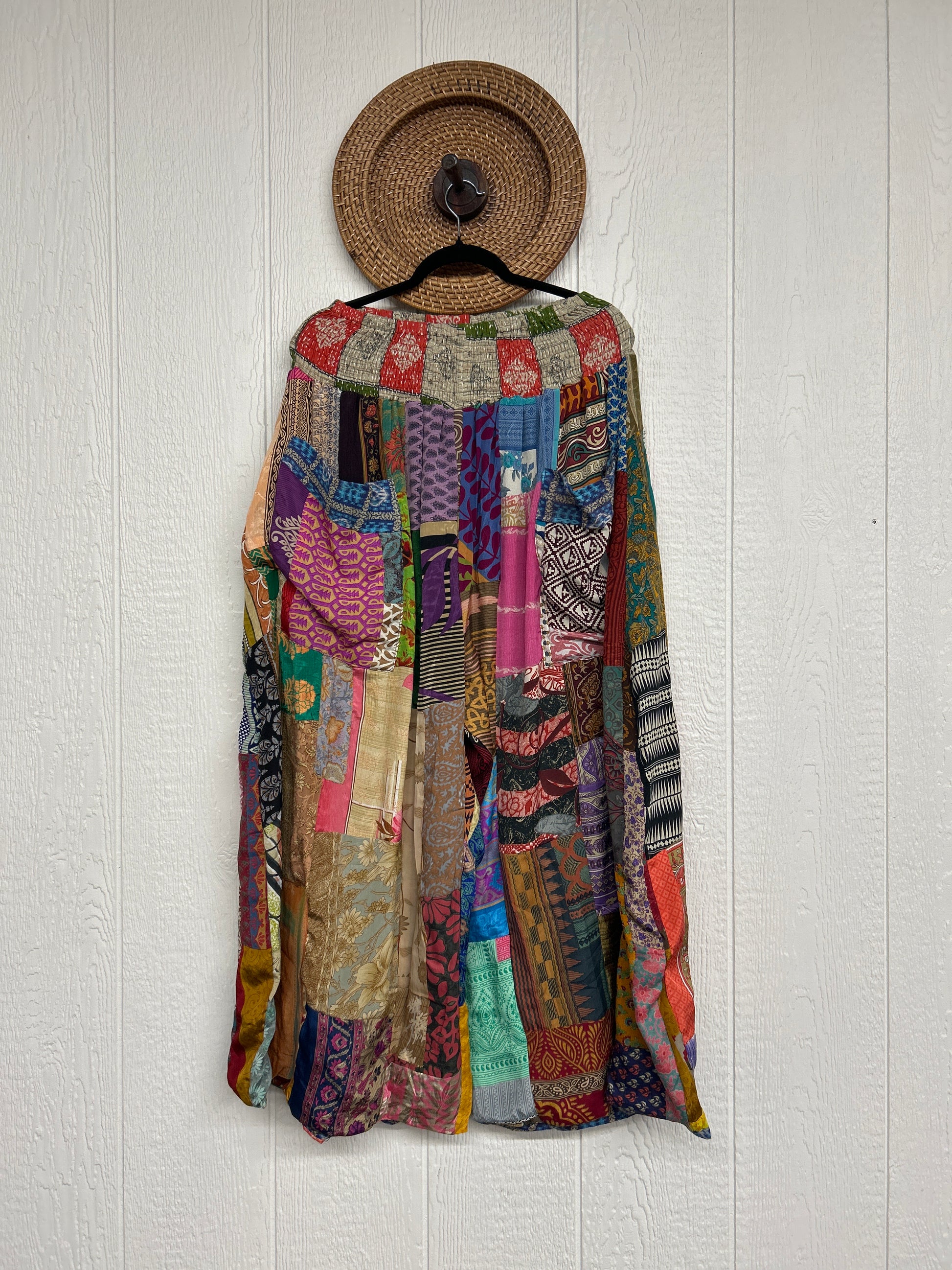Disclosure: Our vintage styles have lived a full life before becoming the designs in our shop. Fabrics may have small threads or holes in the layers. Color inconsistency or small stains may be present. The saris are sewn together and extend the life of each design. Imperfections should be celebrated.