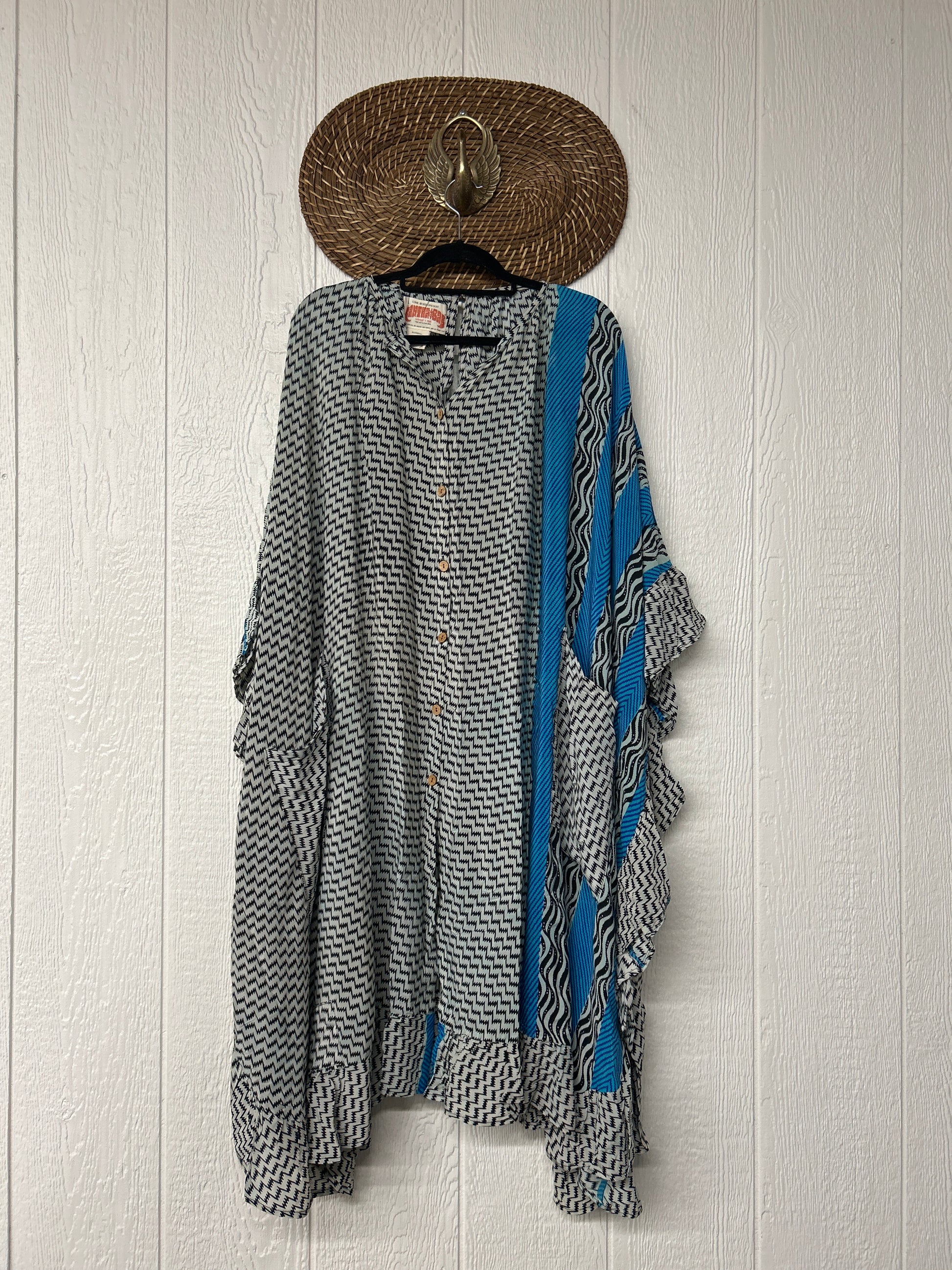 This dreamy muu is crafted from our ultra lux vintage crepe sari and features a button down placket and slouchy exterior pockets. Ruffles around the hem make this the ultimate rockstar layer that you can wear closed as a muu or open as a kimono!!