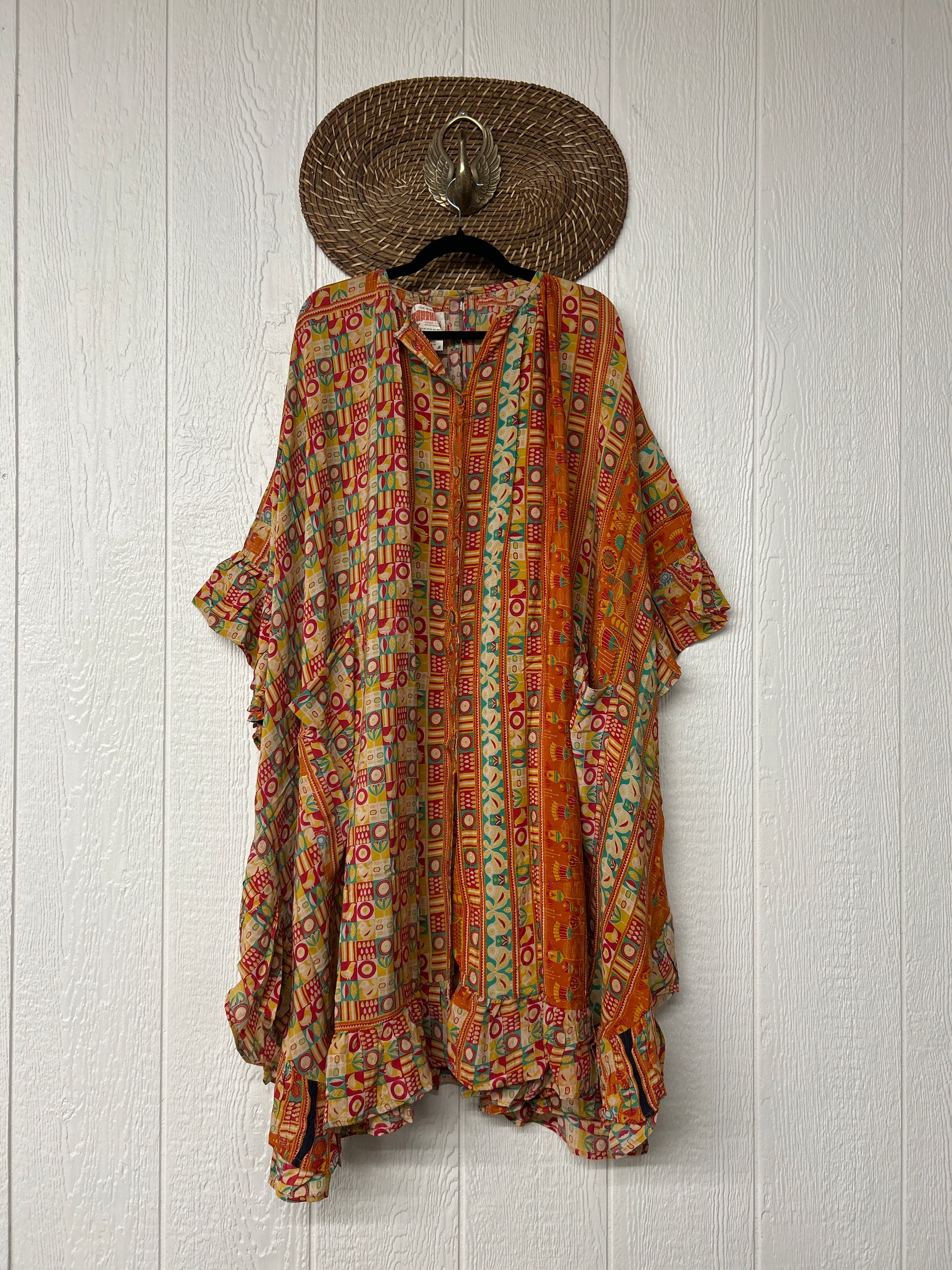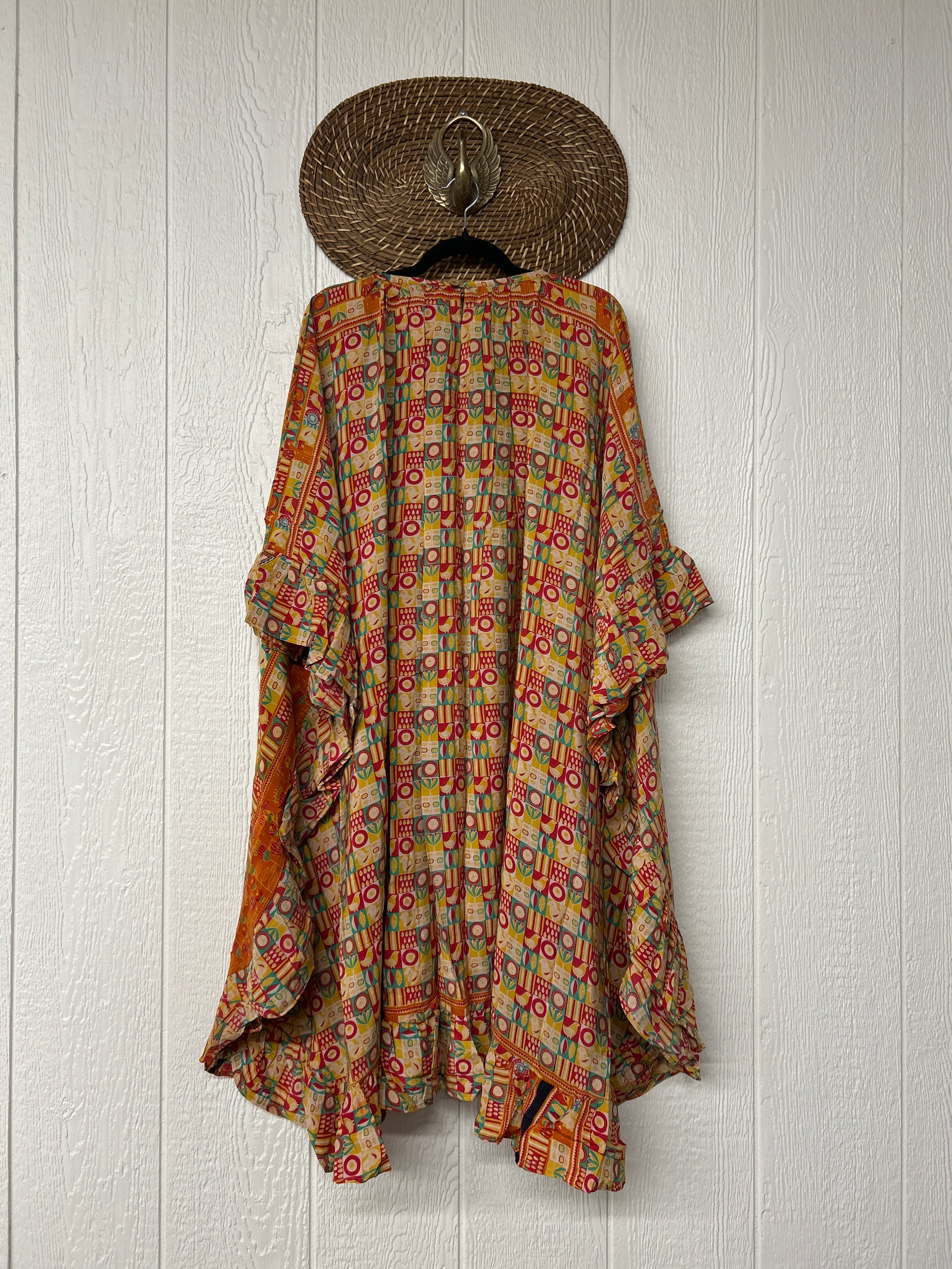This dreamy muu is crafted from our ultra lux vintage crepe sari and features a button down placket and slouchy exterior pockets. Ruffles around the hem make this the ultimate rockstar layer that you can wear closed as a muu or open as a kimono!!