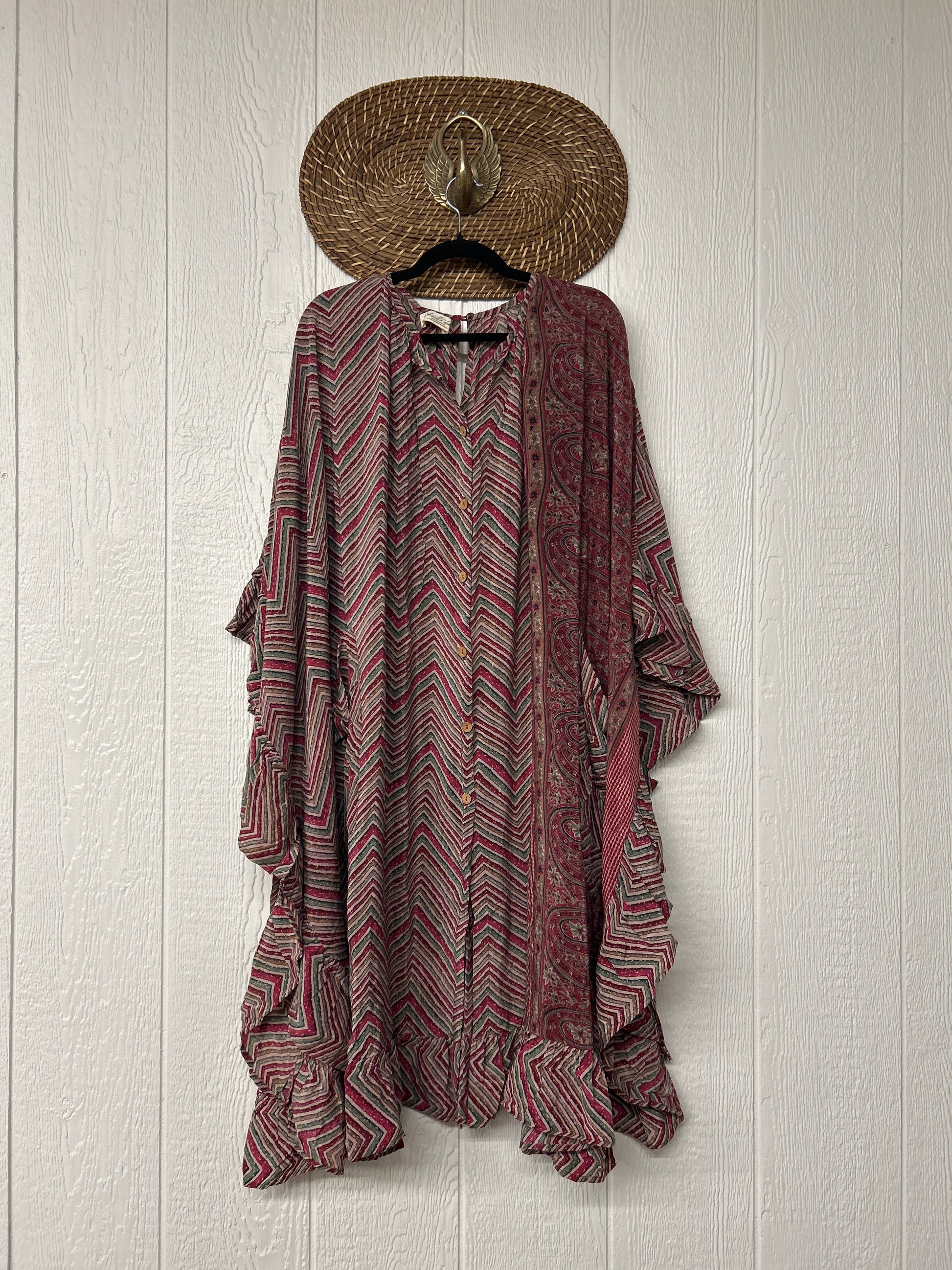 This dreamy muu is crafted from our ultra lux vintage crepe sari and features a button down placket and slouchy exterior pockets. Ruffles around the hem make this the ultimate rockstar layer that you can wear closed as a muu or open as a kimono!!