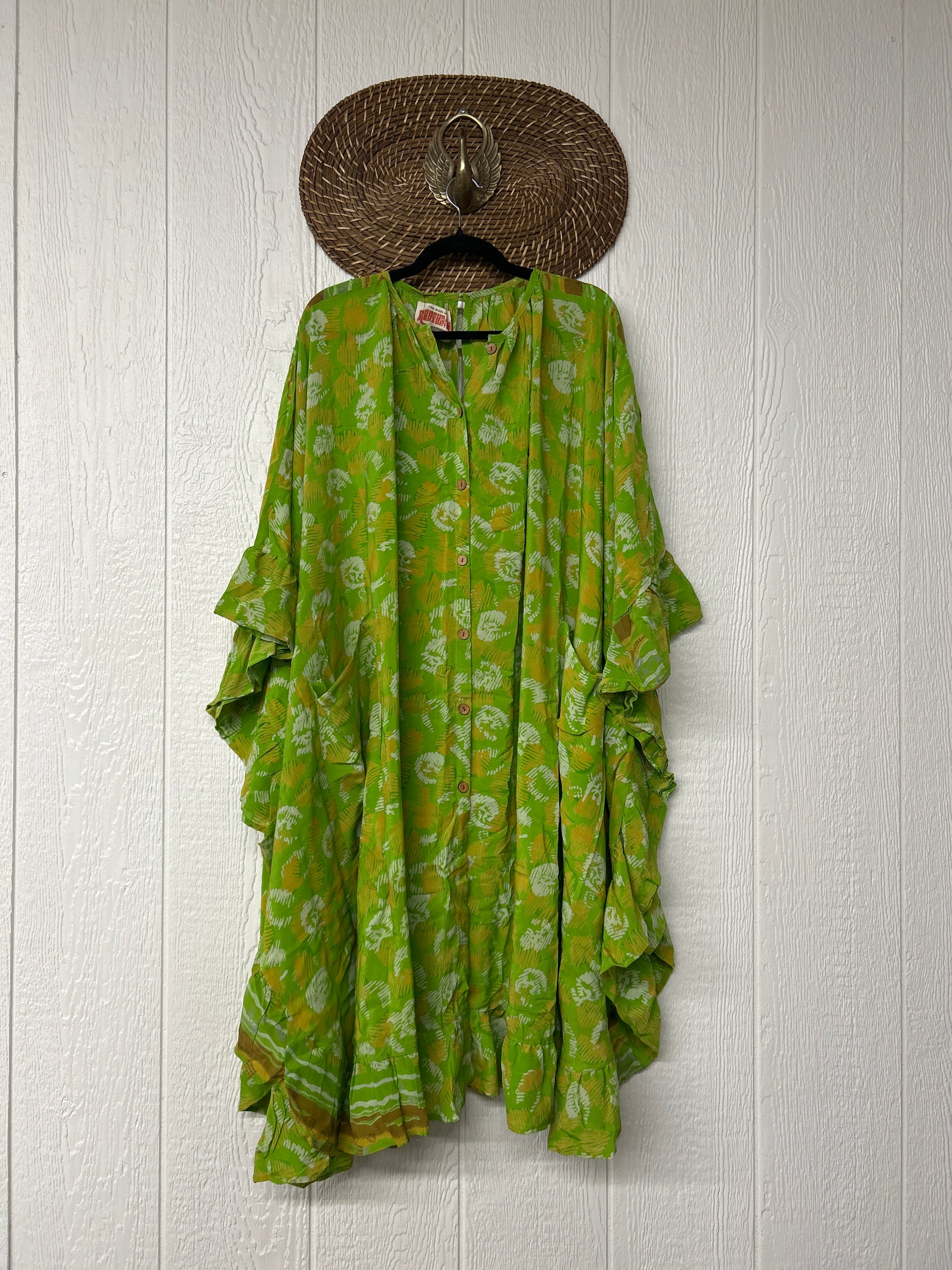 This dreamy muu is crafted from our ultra lux vintage crepe sari and features a button down placket and slouchy exterior pockets. Ruffles around the hem make this the ultimate rockstar layer that you can wear closed as a muu or open as a kimono!!