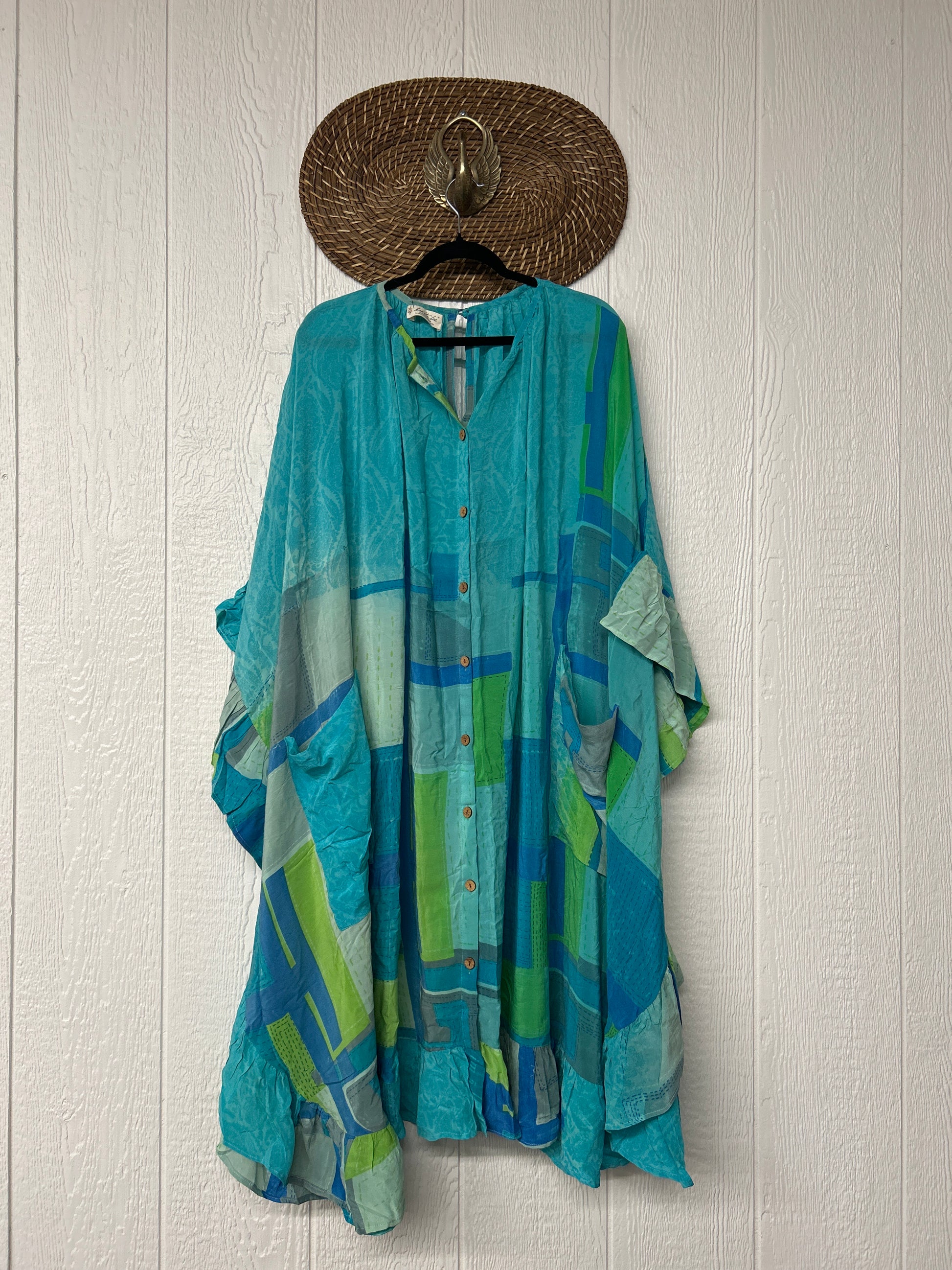 This dreamy muu is crafted from our ultra lux vintage crepe sari and features a button down placket and slouchy exterior pockets. Ruffles around the hem make this the ultimate rockstar layer that you can wear closed as a muu or open as a kimono!!