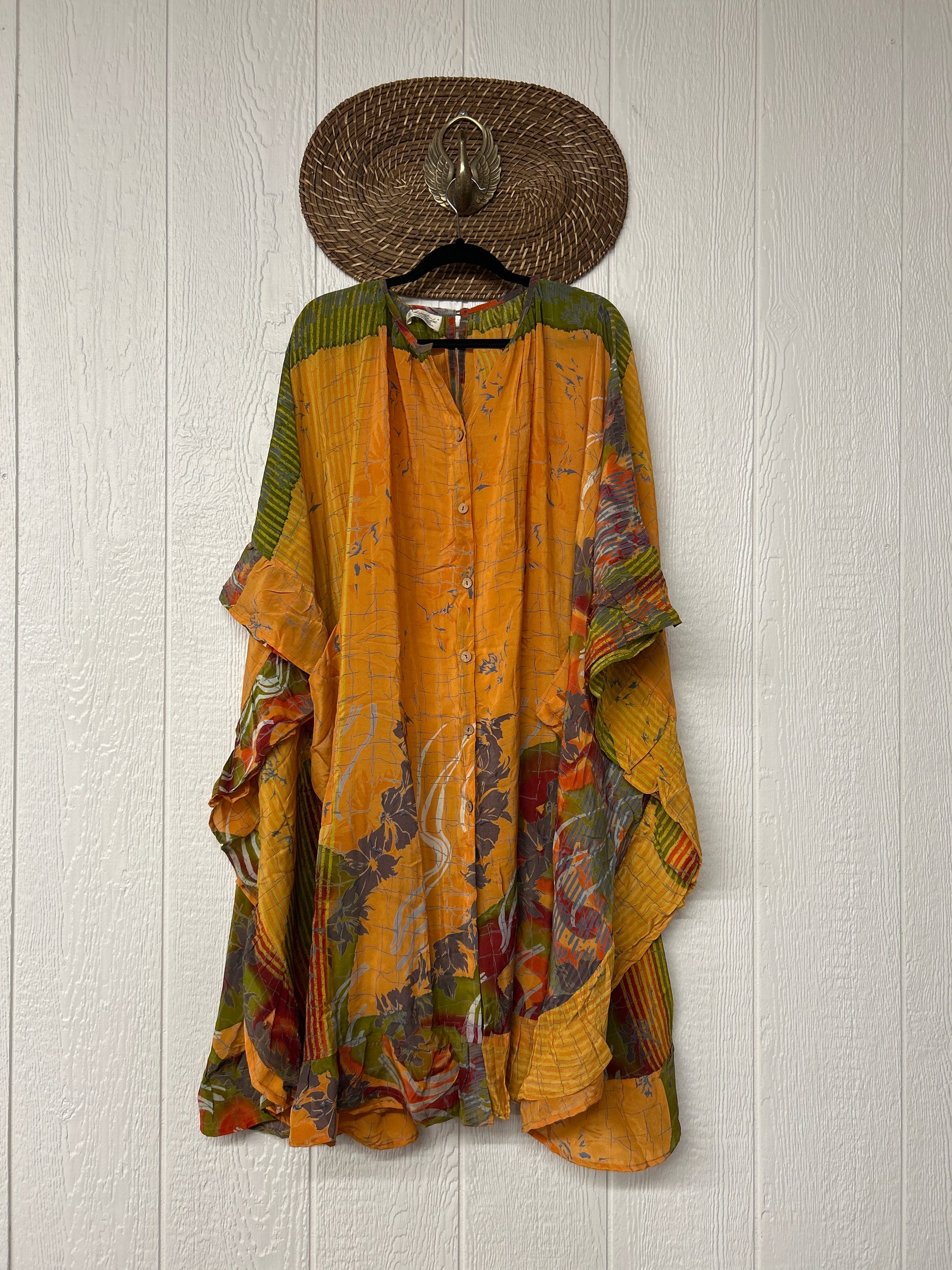 This dreamy muu is crafted from our ultra lux vintage crepe sari and features a button down placket and slouchy exterior pockets. Ruffles around the hem make this the ultimate rockstar layer that you can wear closed as a muu or open as a kimono!!