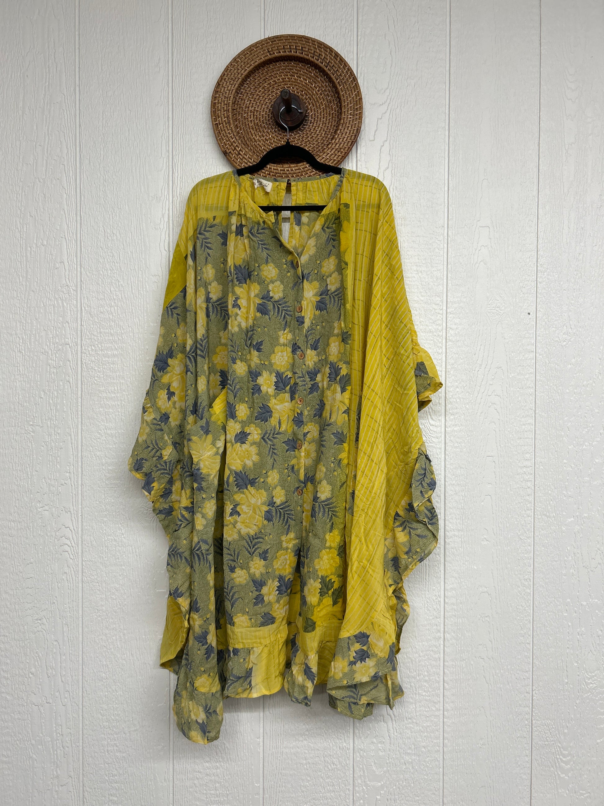 This dreamy muu is crafted from our ultra lux vintage crepe sari and features a button down placket and slouchy exterior pockets. Ruffles around the hem make this the ultimate rockstar layer that you can wear closed as a muu or open as a kimono!!