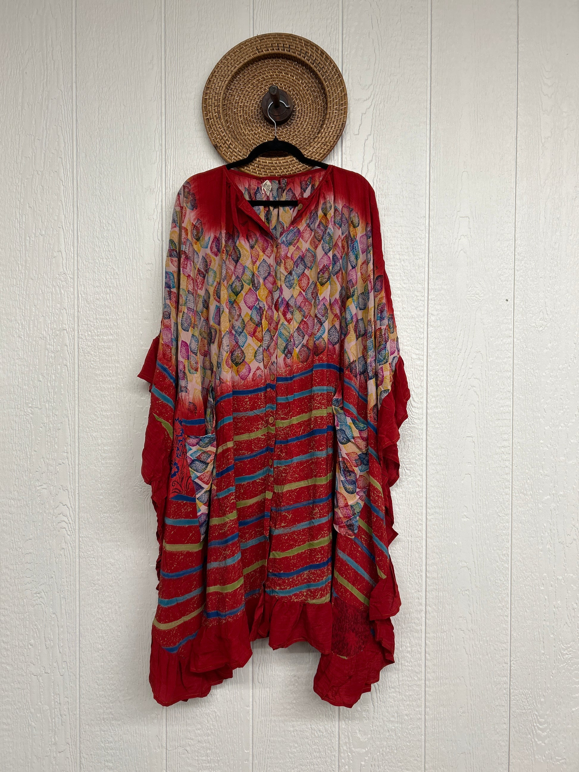 This dreamy muu is crafted from our ultra lux vintage crepe sari and features a button down placket and slouchy exterior pockets. Ruffles around the hem make this the ultimate rockstar layer that you can wear closed as a muu or open as a kimono!!