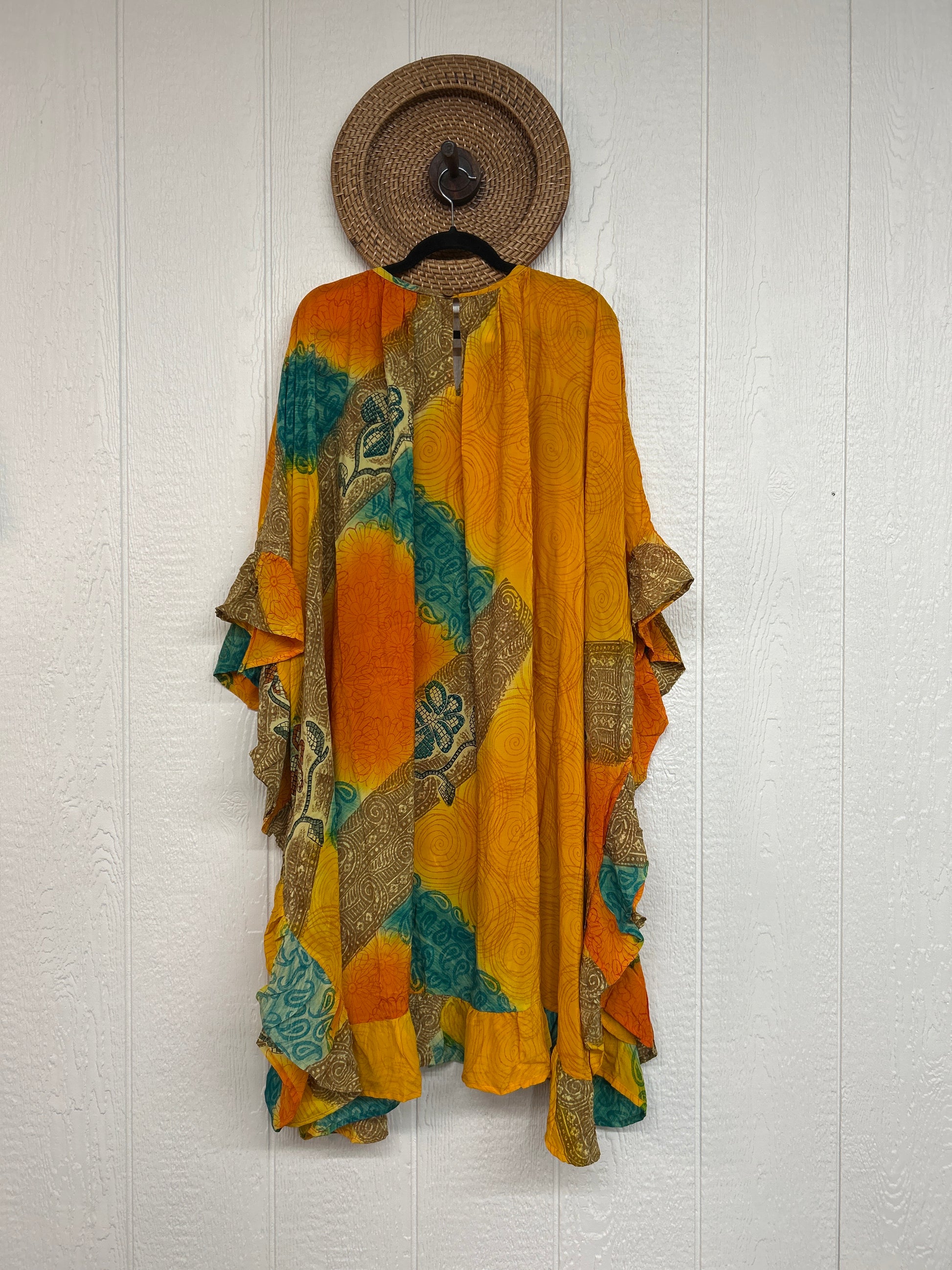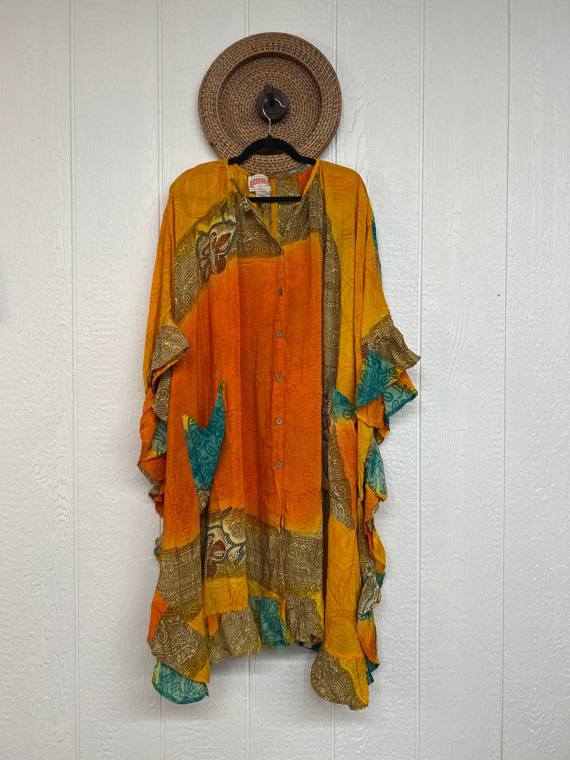 This dreamy muu is crafted from our ultra lux vintage crepe sari and features a button down placket and slouchy exterior pockets. Ruffles around the hem make this the ultimate rockstar layer that you can wear closed as a muu or open as a kimono!!