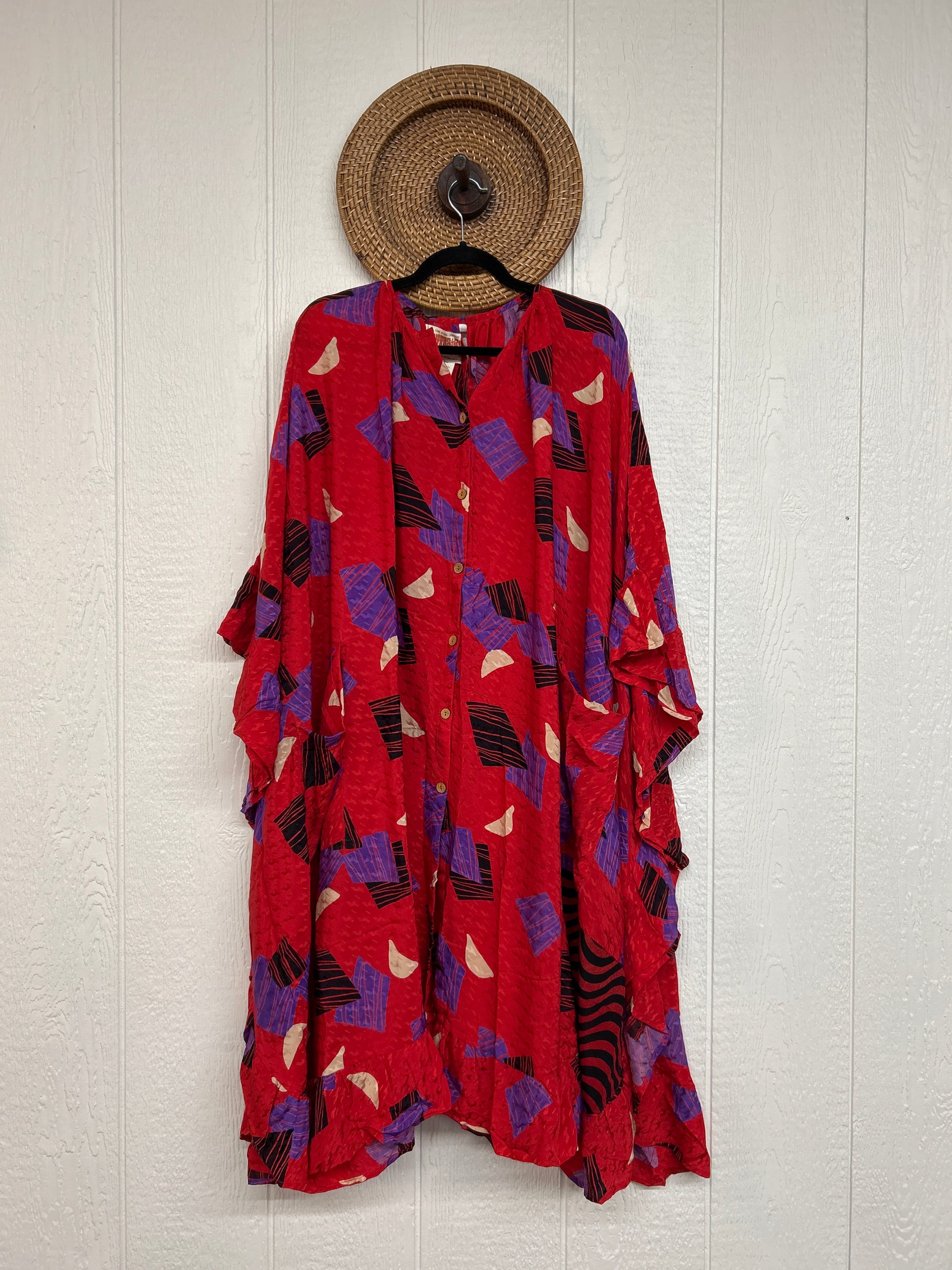 This dreamy muu is crafted from our ultra lux vintage crepe sari and features a button down placket and slouchy exterior pockets. Ruffles around the hem make this the ultimate rockstar layer that you can wear closed as a muu or open as a kimono!!