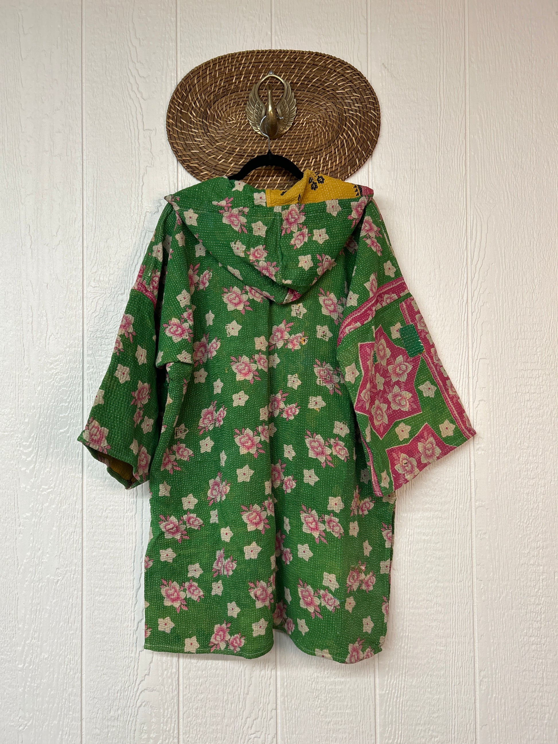 Cozy up in our Half Moon Shacket! Crafted from our ultra lux fine kantha stitched vintage cotton sari, the Half Moon Shacket features a hood, Button-down placket, deep front pockets and bell sleeves.