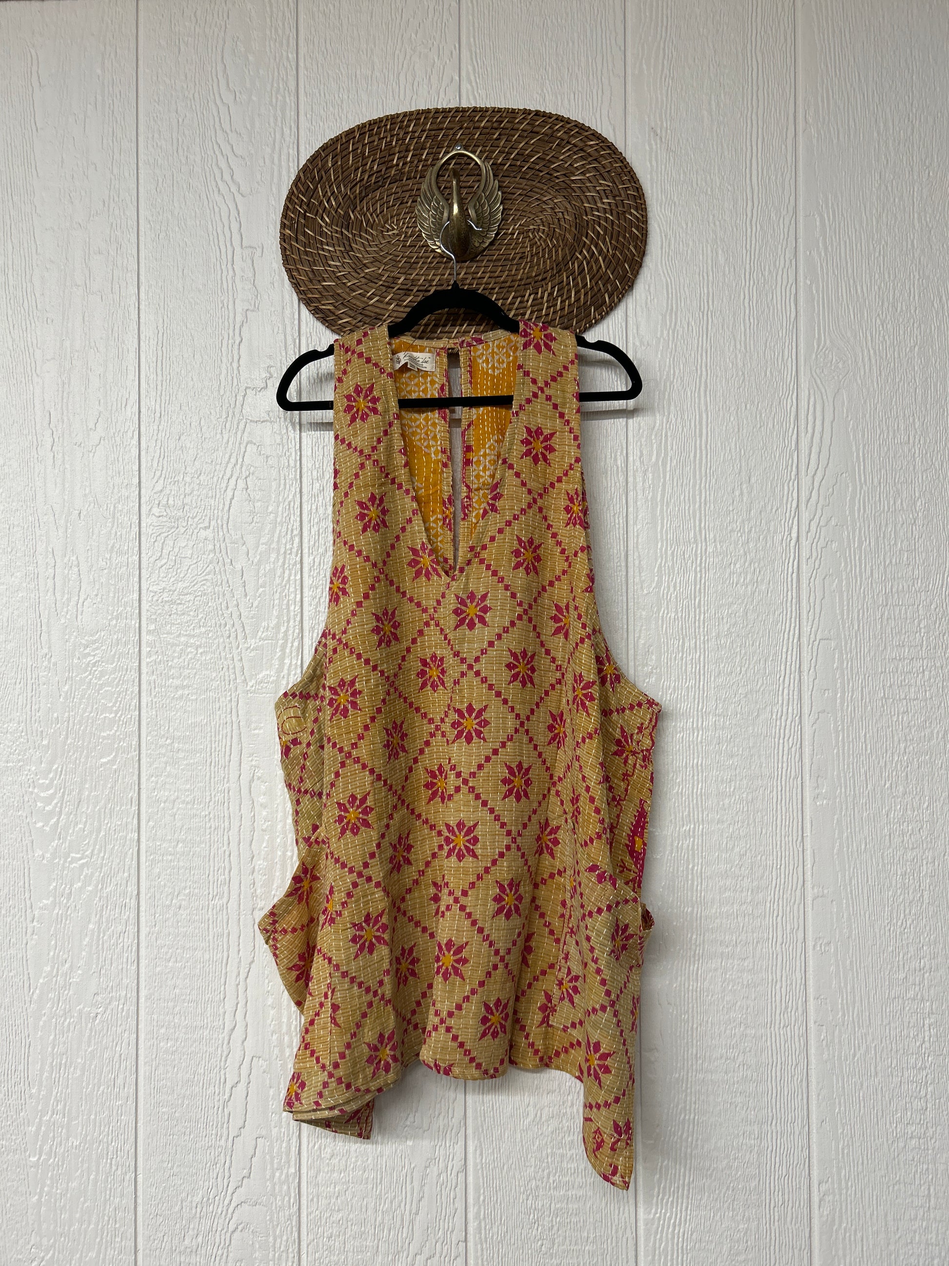 Disclosure: Our vintage styles have lived a full life before becoming the designs in our shop. Fabrics may have small threads or holes in the layers. Color inconsistency or small stains may be present. The saris are sewn together and extend the life of each design. Imperfections should be celebrated.
